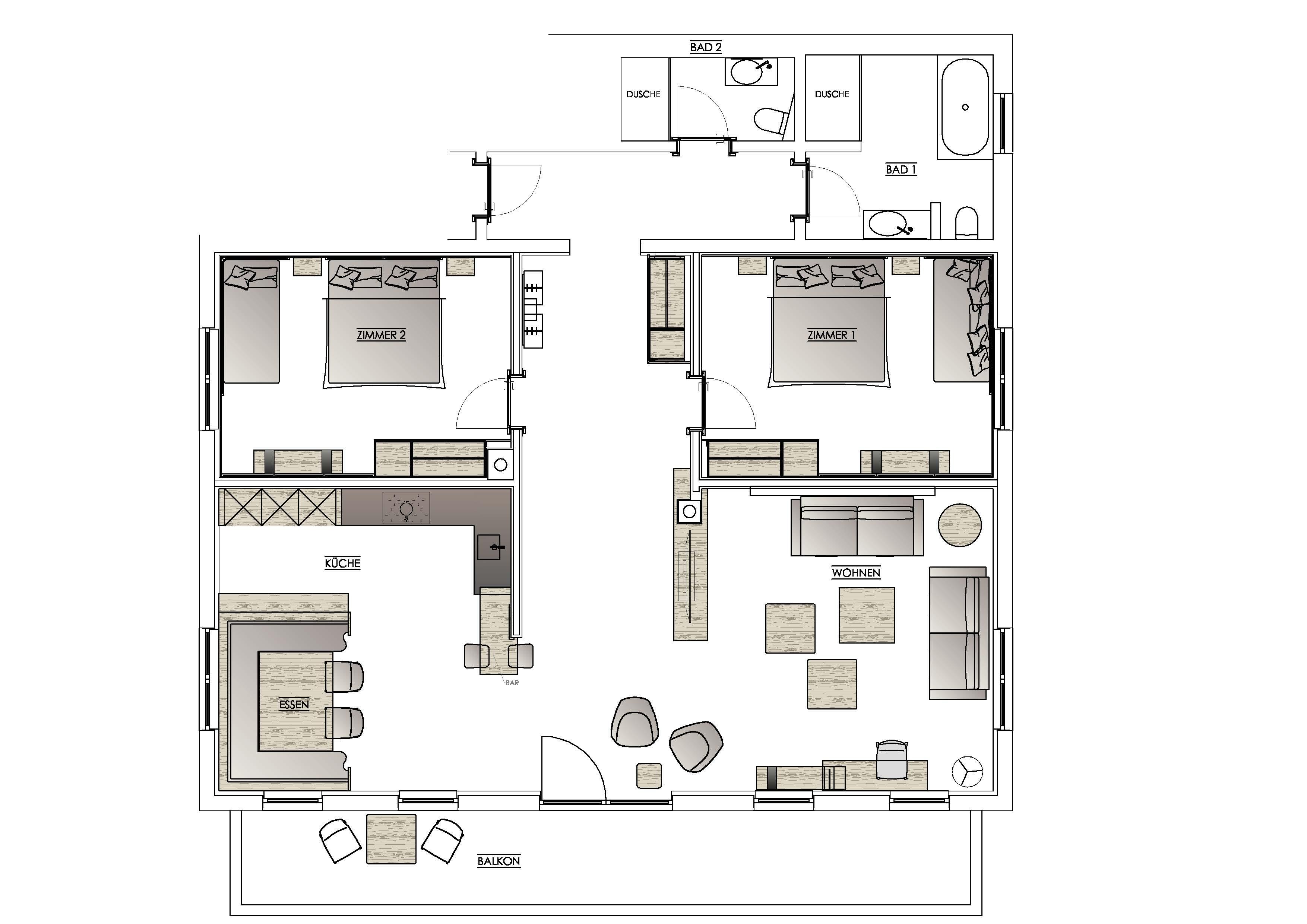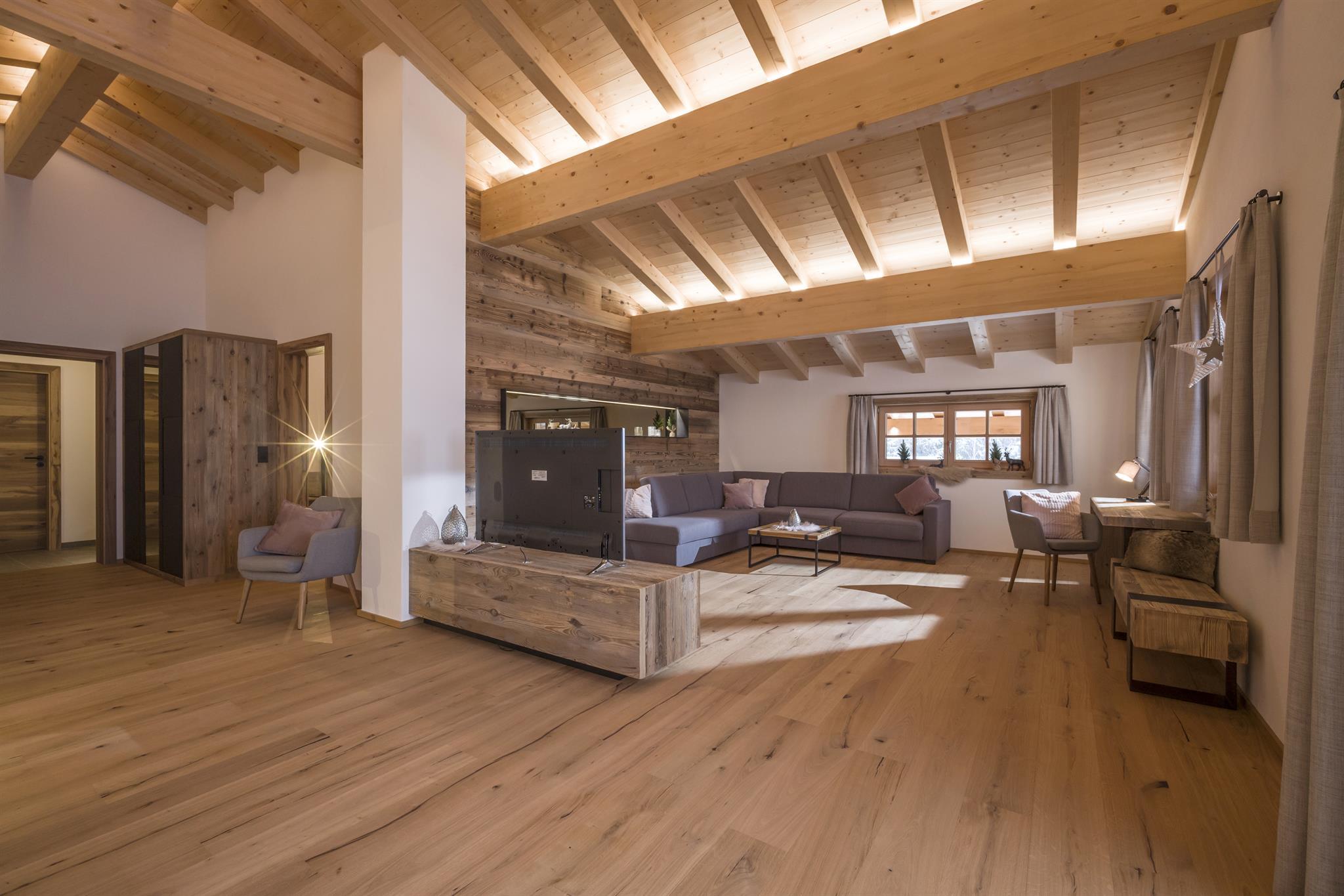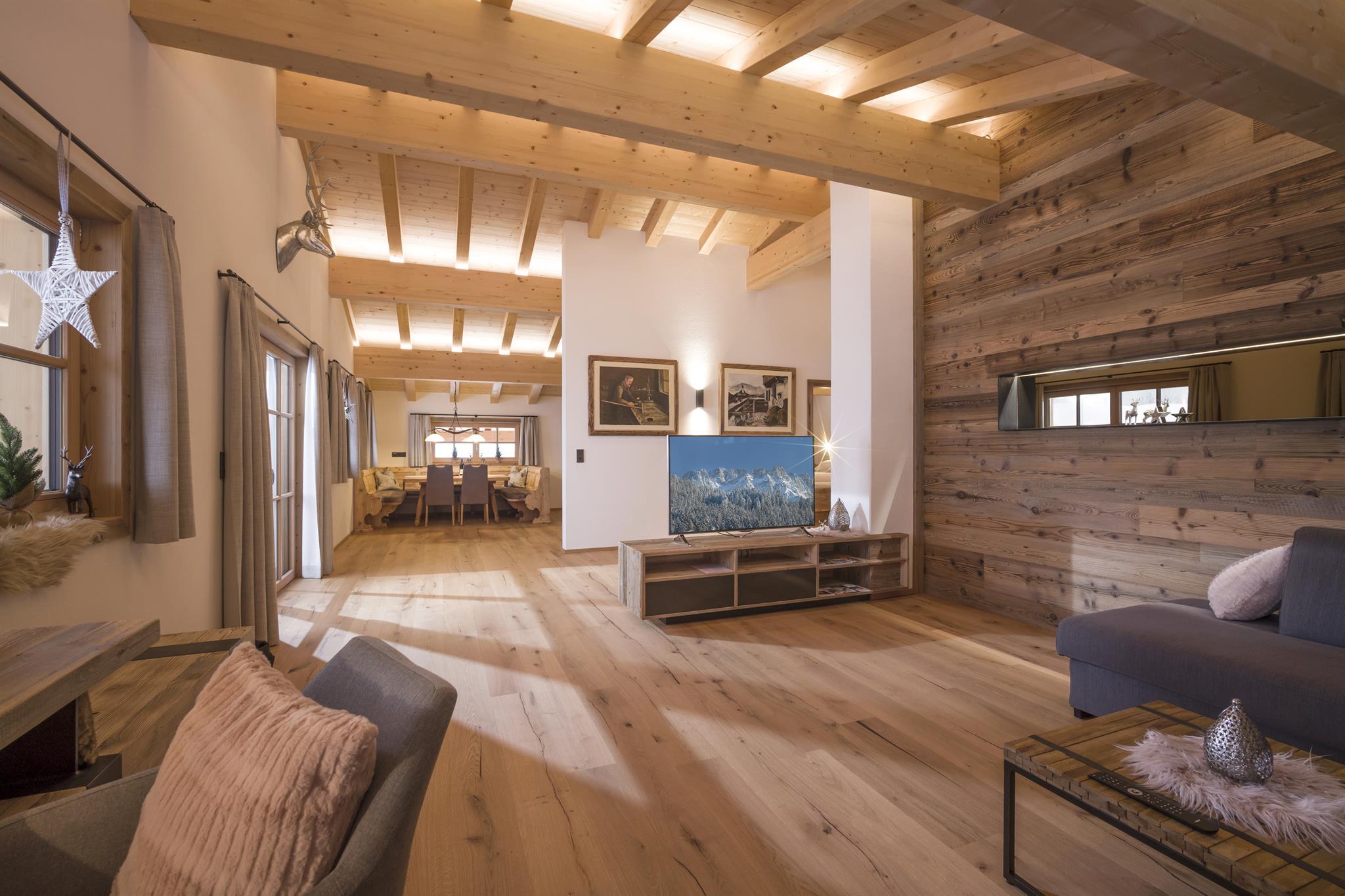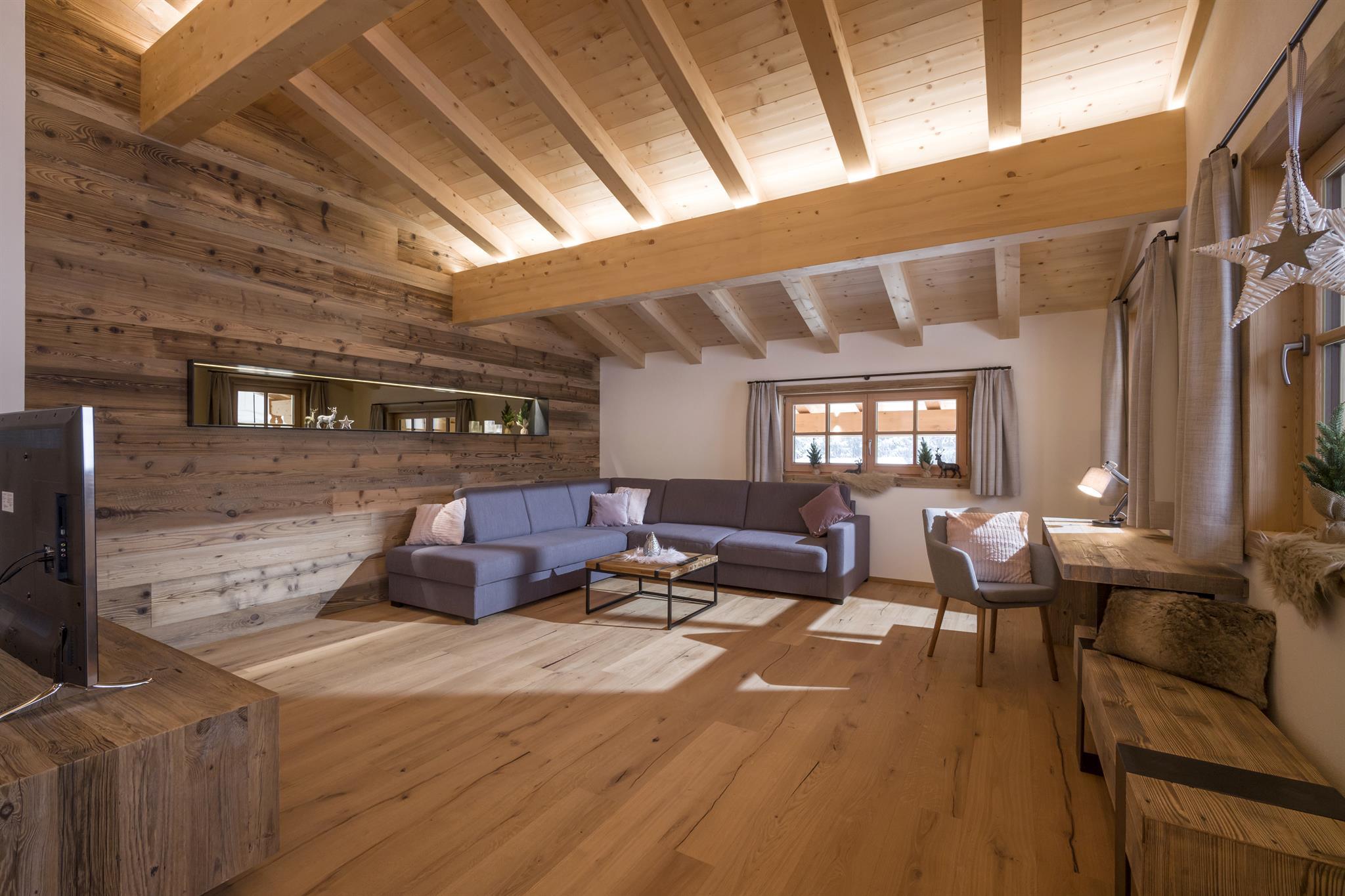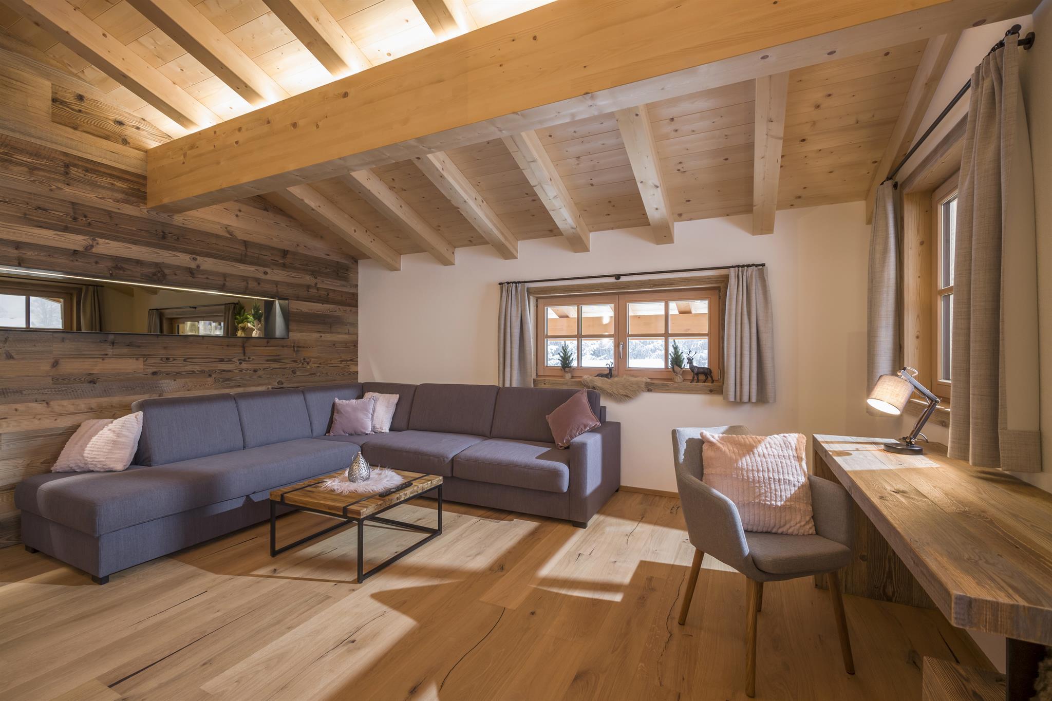 Nehmen Sie sich eine Auszeit am Wilden Kaiser! Inmitten der wunderschönen Tiroler Bergwelt liegt unser neu errichtetes Dachgeschoss-Appartement „Hoamatgfühl“. Mit einer Größe von 120 m² bietet das äußerst geräumige und hochwertig eingerichtete Appartement Platz für 2-8 Personen. Wir legen höchsten Wert auf das Naturprodukt Holz. Aus diesem Grund ist der gesamte Bereich mit Echtholzboden ausgestattet. Exklusive Möbel aus Altholz kombiniert mit anderen Hölzern und Materialien sowie der edle Sichtdachstuhl vermitteln einen unvergesslichen Charme und machen Ihren Urlaub zu einem besonderen Erlebnis. Für eine wohltuende Wärme sorgt eine Fussbodenheizung im gesamten Bereich. Die Beleuchtung mit vielen LED-Elementen vermittelt eine wunderbare Stimmung und sorgt für eine besondere Gemütlichkeit. Luxuriöse Bilder bestätigen den heimeligen Charakter und die Liebe zum Detail!