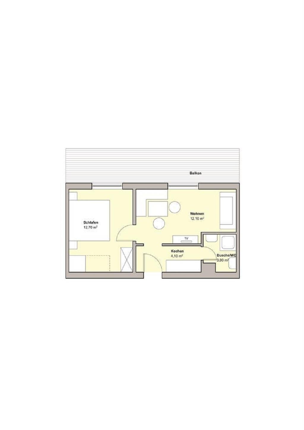Gemütliche Ferienwohnung für 2-4 Personen, bestehend aus einem Wohn-/Schlafraum mit Doppelcouch zum Ausziehen, einem separaten Schlafzimmer, Küchenecke, Badezimmer (Dusche/WC) und Balkon.