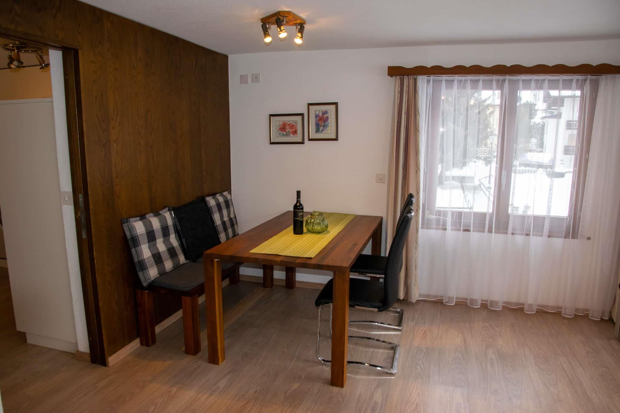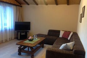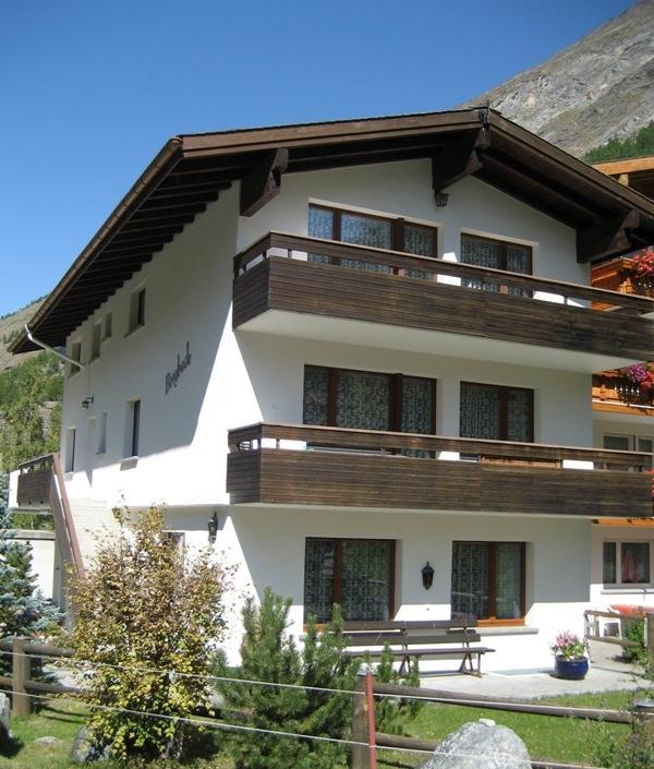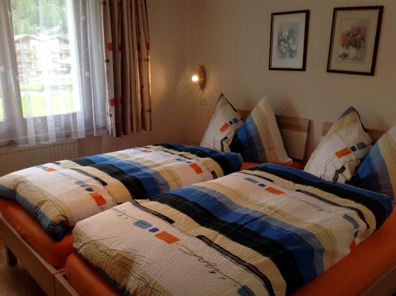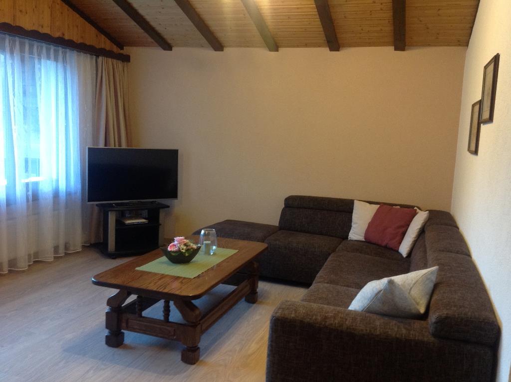 Geräumige 4,5 Zimmerwohnung (75 m2) im 1. Stock. Die Wohnung besteht aus einem grossen Wohn-/Esszimmer, 3 Doppelzimmern (2 davon mit Lavabo), komfortablen Küche mit Geschirrspüler und Mikrowelle und Dusche/WC. Die Wohnung ist mit Sat-TV und Internet (WIFI) ausgestattet und besitzt einen grossen Südbalkon.