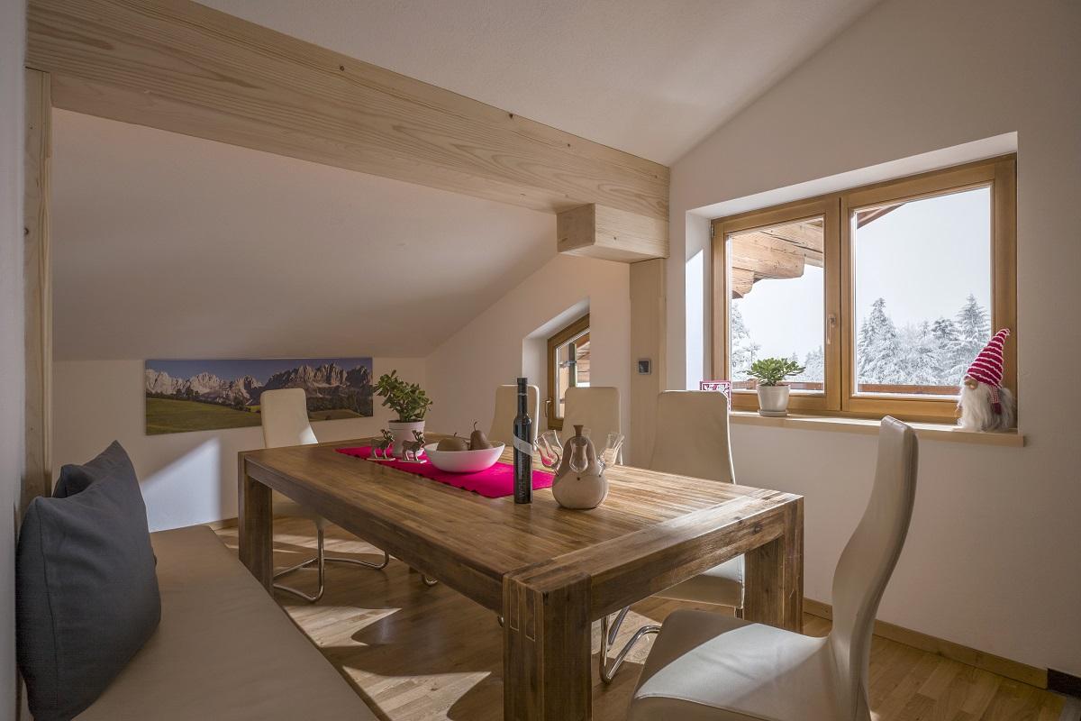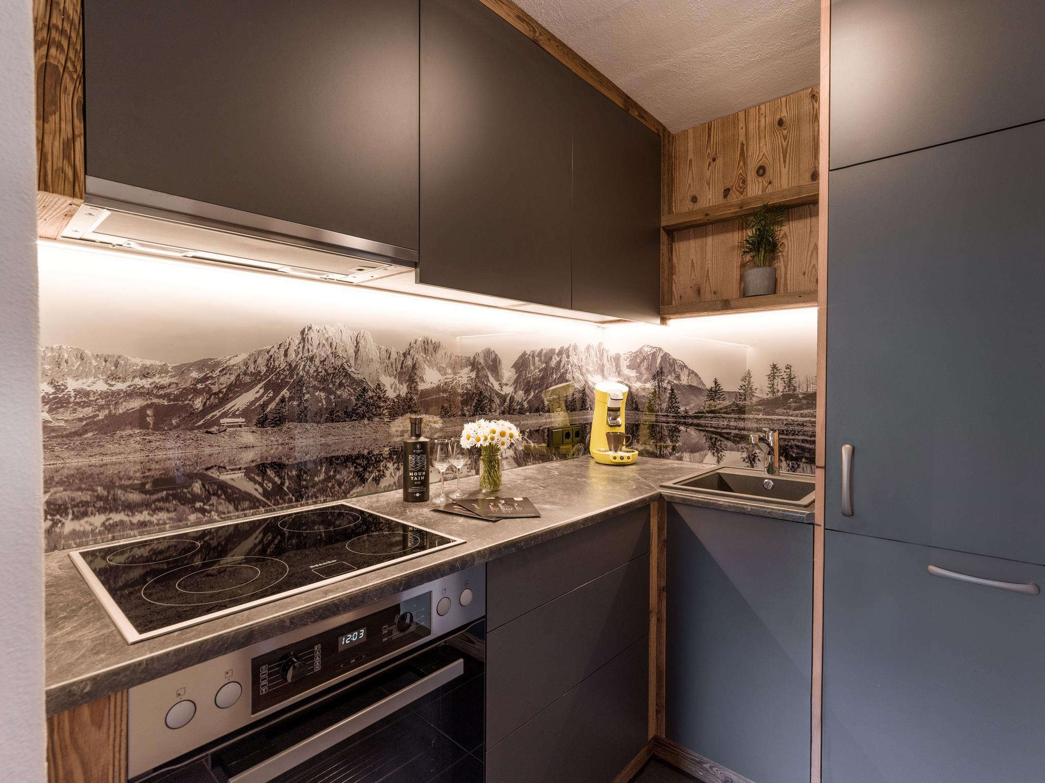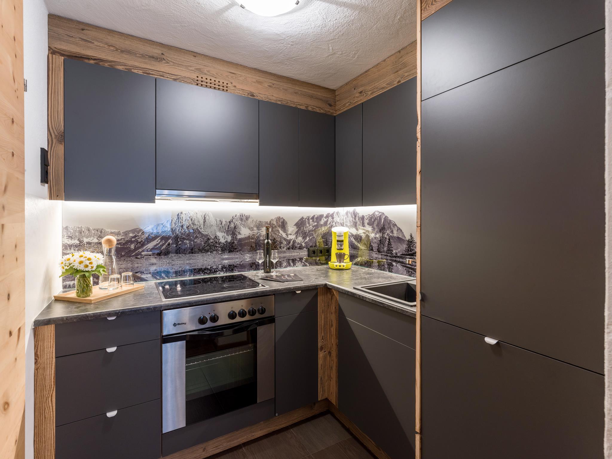 Wir bieten Ihnen ein modernes Appartement für 2-5 Personen mit eigenem Eingang; direkten Blick zum Hartkaiser; 2 getrennte Schlafräume, sämtliche Türen, Betten und Schränke wurden aus „Zirbenholz“ Hand gefertigt! Das Appartement verfügt über einen durchgehenden Balkon, komplett eingerichtete Küche, Geschirrspüler, gemütlicher Wohnraum mit einem Relaxsessel zum entspannen, Sat-TV, W-Lan, Dusche mit separatem WC. Brötchenservice im Haus.