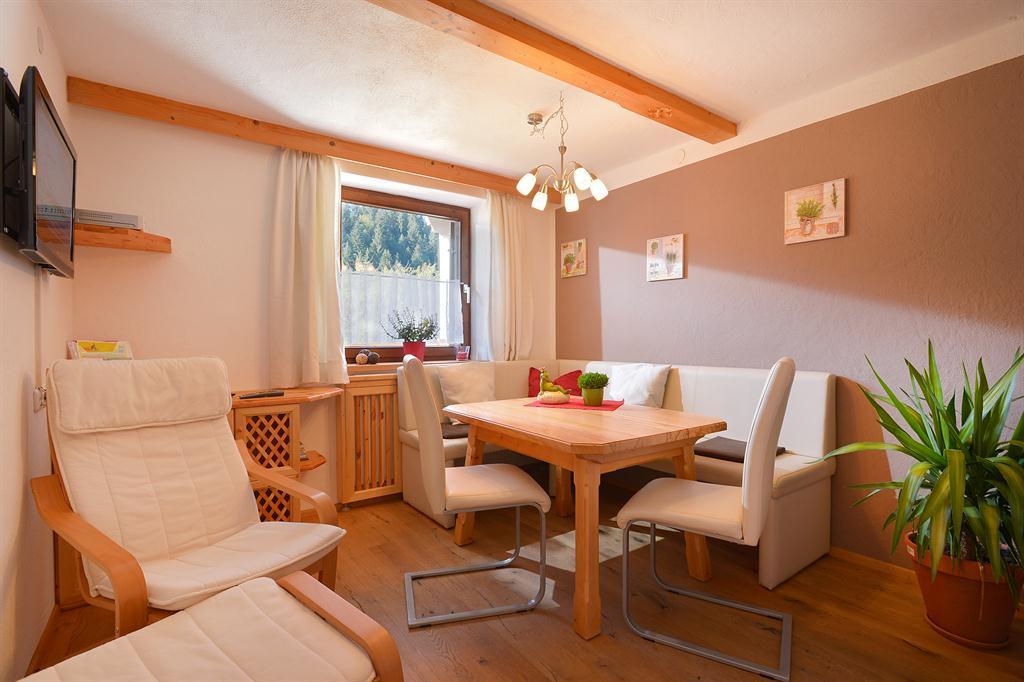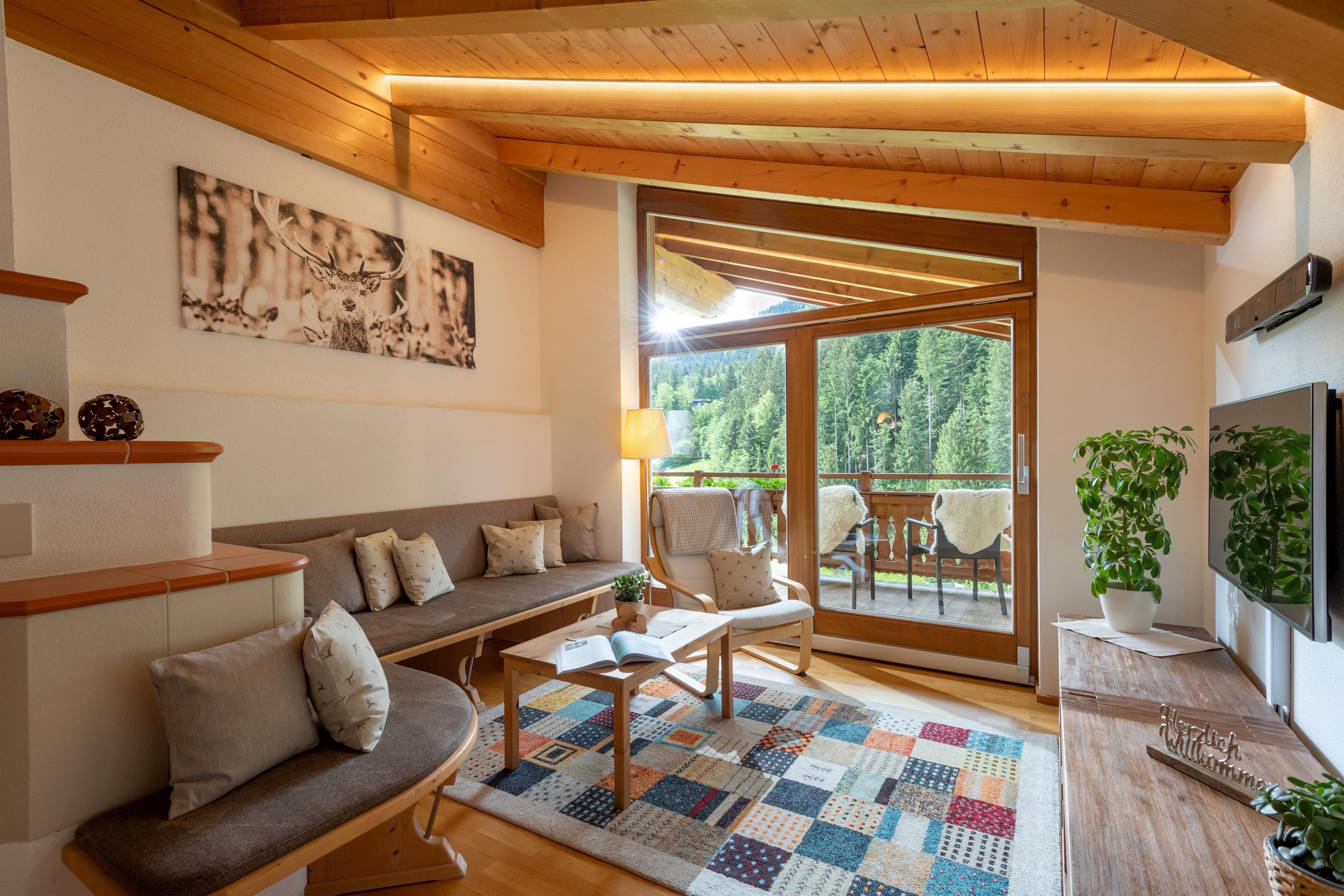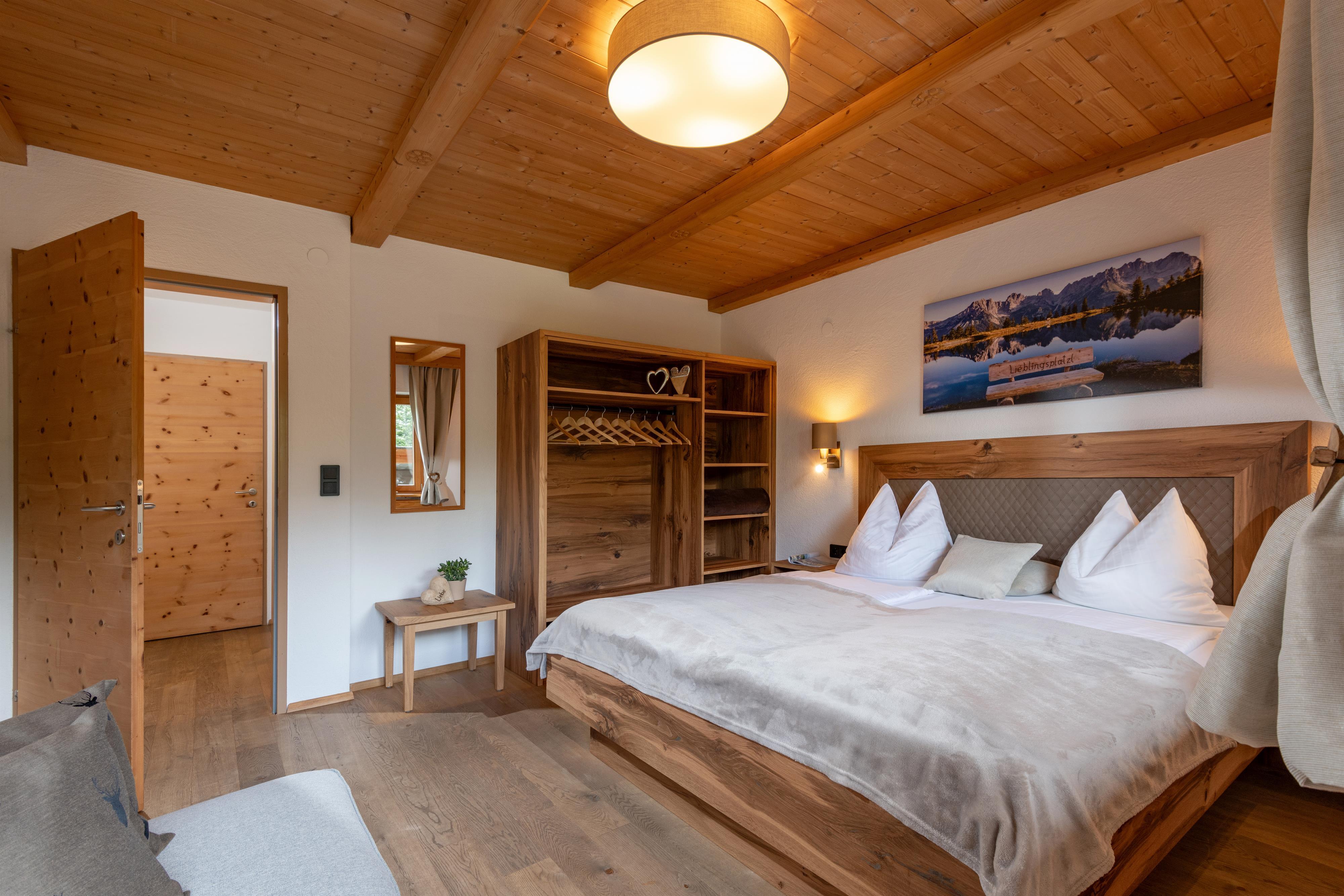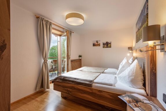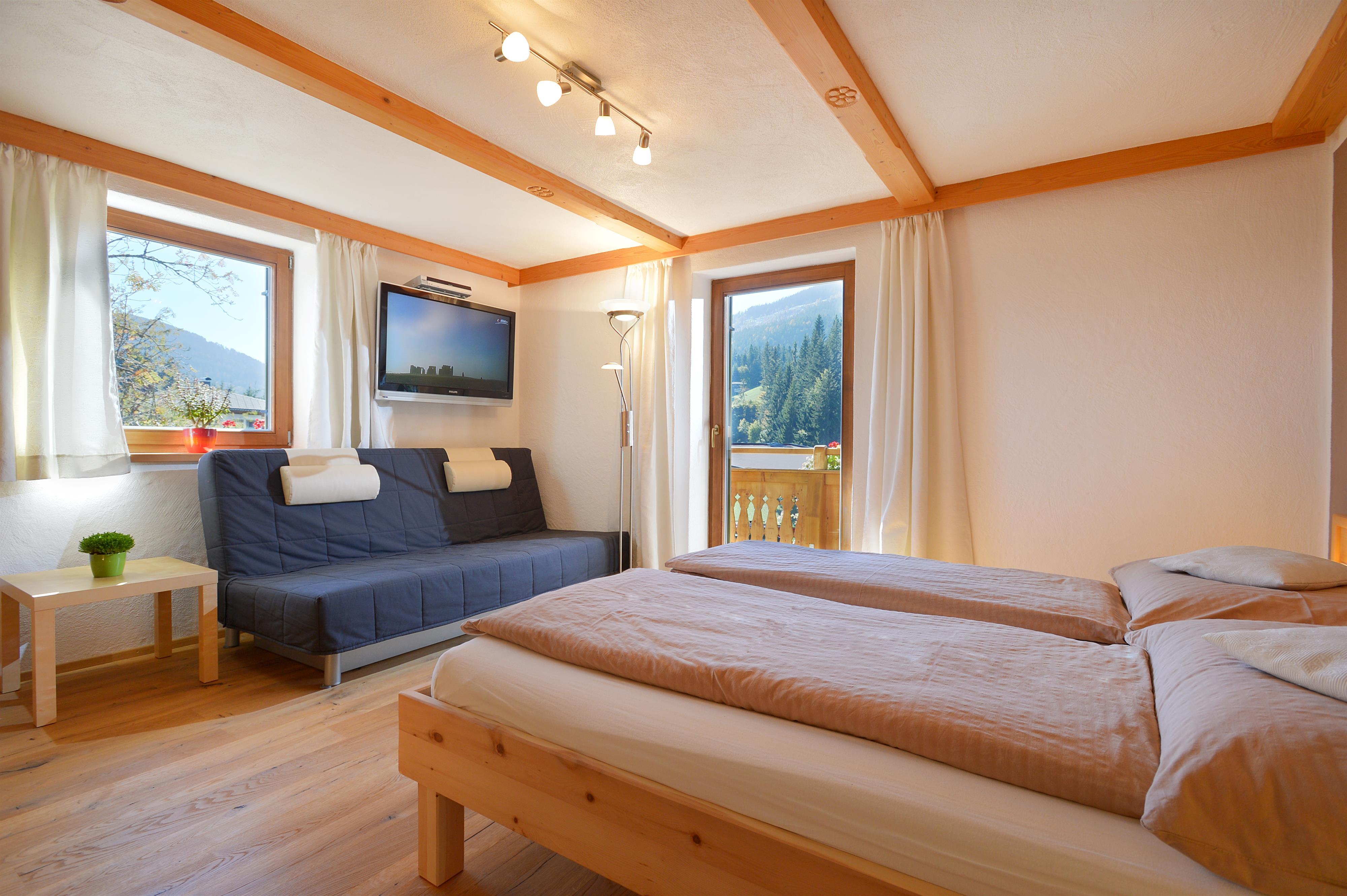 Wir bieten Ihnen ein gemütliches Appartement für 2-5 Personen mit eigenem Eingang und DIREKTEM Blick zum Wilden Kaiser. 2 getrennte Schlafräume, alle Türen, wurden aus „Zirbenholz“ Hand gefertigt! Das Appartement im ländlichen Stil verfügt über einen durchgehenden Balkon, komplett eingerichtete Küche, Geschirrspüler, gemütlicher Wohnraum, Flat-TV, Sat-TV, W-Lan, Dusche mit separatem WC. Brötchenservice.