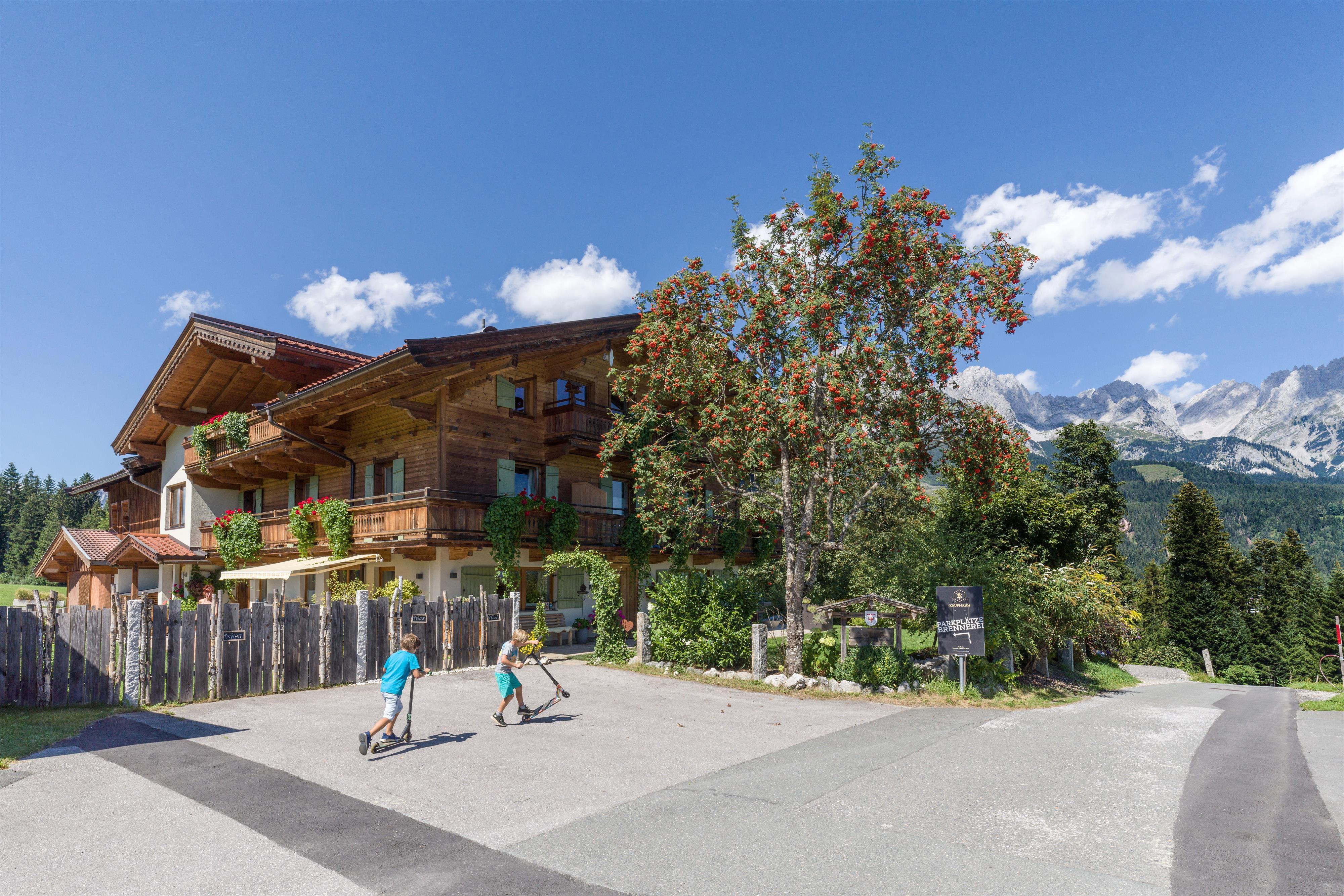 Unser Bauernhof liegt in ruhiger, idyllischer und sonniger Lage mit freiem Blick zum Wilden Kaiser, umgeben von einer Blumenwiese. Obermühlberg bietet einen idealen Ausgangspunkt für herrliche Wanderungen und Mountainbike-Touren. Der Einstieg zum Skigebiet, Wandergebiet(Hartkaiserbahn) ist 1.500 m entfernt.