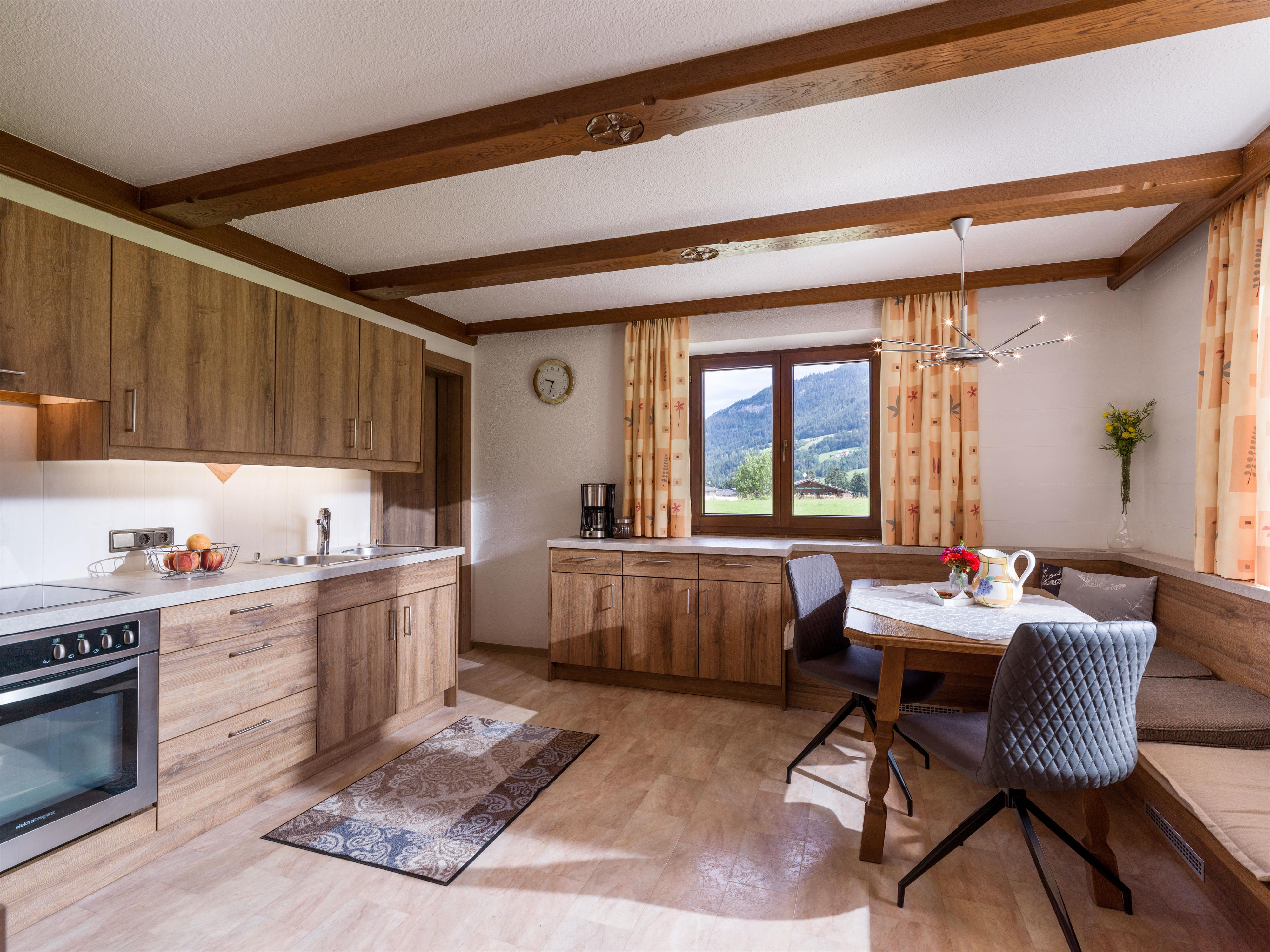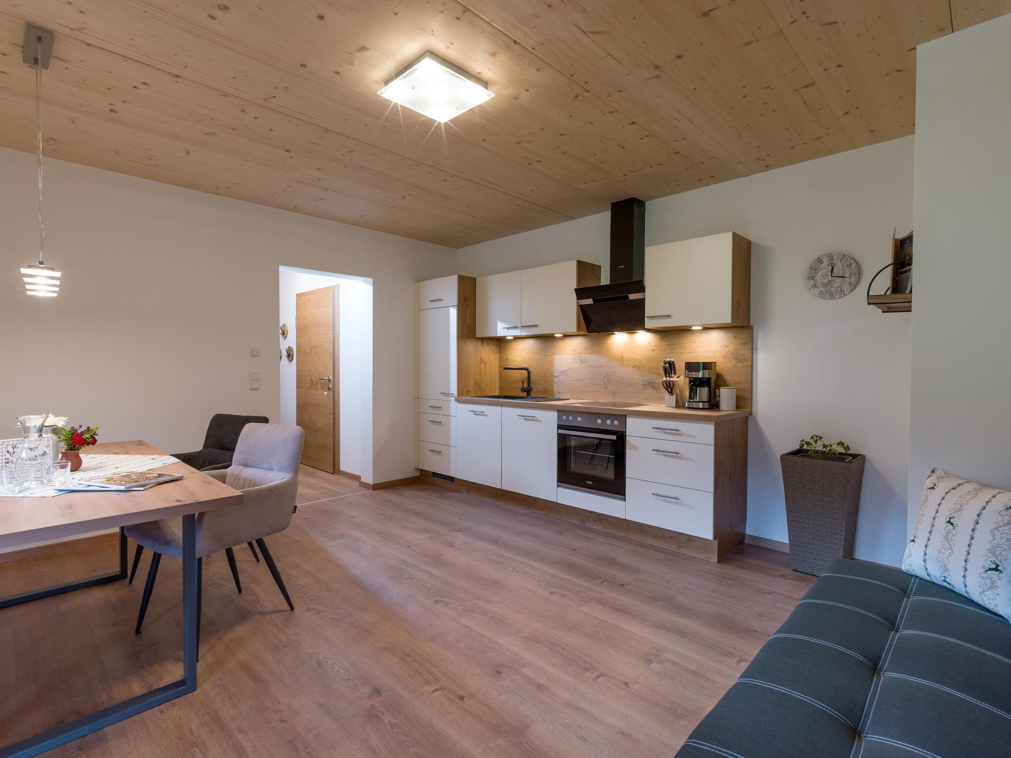 Unser großräumiges Apartment Bauernstube besteht aus einer vollausgestatteten Küche, zwei Schlafzimmer mit einem Doppelbett. Ein Schlafzimmer verfügt noch über eine Schlafzcouch. Zusätzlich gibt es noch ein Bad und ein separatem WC. Das Apartment befindet sich im Erdgeschoß und bietet vor allem im Sommer einen wunderschönen Garten um heiße Sommertage und den Wilden Kaiser auf der Terrasse zu genießen.