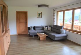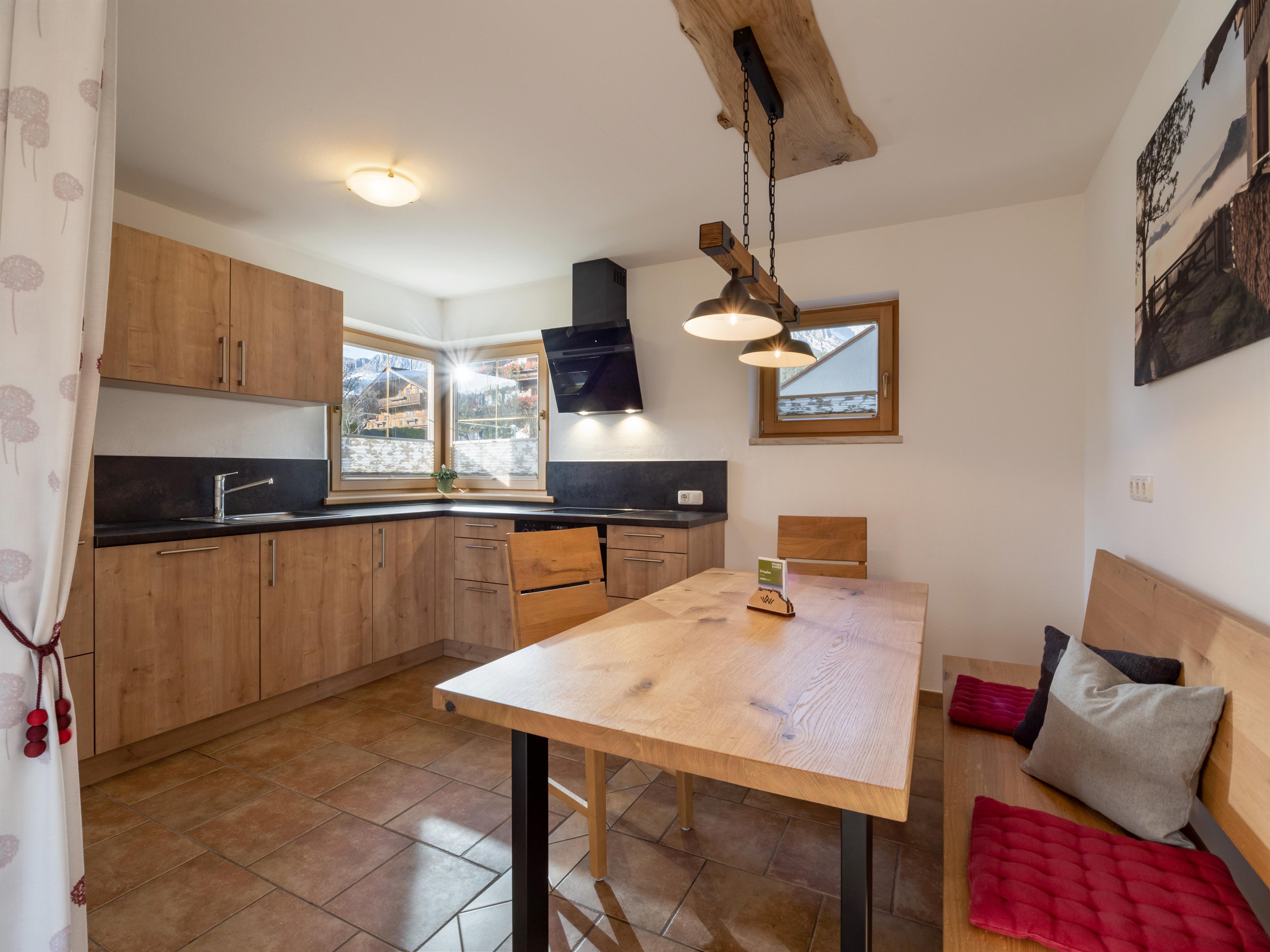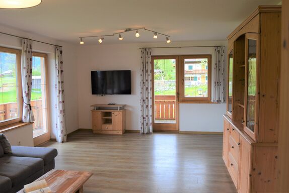 Liebevoll eingerichtetes Appartement im Tiroler Stil mit 2 Schlafzimmern, Wohnzimmer mit Kochnische und Essecke und großer Terrasse.