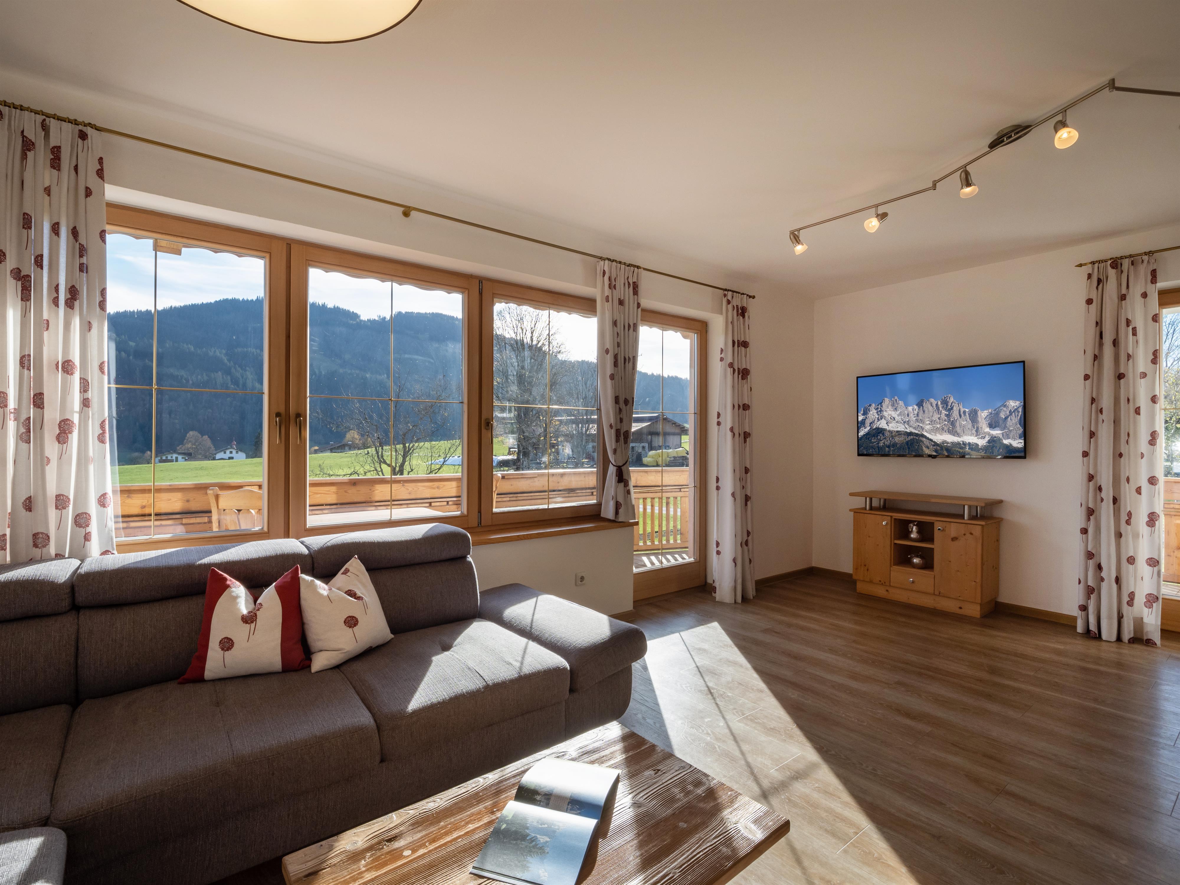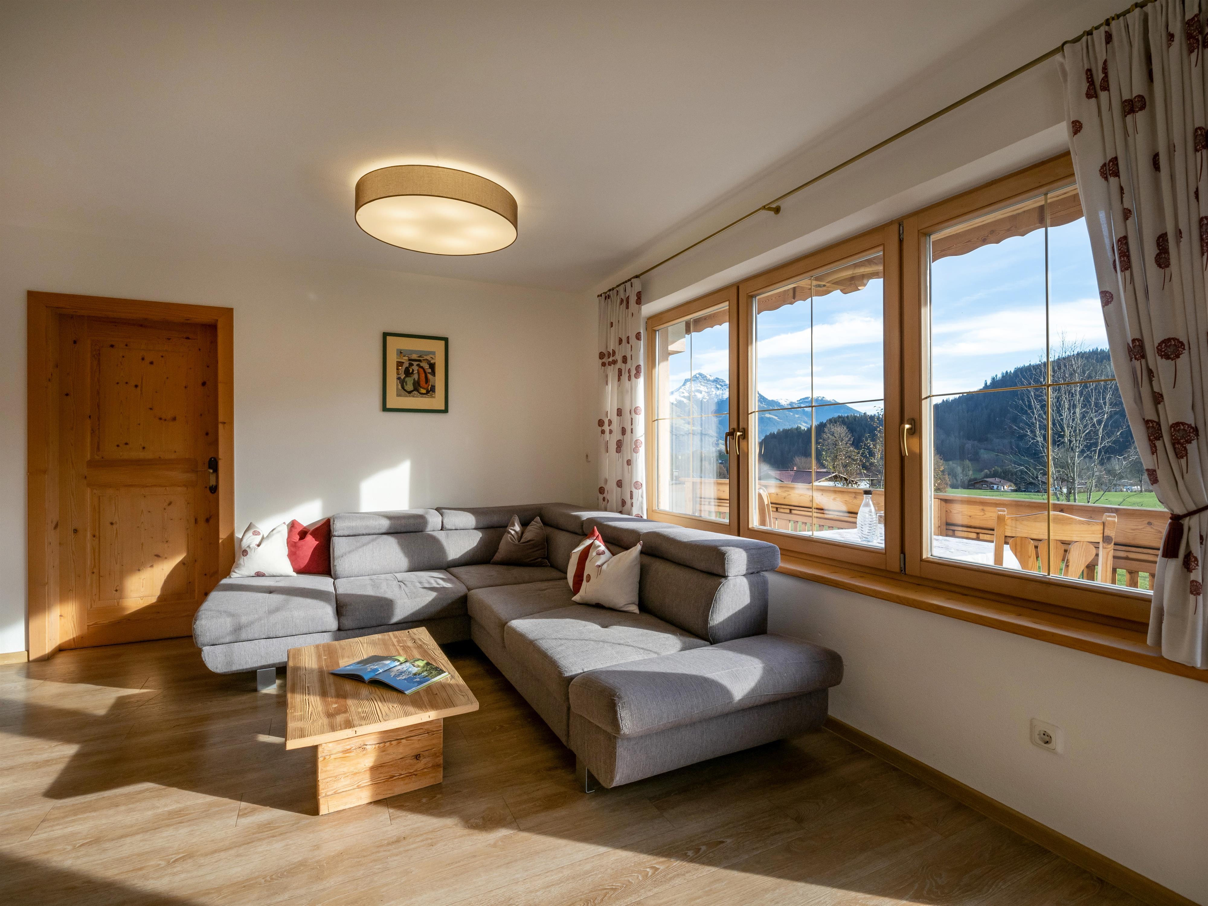 Unser Ferienhaus Sonnblick liegt im Ortsteil Schwendt neben unserem dazugehörigen Bauernhof. Durch die ruhige und sonnige Lage am Fuße des Wilden Kaisers, finden Sie bei uns den perfekten Aufenthaltsort um zu entspannen. Unser liebevoll eingerichtetes Appartement im Tiroler Stil mit großer Terrasse bietet Ihnen einen wunderschönen Urlaubsort. Durch die Skibushaltestelle vor der Tür sind Sie in wenigen Minuten am Astberglift, wo Sie den Einstieg der SkiWelt Wilder Kaiser haben und auf Sie schon die perfekt präparierten Pisten warten. Steigen Sie vor dem Haus in die Goinger Langlaufloipen ein oder genießen Sie eine schöne Winterwanderung in der weißen Winterpracht. Die Rodelbahn am Astberg und der Goinger Eislaufplatz sind ebenfalls ein wahres Urlaubshighlight. Im Sommer können Sie die Ruhe und den schönen Blick zum Wilden Kaiser auf unserer Liegewiese genießen, während die Kinder sich am Spielplatz austoben. Wanderungen auf den Wilden Kaiser können Sie direkt von unserem Haus aus starten oder eine Biketour rund um den Wilden Kaiser. Auf die Kinder warten schon die sechs Bergerlebniswelten wo Sie auf spielerische Art die Natur erkunden können oder besuchen Sie die original Bergdoktordrehorte der bekannten Serie - Der Bergdoktor.