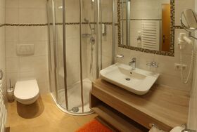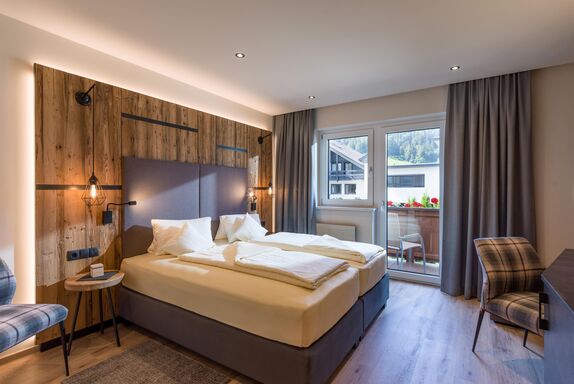 Unser Doppelzimmer Bergblick (ca. 22m²) ist komfortabel ausgestattet mit DU/WC, Föhn, Safe,