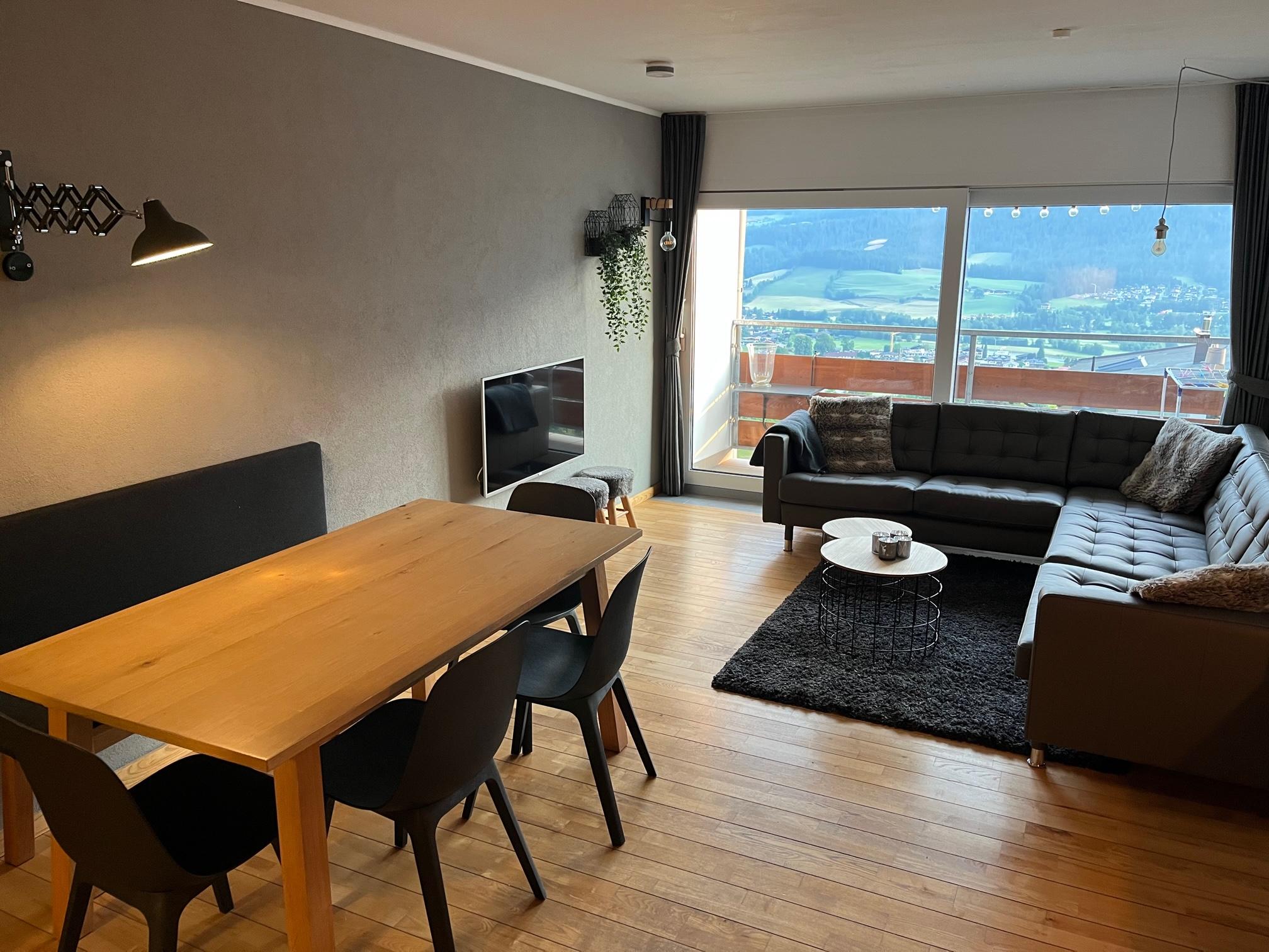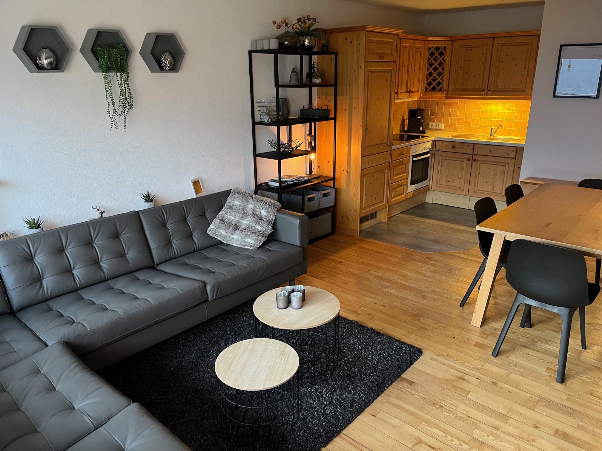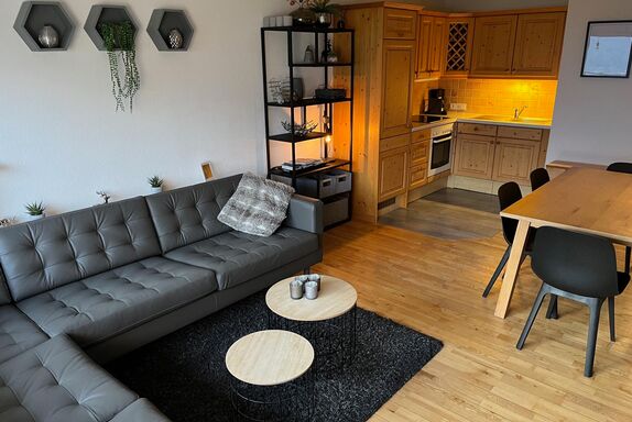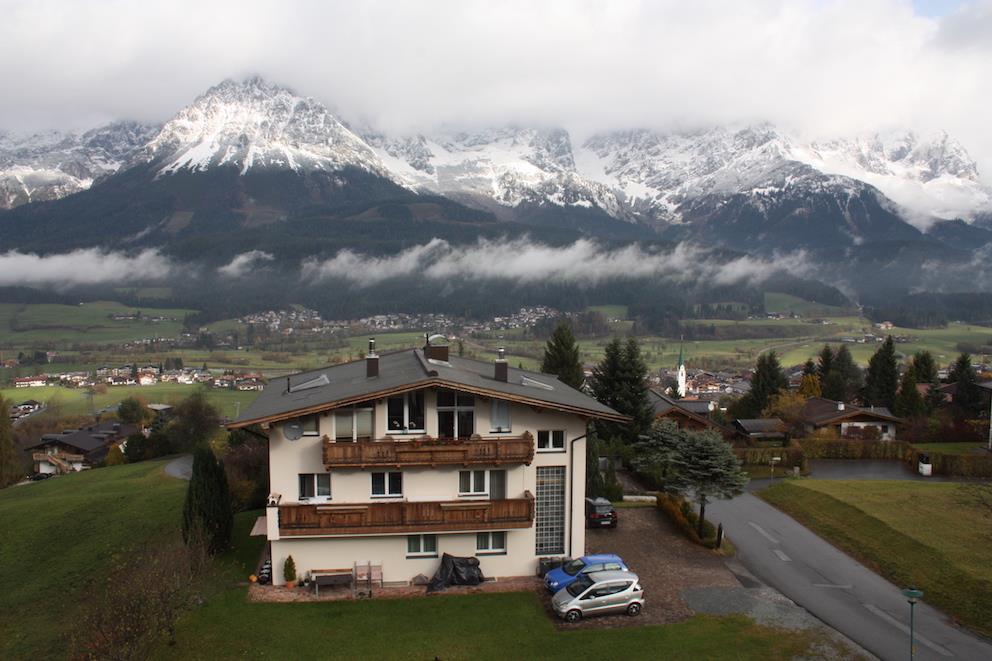Im ersten Stock befindet sich das Talseite Apartment, ein komplett renoviertes Studio für bis zu 4 Personen. Die Wohnung befindet sich an der Nordseite des Gebäudes mit herrlichem Blick auf den Wilder Kaiser.