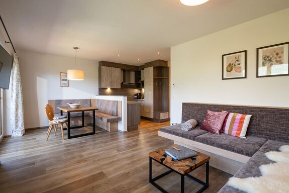 Egal ob als Familie oder mit Freunden. Die Ferienwohnung mit zwei getrennten Schlafzimmern und großzügiger Wohnküche sorgt für einen entspannten Urlaub. Der Blick auf den Wilden Kaiser ist einmalig.