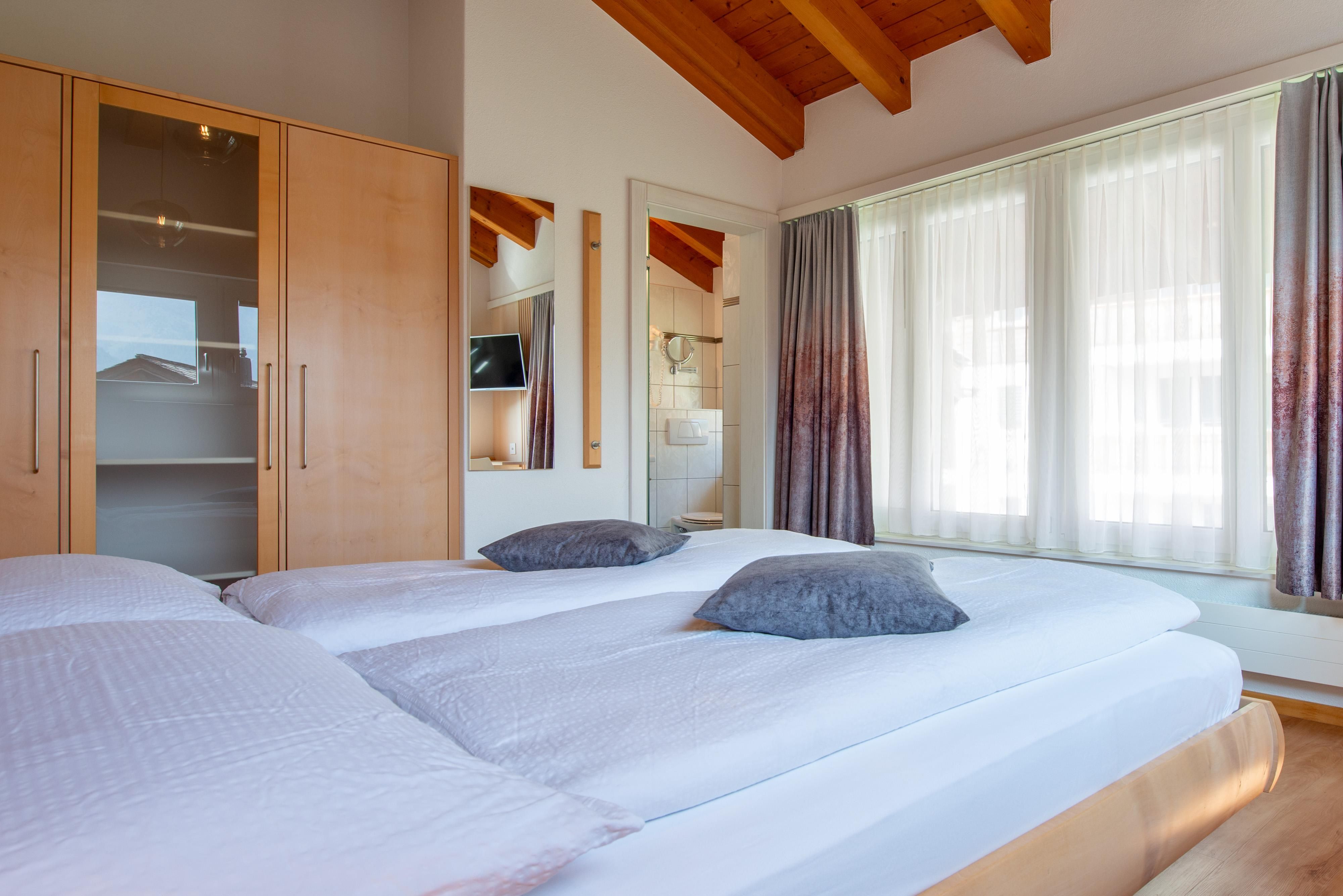 Die 3 Zimmer-Wohnung, 81m2, verfügt über 1 Schlafzimmer mit Whirl-Wanne, Dusche/WC und Ostbalkon, 1 Schlafzimmer mit Bad/WC und Südterrasse, voll ausgestattete Küche mit grosszügigem Wohnzimmer, Kabelfernsehen mit Flachbildschirm, Radio, TV, kostenloser W-Lan Internet Zugang, Nespresso-Kaffeemaschine, Südterrasse mit freiem Blick auf die Berg- und Gletscherwelt. Moderne Wellness-Anlage. Haustiere nicht erlaubt.