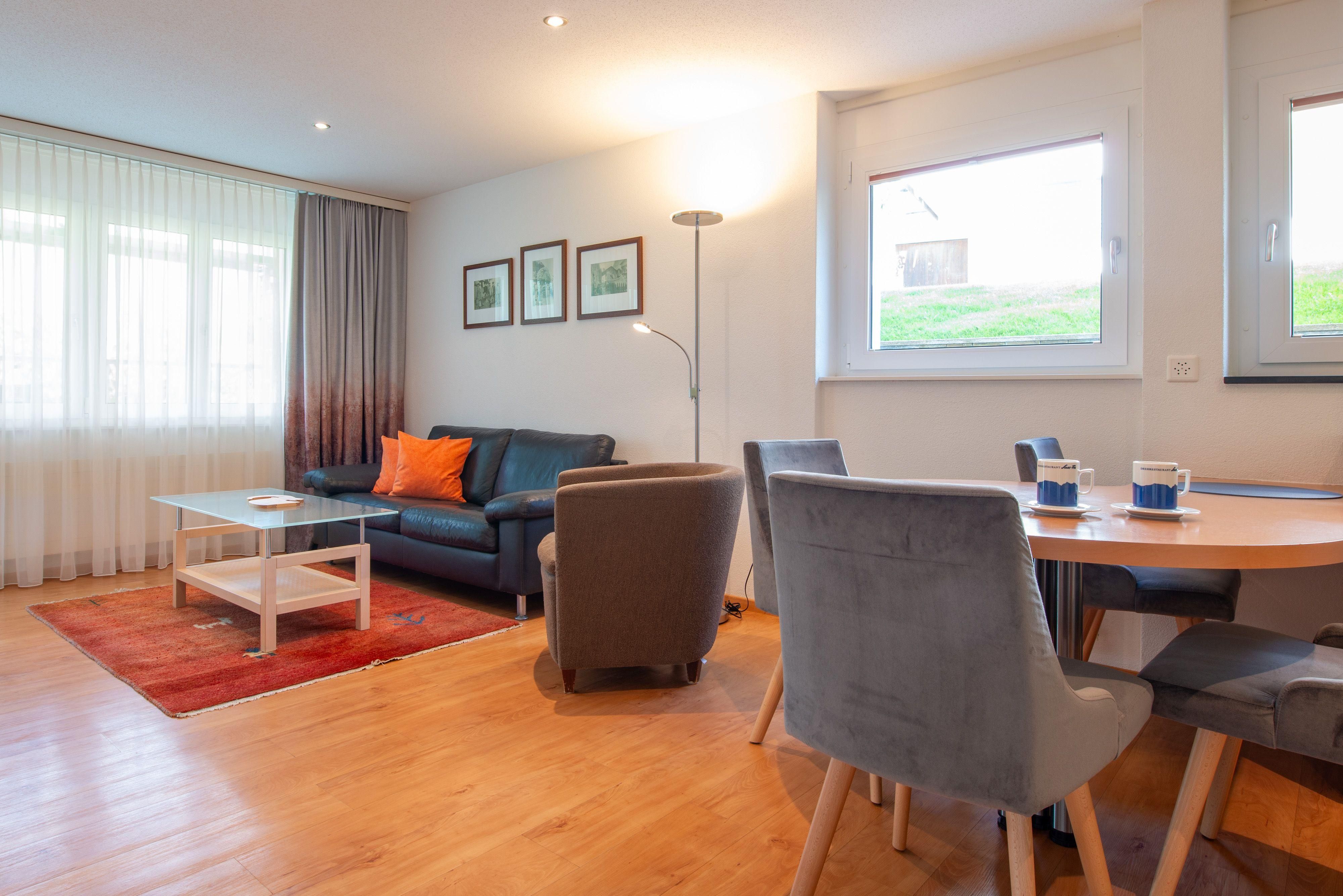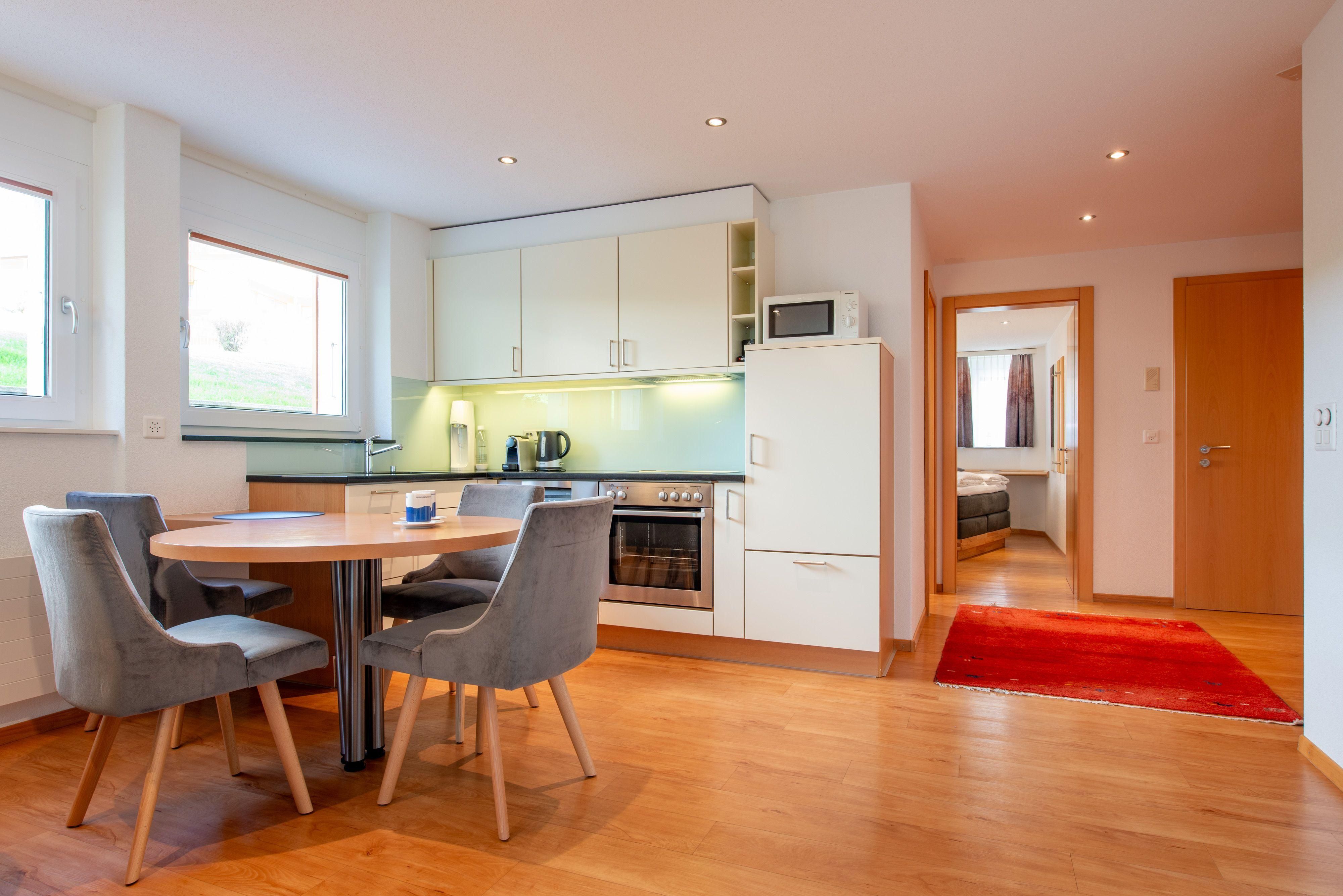 2 Zimmer-Wohnung, 52m2, separates Schlafzimmer mit Boxspring-Bett (160x200), Bad/WC, voll ausgestattete Küche mit grosszügigem Wohnzimmer, Kabelfernsehen mit Flachbildschirm, Radio, TV, kostenloser W-Lan Internet Zugang, Nespresso-Kaffeemaschine, Terrasse mit einmaligem Blick auf die Berg- und Gletscherwelt. Moderne Wellness-Anlage, Haustiere nicht erlaubt.