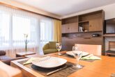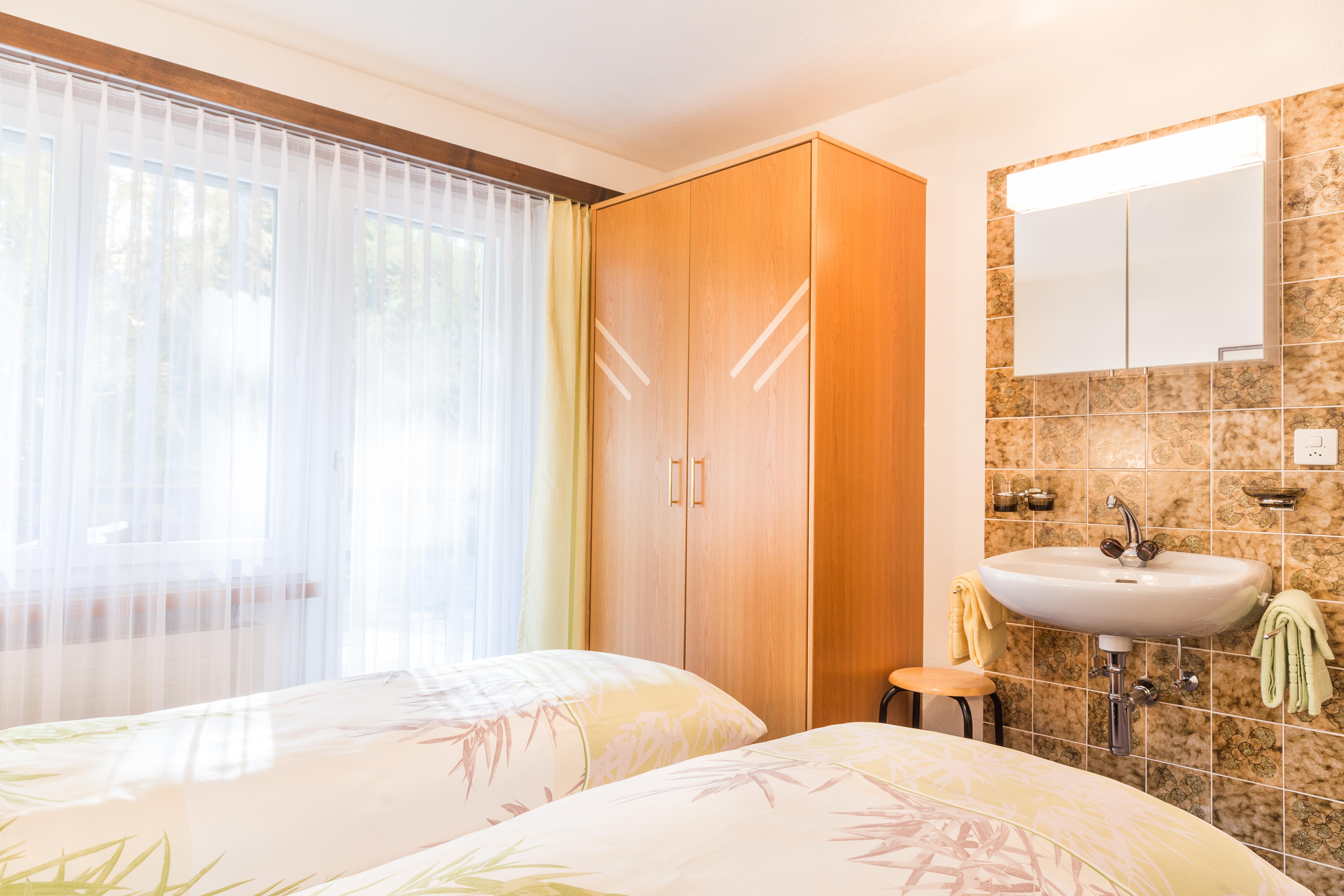Gepflegte 3-Zimmerwohnung, 55 m2, 2-5 Personen, im 1. Stock, bestehend aus Wohn-/Esszimmer mit 1 Wandklappbett, 2 Doppel-Schlafzimmer, Küche mit Geschirrspüler, Balkon, Radio, TV, Bett-, Frottier- und Küchenwäsche vorhanden, Gratis-WLAN.