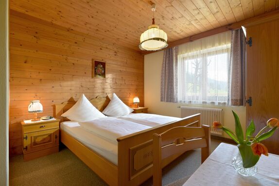 Unsere gemütlichen Doppelzimmer sind ausgestattet mit rustikaler Möbilierung und Dusche/WC. * Der Balkon ist von der Etage aus begehbar. * Auf Anfrage und bei freien Kapazitäten stellen wir Ihnen unsere Zimmer gerne auch als Einzelzimmer zur Verfügung.