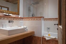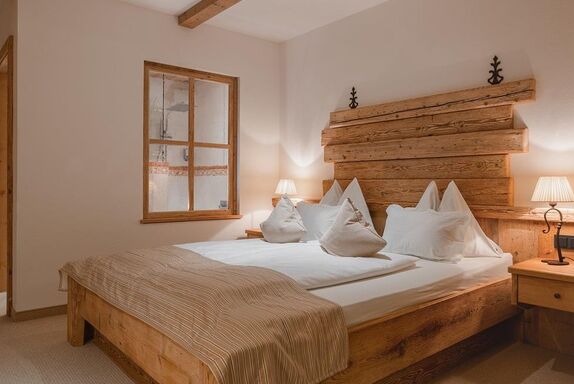 TRÄUMEN MIT BERGBLICK Die Panorama Suiten präsentieren sich mit einem umfangreichen Panoramablick auf die faszinierende Bergwelt. Sie befinden sich im ersten Stock des Residenzgebäudes und bieten Ihnen 35 m² für 1 bis 3 Personen. Ein Schlafzimmer mit hochwertigem Schlafsystem, einen gemütlichen Wohnbereich (durch eine Schiebetür abtrennbar), ein Badezimmer mit Duschwanne sowie separatem WC befindet sich der Suite. Lassen Sie vom Balkon aus einen Blick über das traumhafte Panorama schweifen.