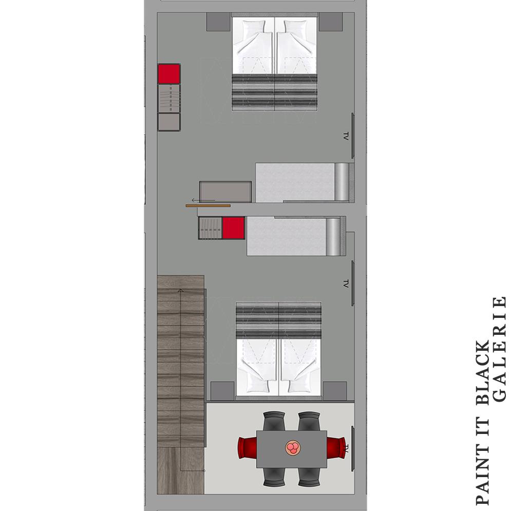 Das doppelstöckige Loftstyle PAINT IT BLACK Apartment 55 m² befindet sich im 2. Stock & 3. Stock mit Blick Richtung Süden.