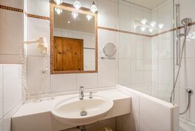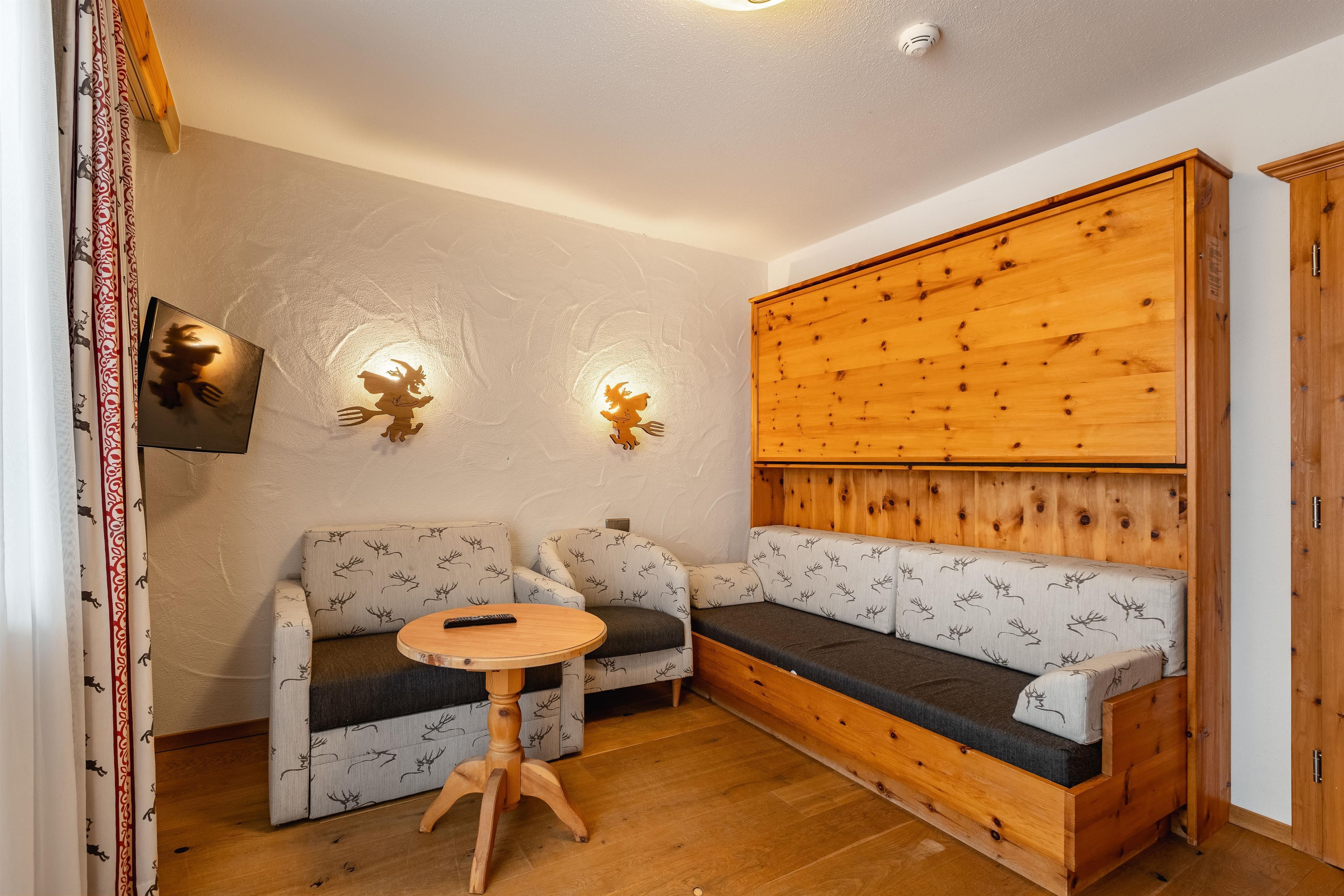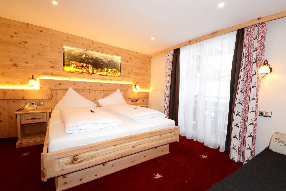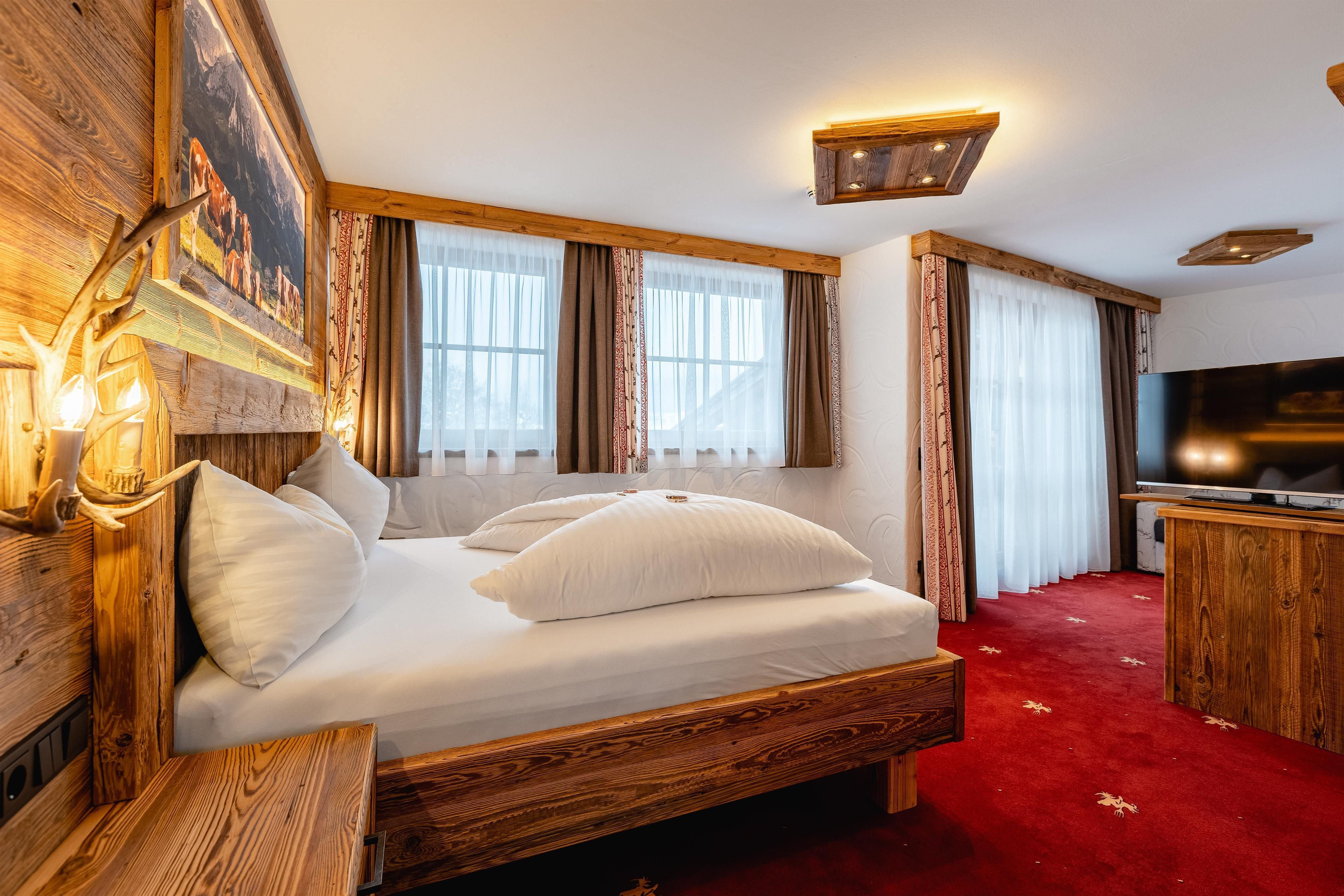 Anno 1700: genießen Sie kaiserlichen Wohnkomfort und schlafen Sie in einem handgemalten Himmelbett wie anno dazumal. Dusche und WC getrennt. Die Kinder schlafen im Halbstock darüber. Landhaus: gemütlich eingerichtete Zimmer im Tiroler Stil mit Balkon, die Kinder schlafen auf einer Ausziehcouch. Alle Zimmer sind ausgestattet mit Balkon, Flat-TV, Telefon, W-Lan, Radio (TV), Safe und Haarfön. Dusche/Bad, WC