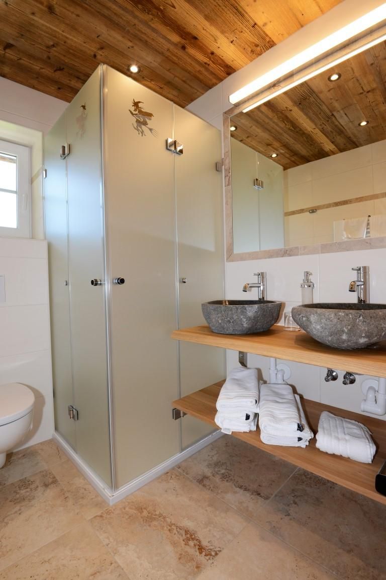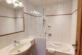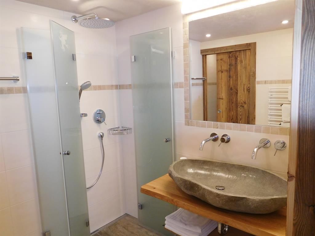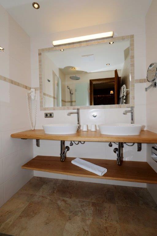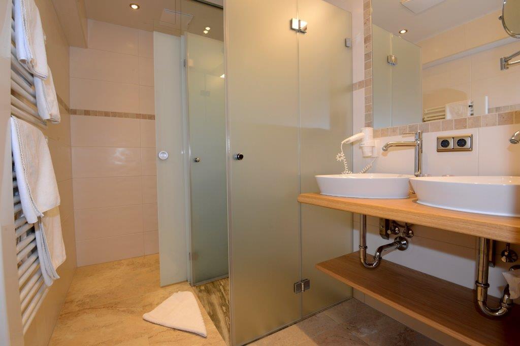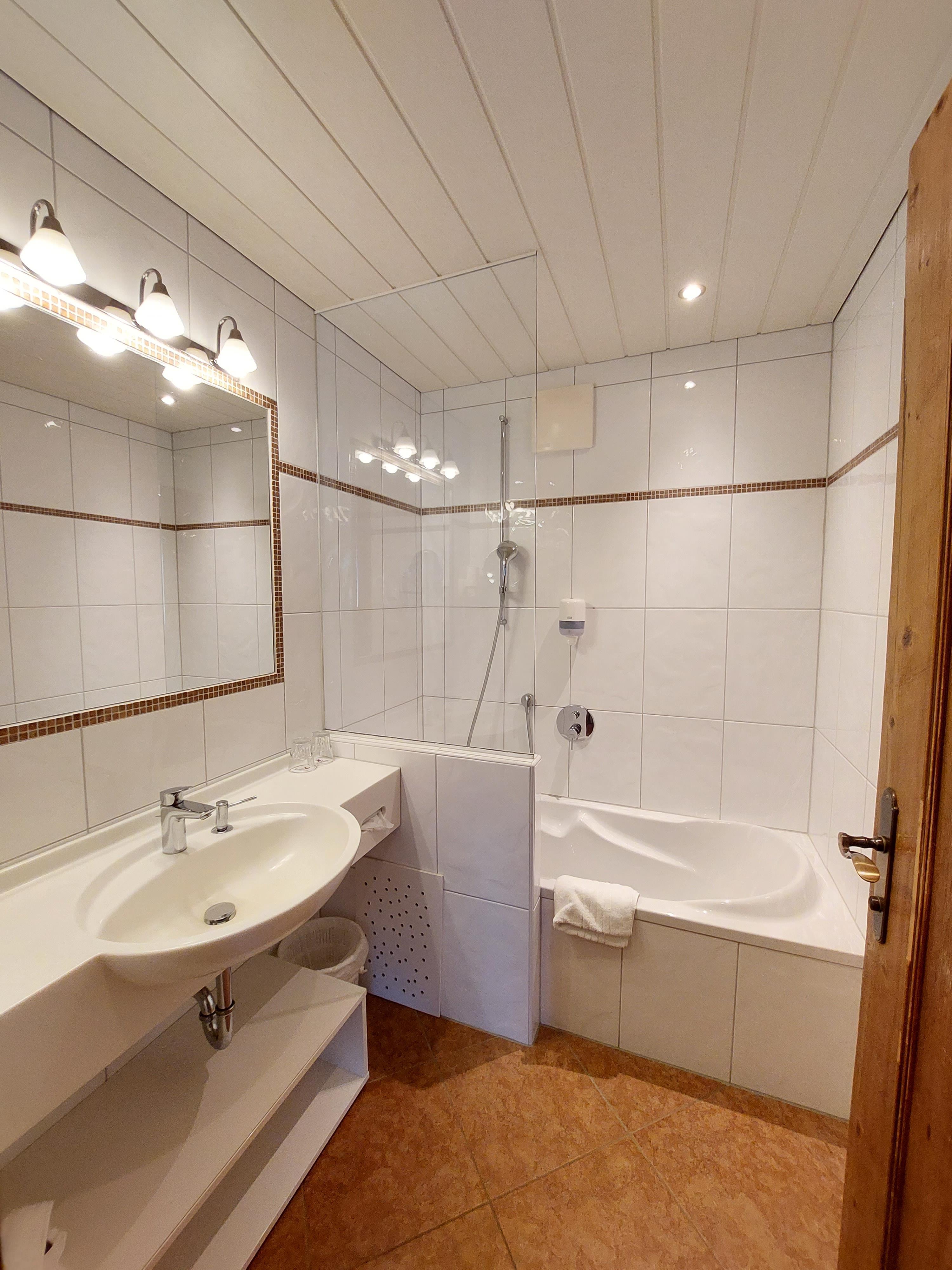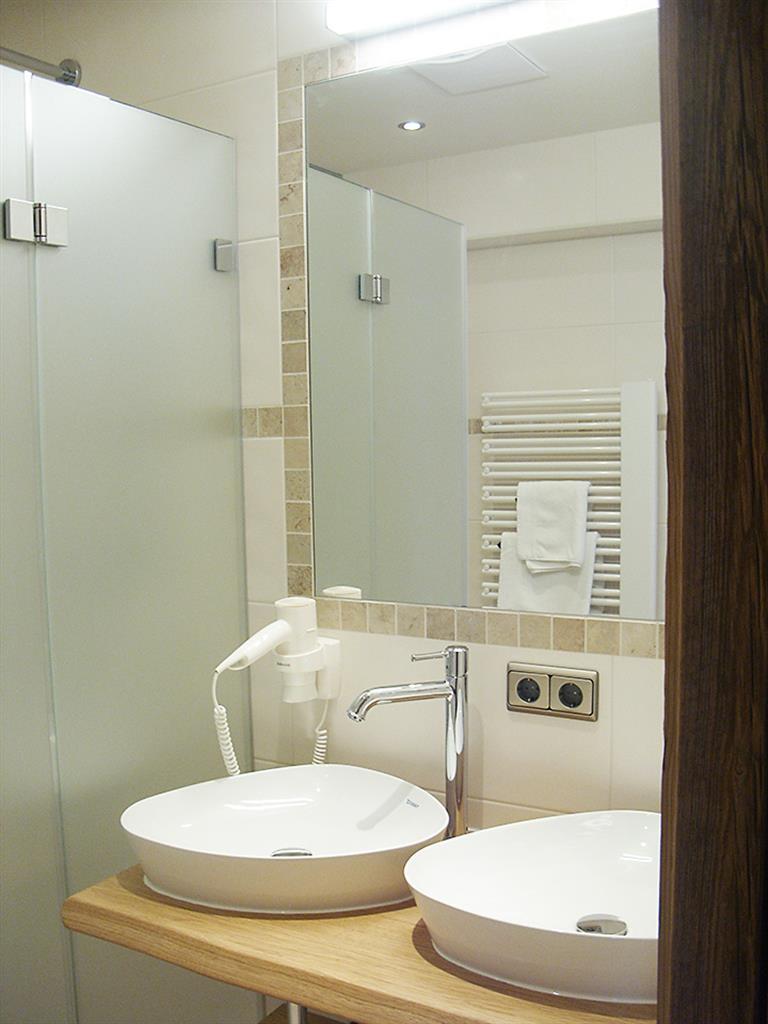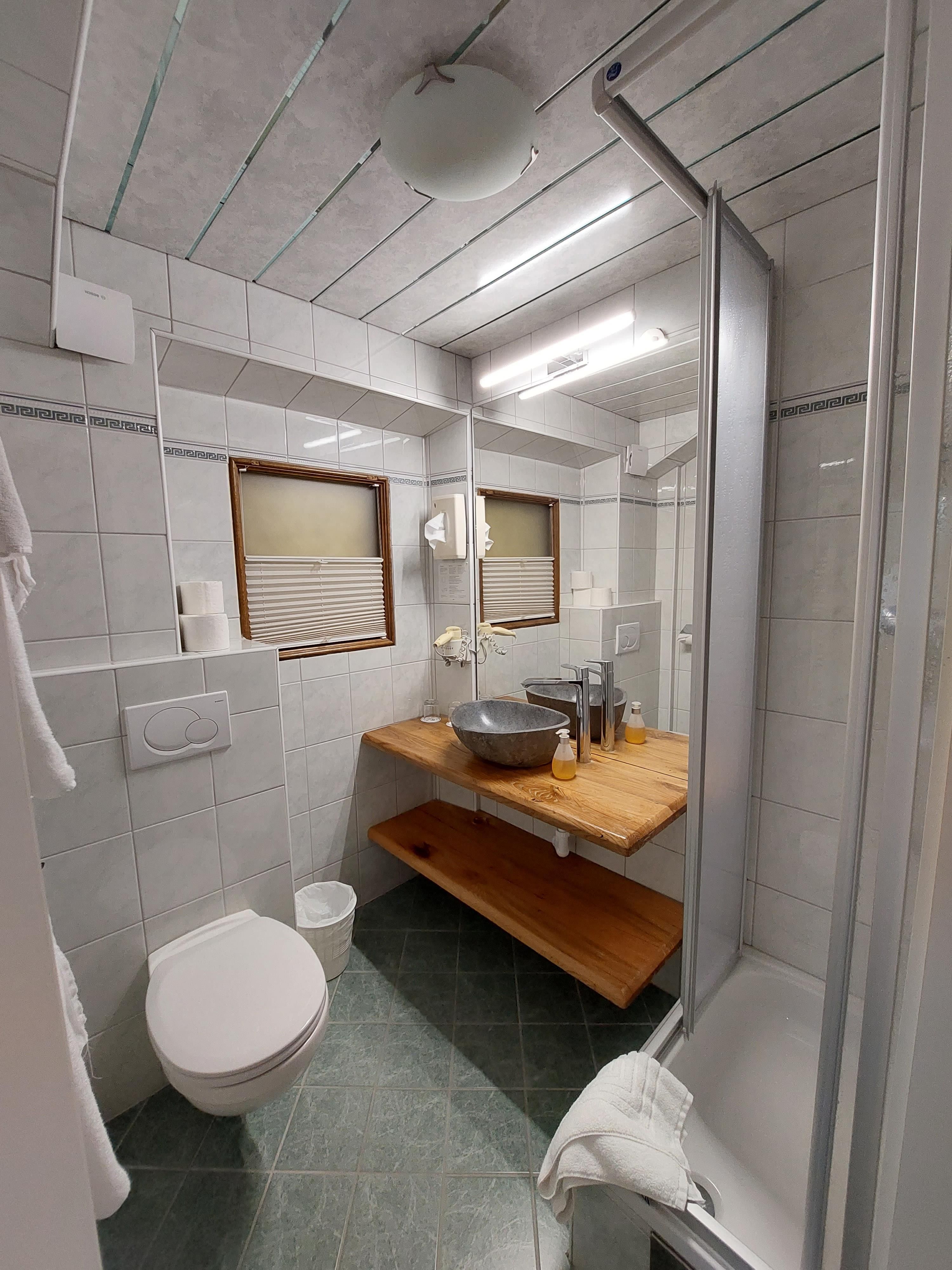 Badezimmer mit Dusche, WC getrennt, Haarfön