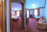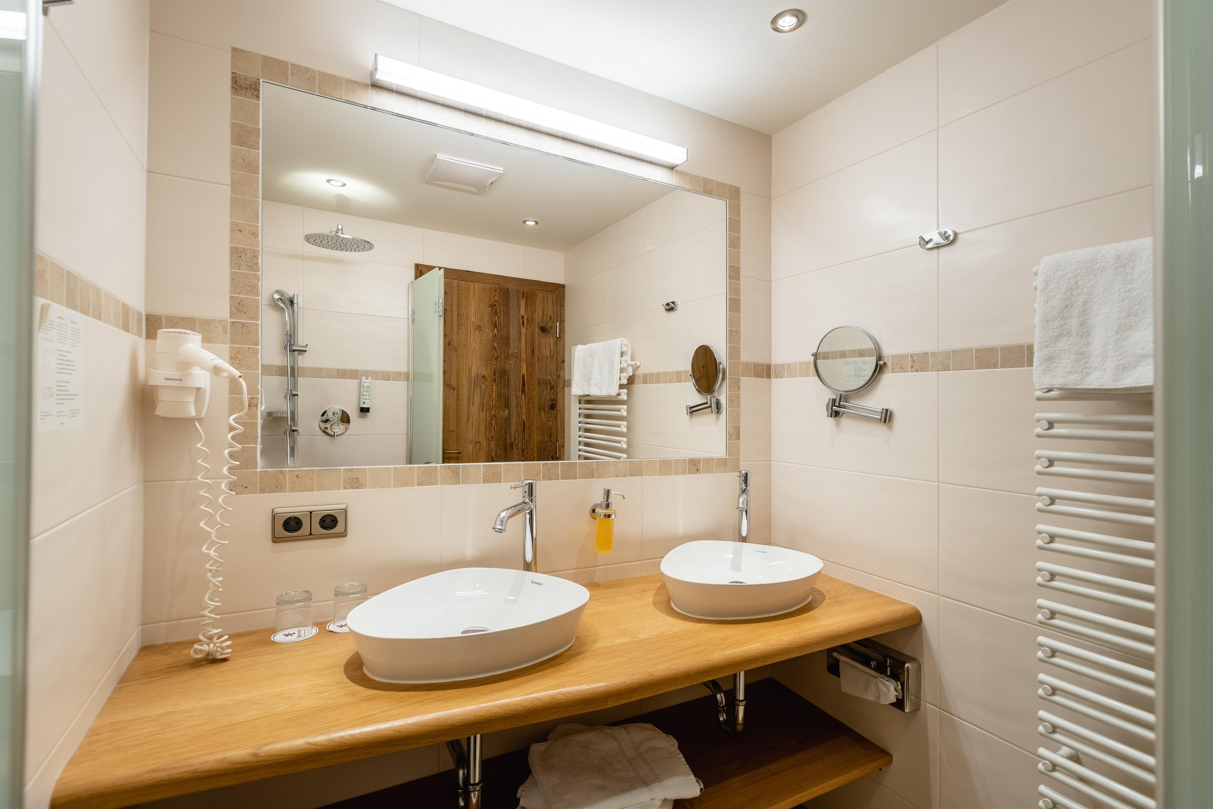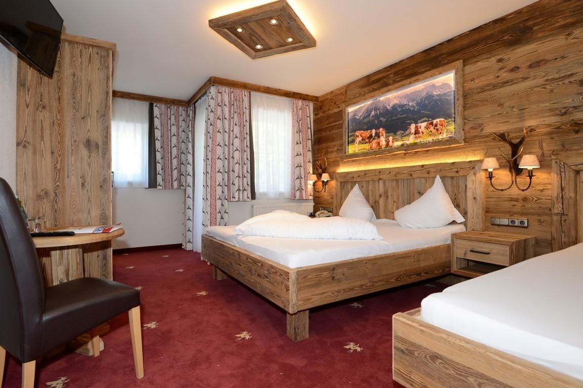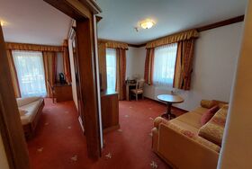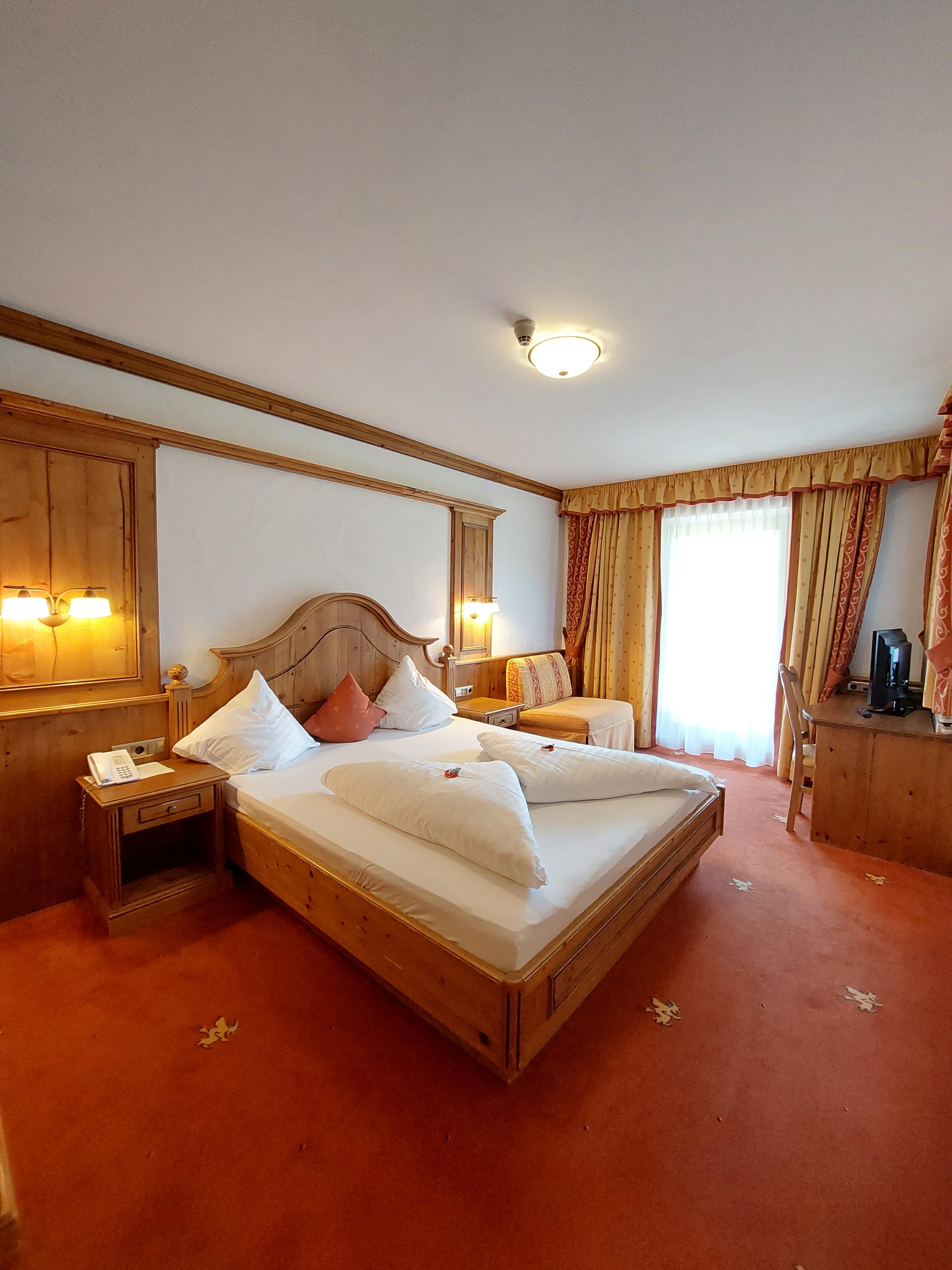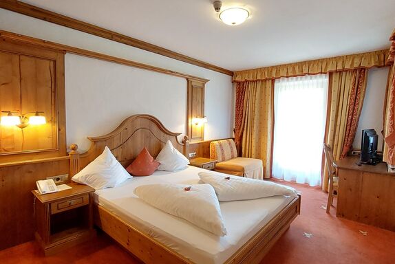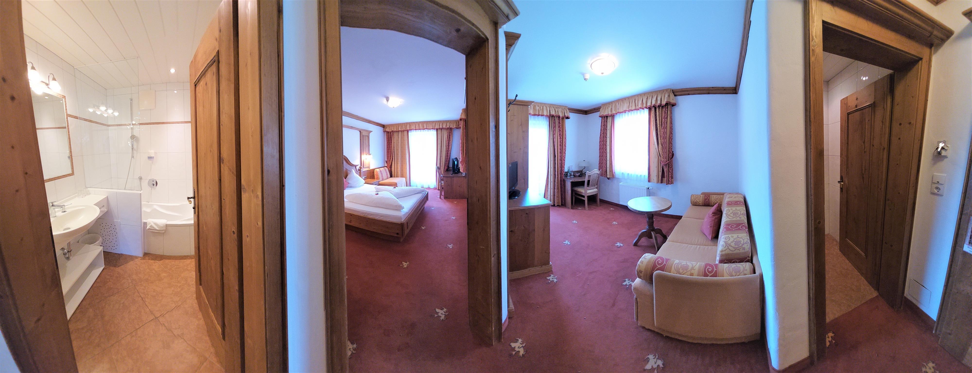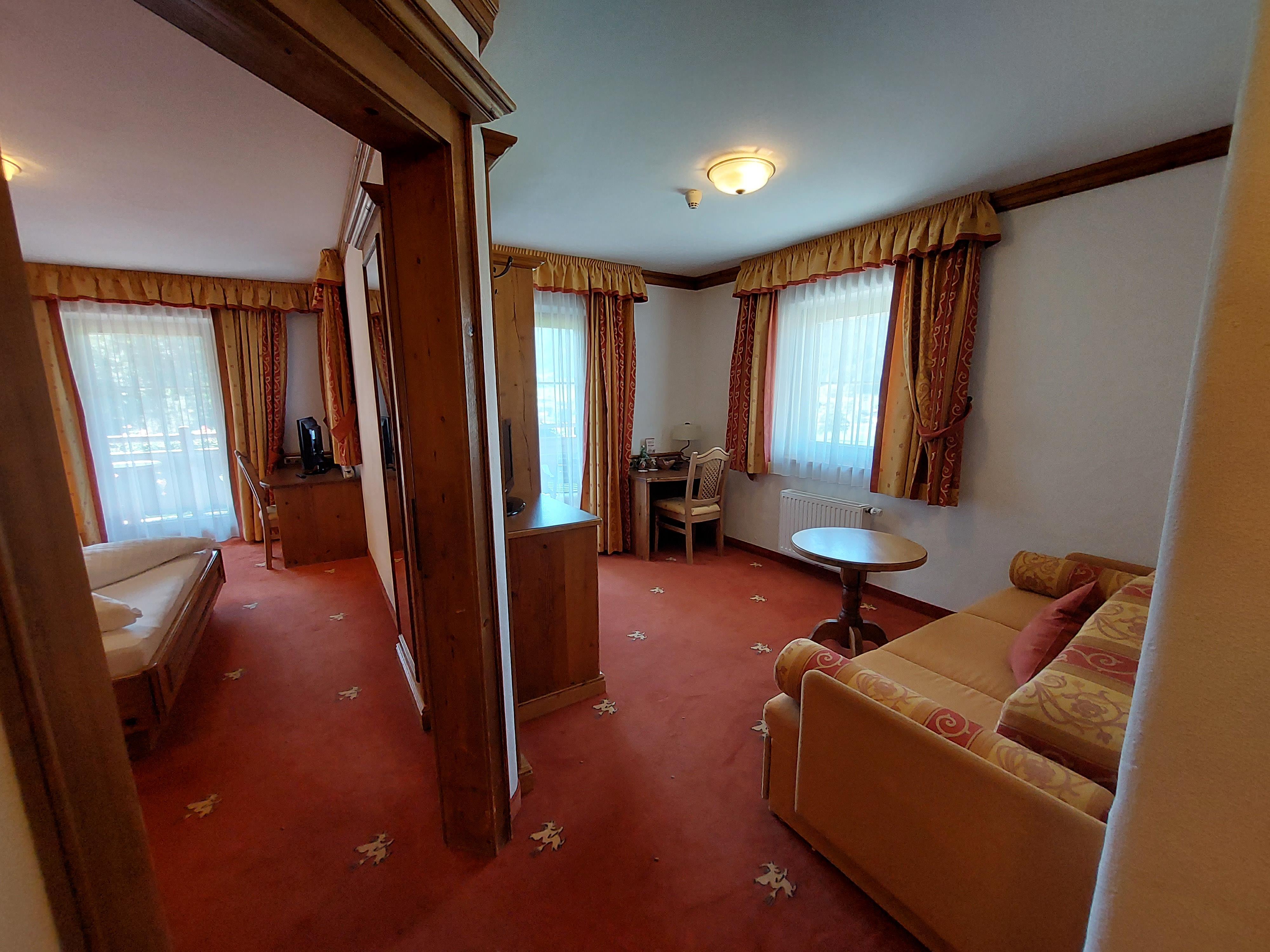 Familiensuite im Tiroler Landhausstil - Balkon - 36m² gesamt - Schlafzimmer mit Doppelbett, Wohnzimmer bzw. Kinderzimmer abgetrennt mit Couch, bei Kinder Ausziehcouch, Zimmersafe, 2x TV, Telefon, Wlan