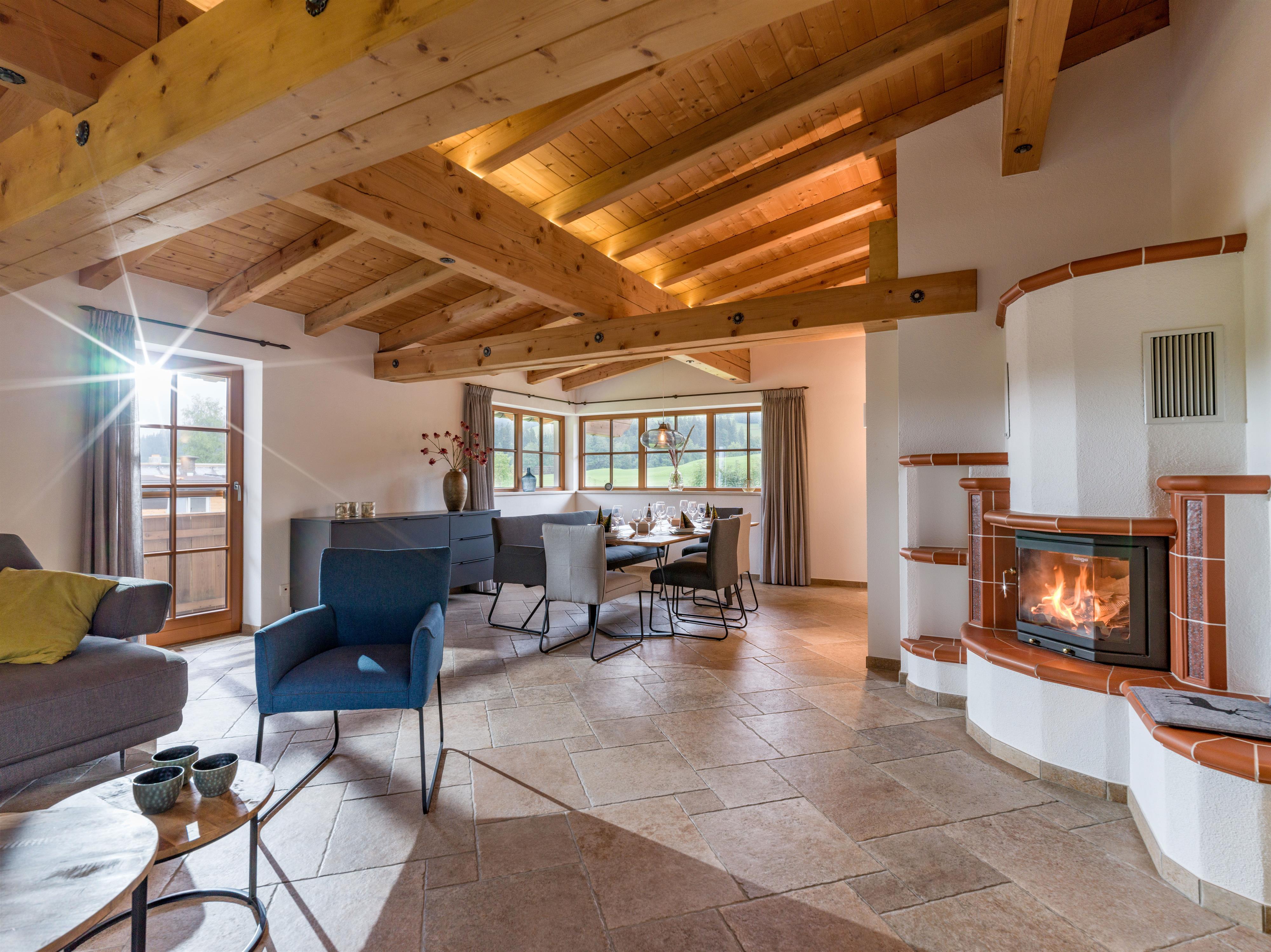 Das Appartement hat ein großes Wohnzimmer mit Kamin, Küche, 3 Schlafzimmer, 2 Badezimmer und 2 Toiletten. Sie genießen die Aussicht vom Balkon.