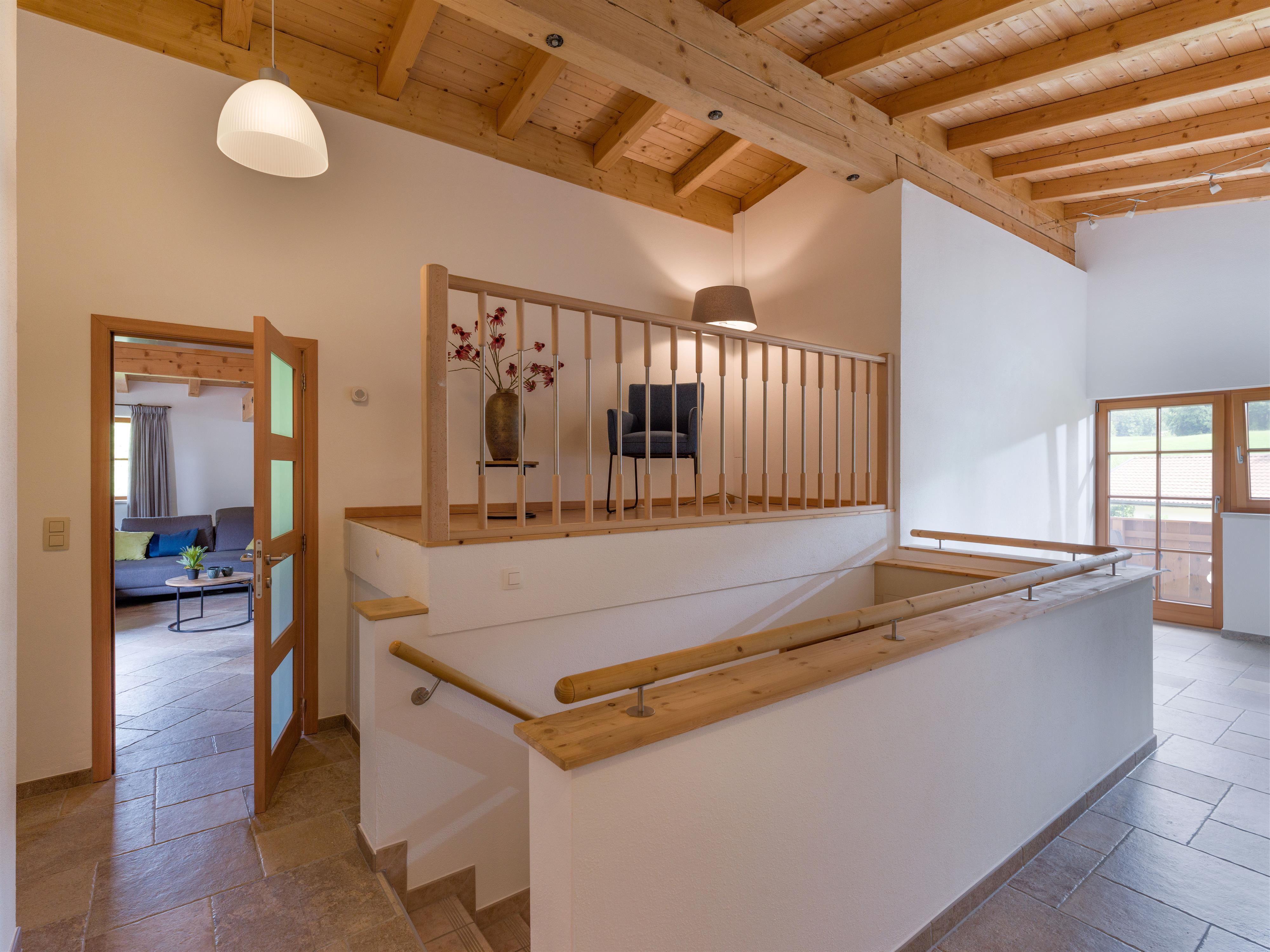 Die Ferienwohnung hat einen Balkon der um den ganzen Stock reicht.