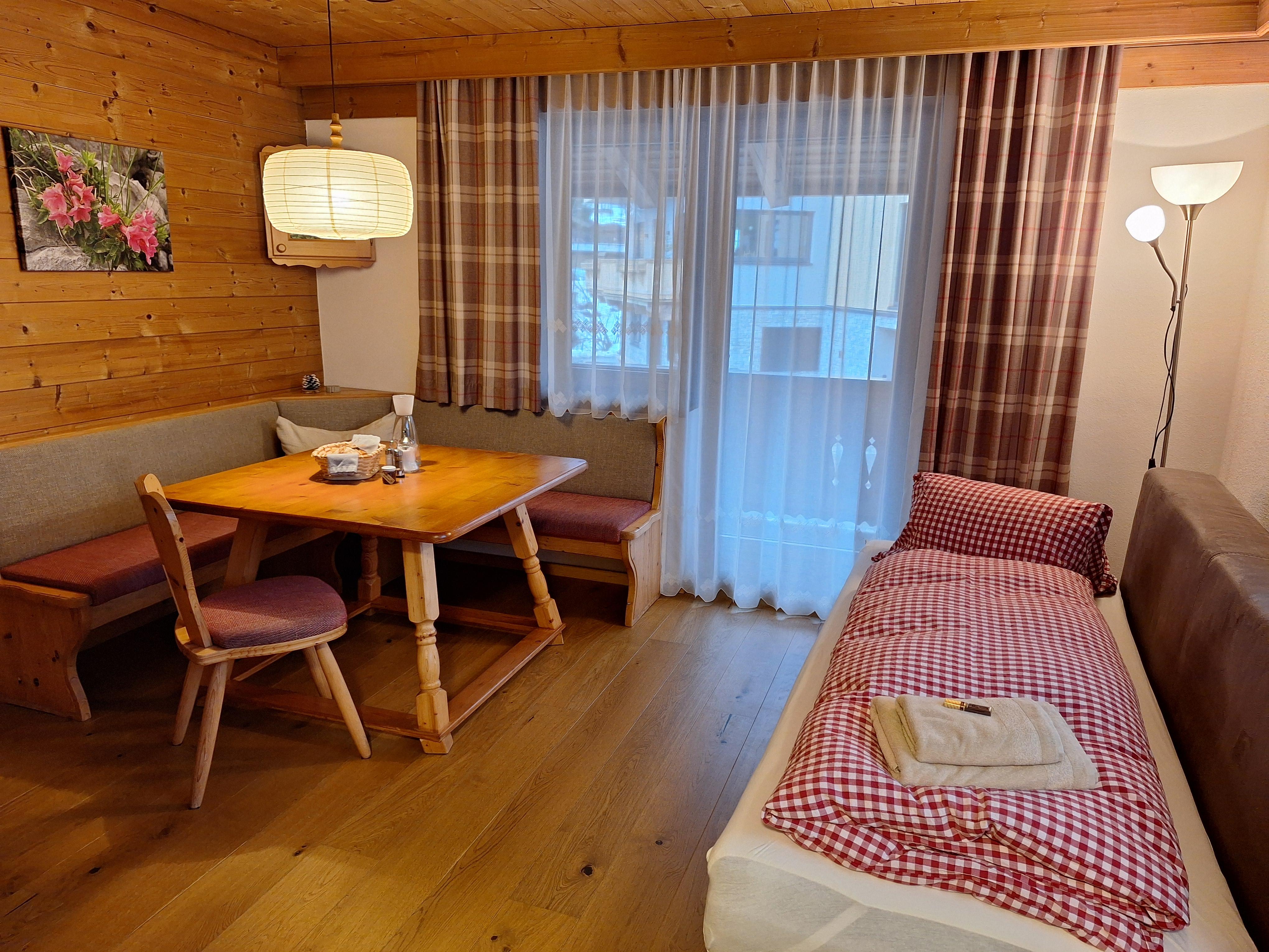 Das Appartement Oimrausch bietet ca. 43 m² im 1.Stock und einen Balkon mit Blick auf den Goinger Astberg. Es verfügt 1 Schlafzimmer mit ausziehbaren Schlafsessel, 1 Wohn-Schlafraum mit ausziehbarer Couch (1,80 m) und einer vollausgestatteten Küche sowie ein Badezimmer mit Dusche und WC.