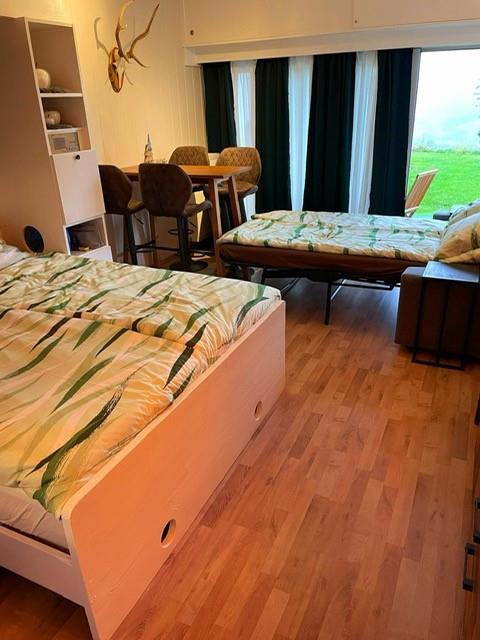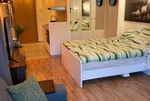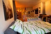 Im Erdgeschoss befindet sich das Appartement Kaiserseite, ein voll ausgestattetes Studio, ideal für 1 bis 3 Erwachsene oder 2 Erwachsene mit 1 oder 2 Kindern. Bitte beachten Sie, dass die ausziehbare Couch nur 1,20 Meter breit ist und maximal 110 Kilogramm tragen kann.