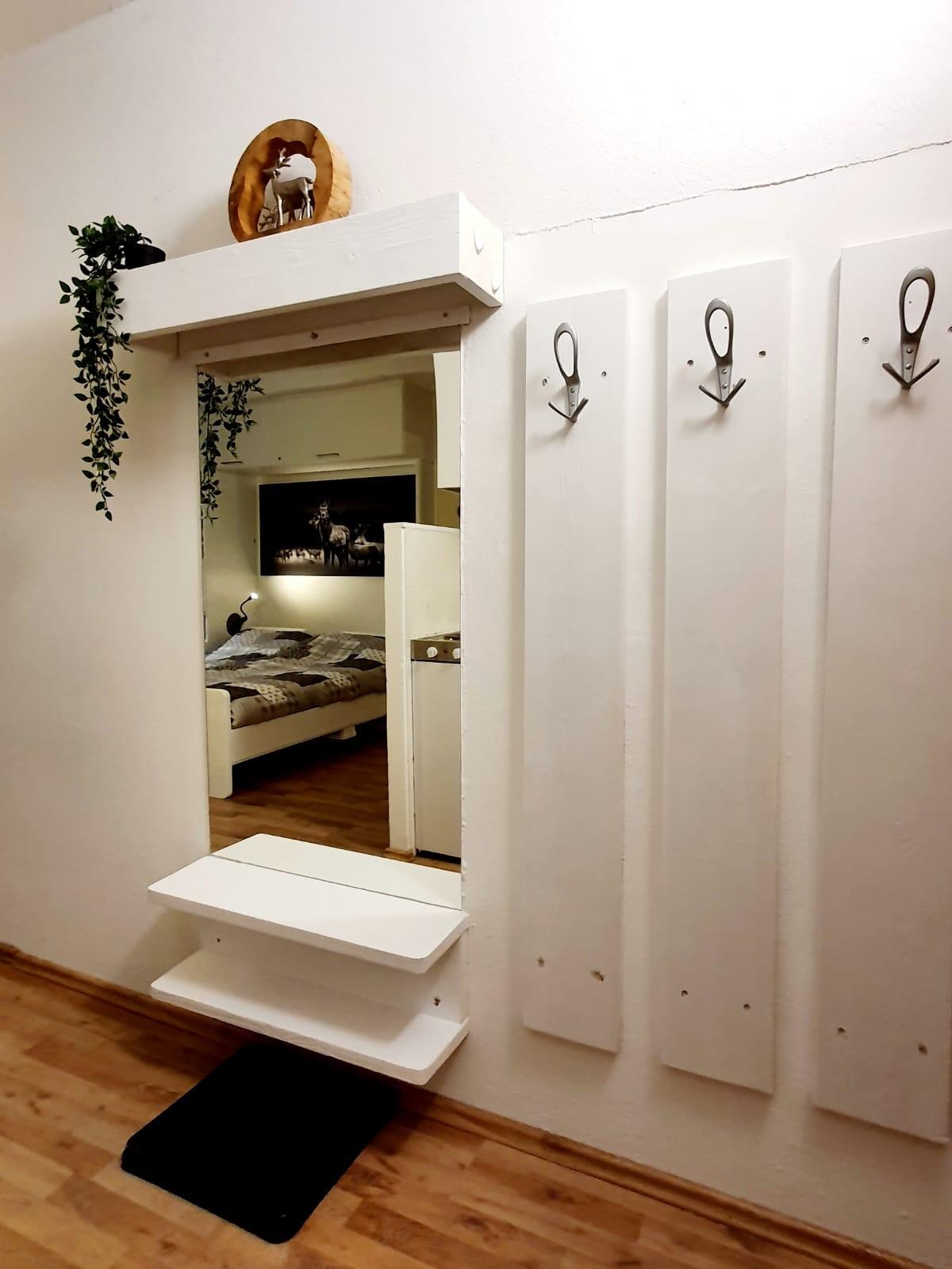 Diese Wohnung zeichnet sich durch die perfekte Aufteilung des Studios aus. Außerdem hat man von der privaten Terrasse einen schönen Blick auf das Kaisergebirge. Die Wohnung verfügt über ein Wohnzimmer mit (Schlaf-)Couch (200x120 und max. 110 Kilogramm), Doppelbett (200x160), TV, Essecke und natürlich eine Küche für die Zubereitung einer einfachen Mahlzeit. Das Badezimmer hat eine Dusche, ein Waschbecken und eine Toilette.