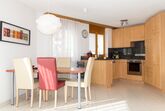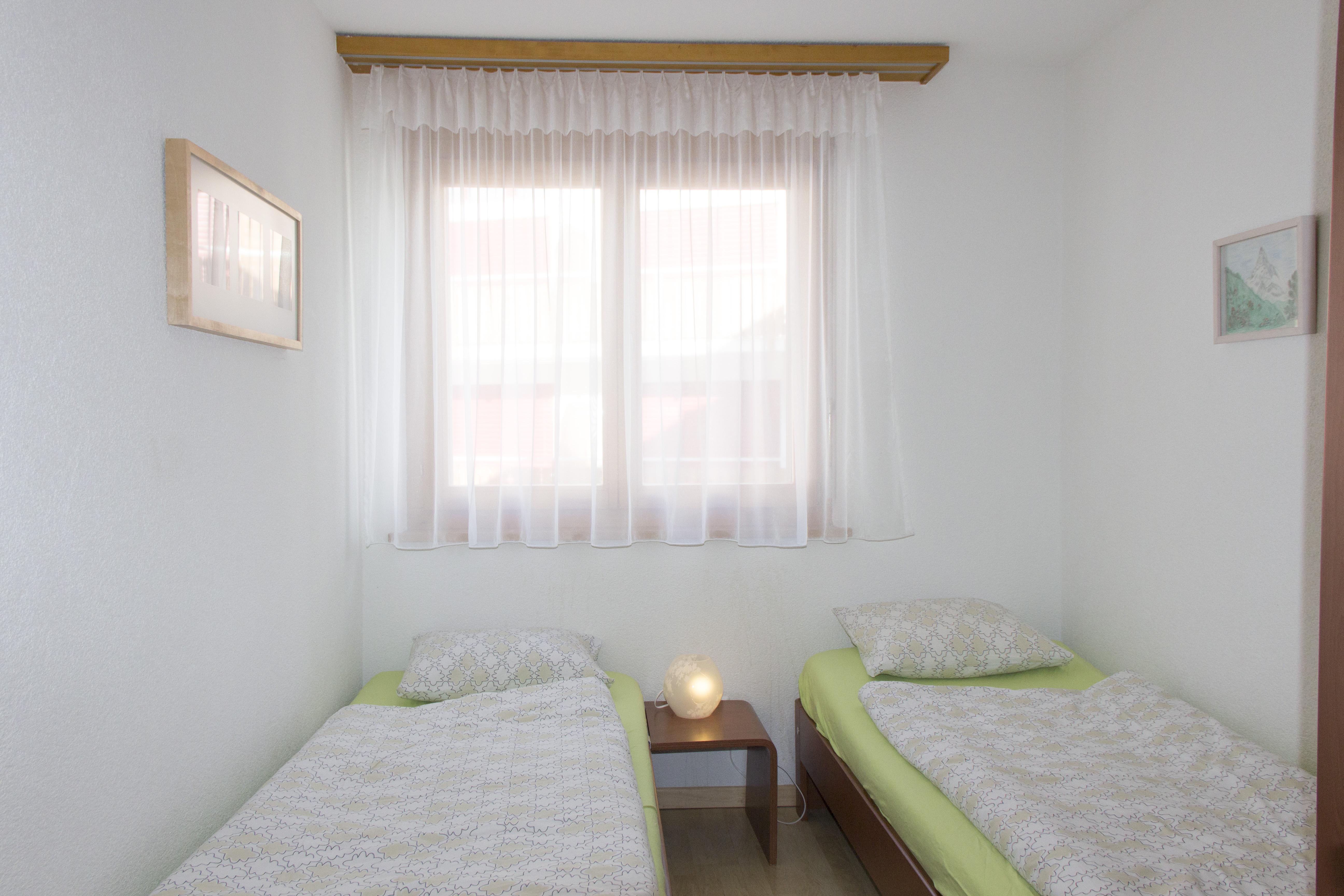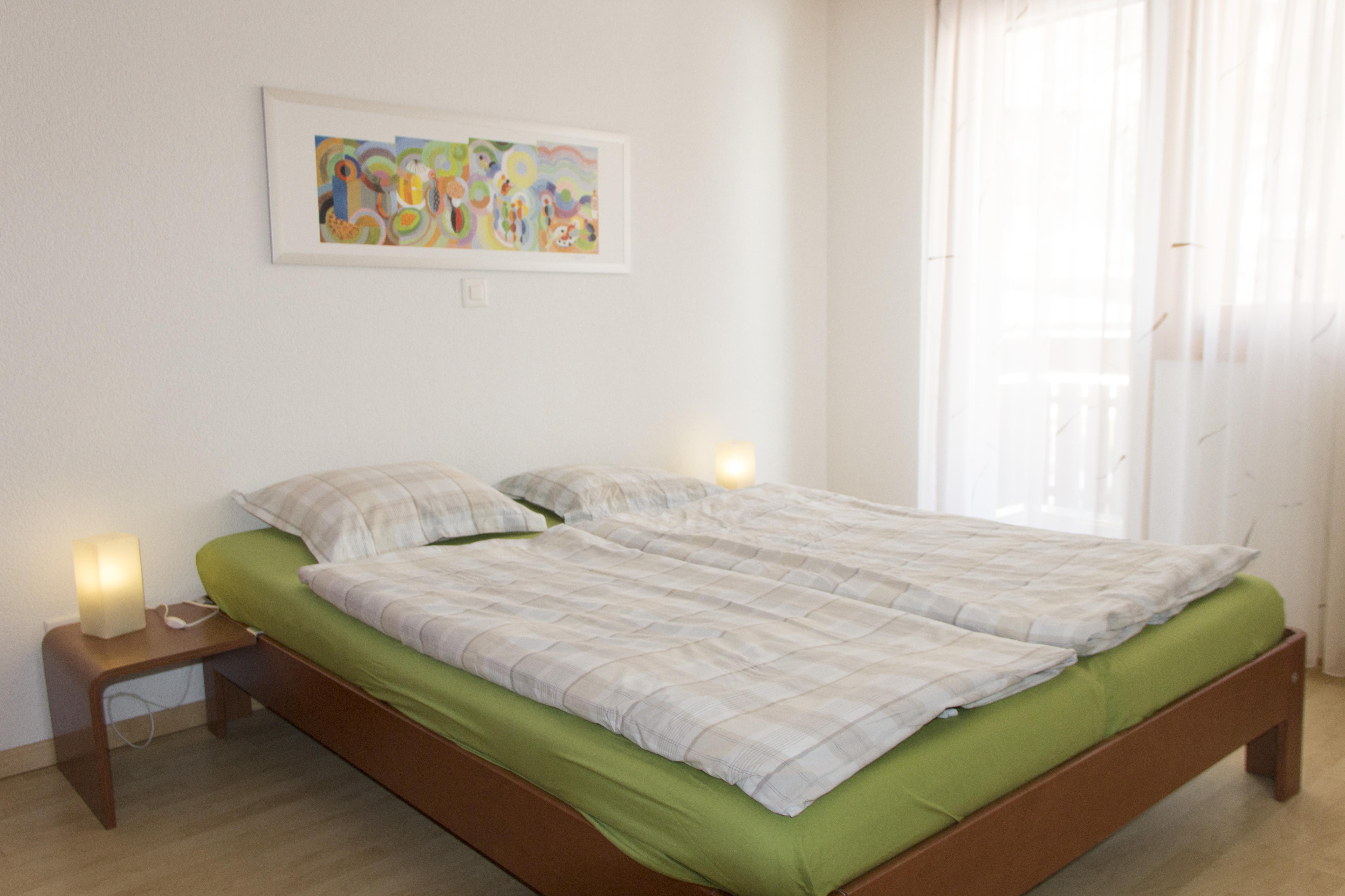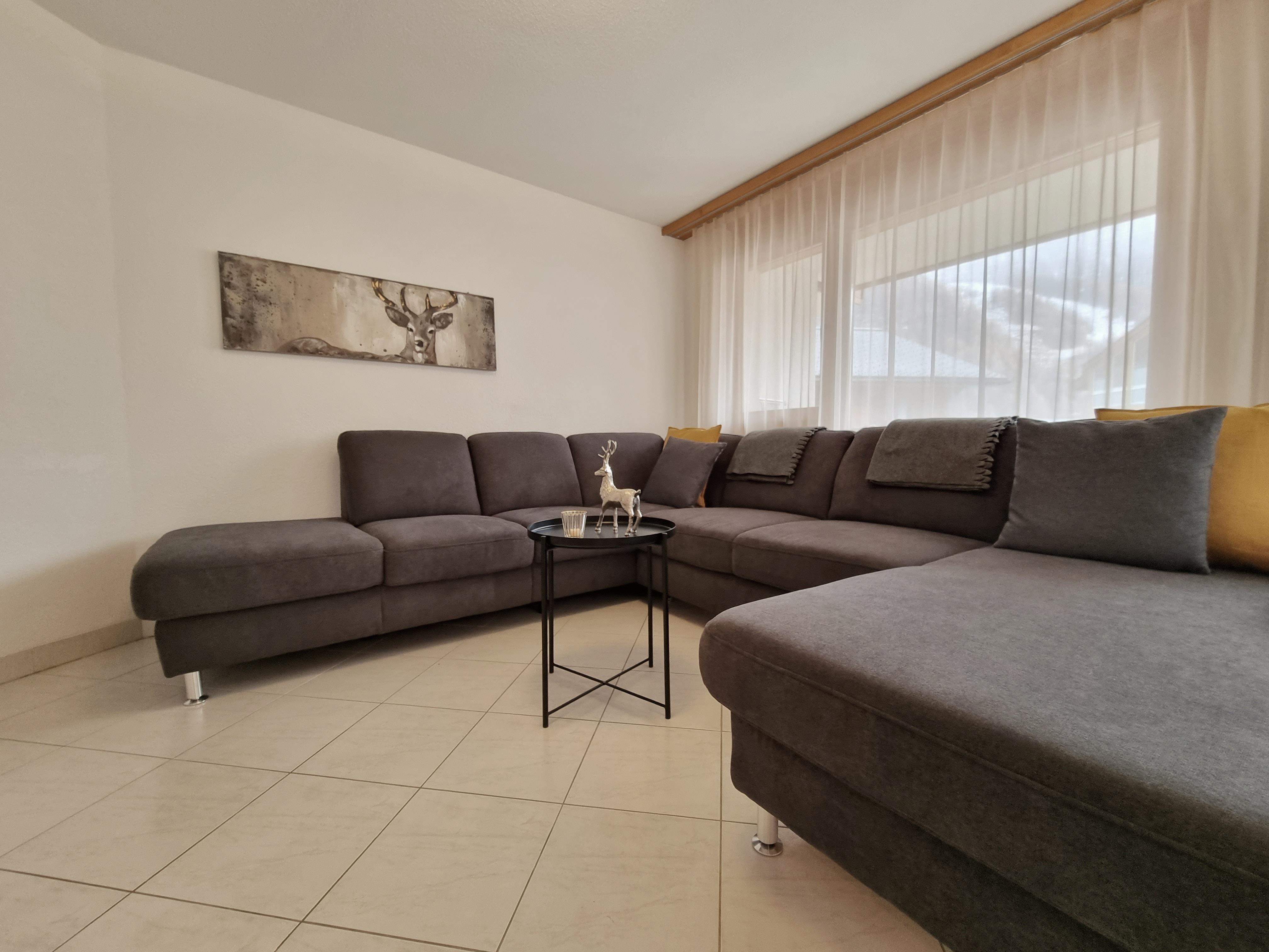 Modernes Apartment mit 2 Schlafzimmern im Haus Dominic A. Beide Schlafzimmer (eines mit einem Doppelbett, eines mit 2 Einzelbetten) teilen sich ein Badezimmer mit Badewanne und WC. Der grosse Wohn- & Essbereich mit integrierter Küche ist der perfekte Ort zum Entspannen. Im Wohnzimmer befindet sich zudem eine Schlafcouch auf der 2 weitere Personen übernachten können. Auch besitzt das Apartment einen Balkon. Skiraum und kostenloses WIFI sind vorhanden.