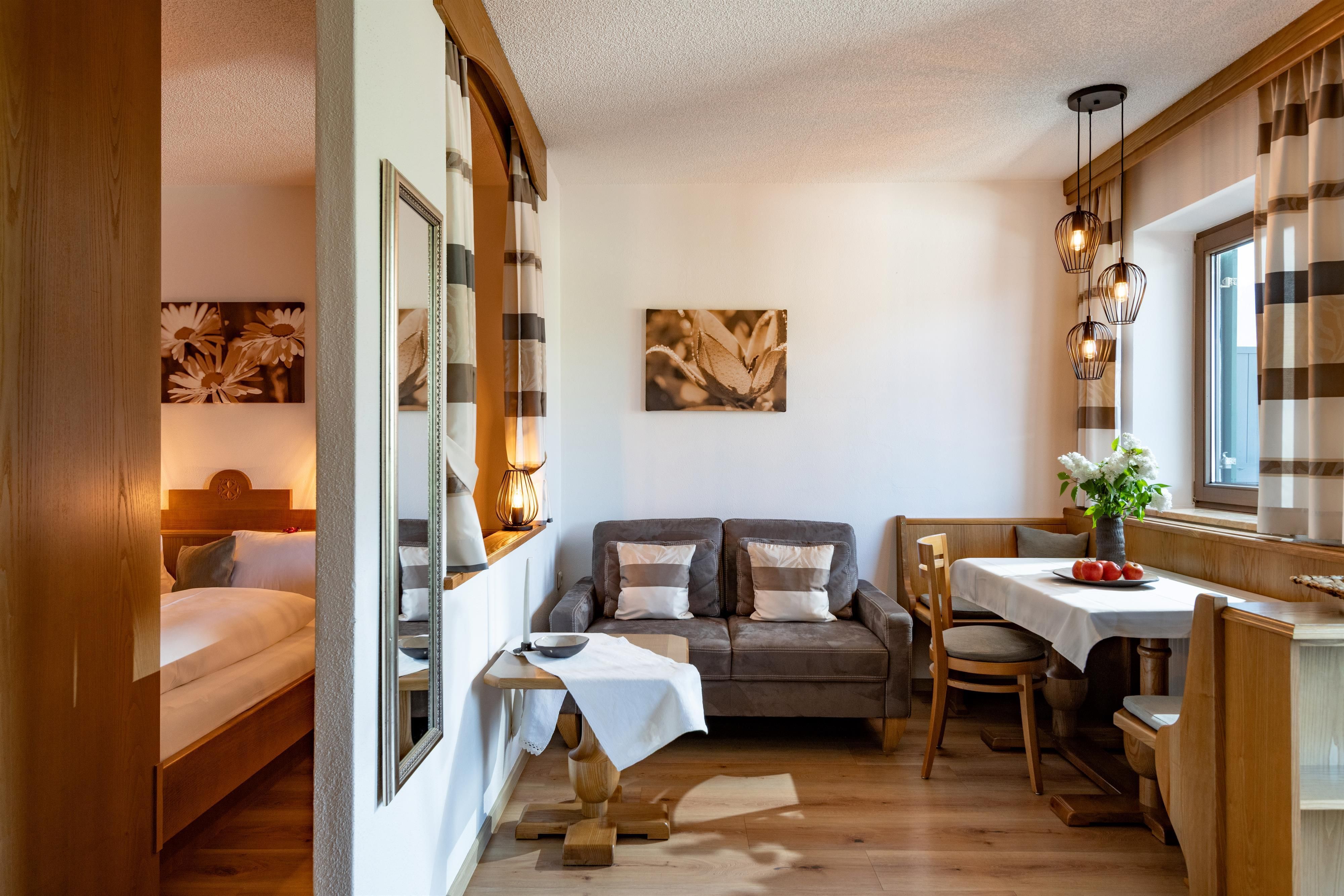 App. Typ I: Dieses Appartement hat ca.40m², einen Wohnschlafraum abgetrennt durch eine Trennwand, Küche mit Geschirrspüler, Badezimmer mit Dusche oder Badewanne, teilweise separates WC, gemütliche Sitzecke mit Dorfblick, Nordbalkon mit Blick zum Wilden Kaiser.