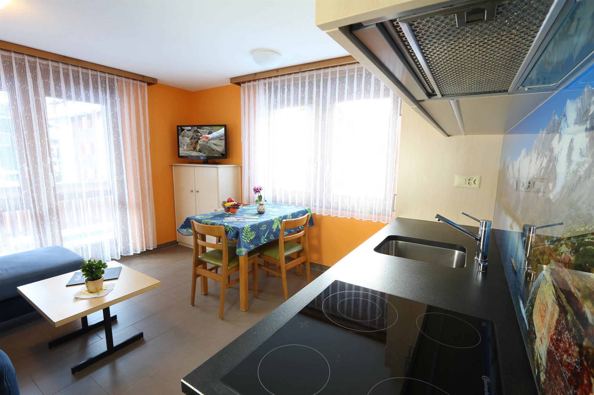 Moderne und geräumige ***s / ****Apartments für 1 – 6 Personen in einem Top-Qualitätsstandard. Je nach Wohnungsgrösse mindestens 1 Schlafzimmer mit Lavabo. Vollausgestattete Wohn-Essküche mit Ceran-Kochfeld, Backofen, Kühlschrank mit Gefrierfach, Nespresso Kapsel-Kaffeemaschine, Geschirrspüler, Wasser- & Eierkocher sowie Käse-Fondue Caquelon. (Raclette-Ofen, Tischgrill, Toaster etc. stehen auf Anfrage zur Verfügung – einfach fragen!) Radio-CD Player, TV-Flachbildschirm mit Kabel-TV und Infokanal Saas-Fee, kostenfreies W-LAN, Safe, Dusche/WC mit Haartrockner. Sonniger Südbalkon mit einzigartigem Panoramablick auf die Gletscherbergwelt und Bergspitzen der Mischabelkette.