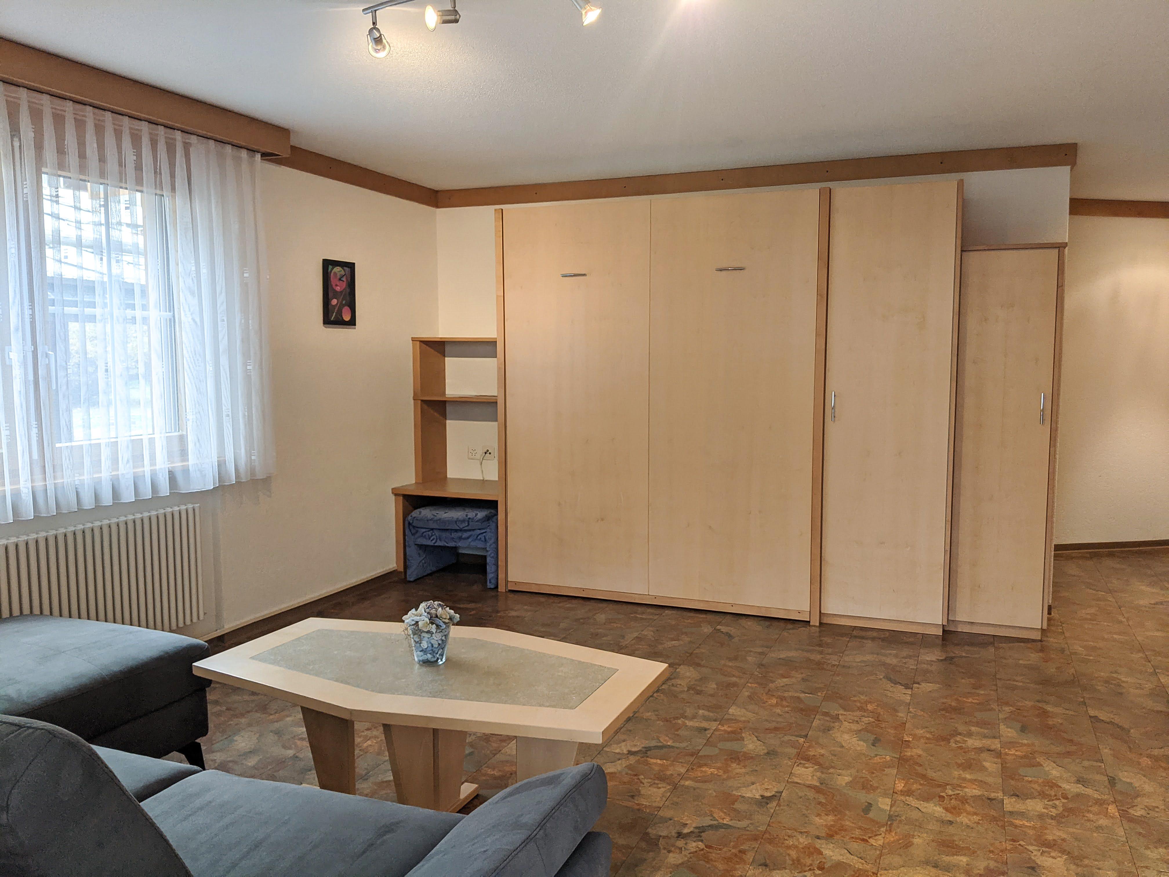 3 1/2-Zimmerwohnung (74 m2), 2 .Stock, 2 Doppelschlafzimmer, Wohnzimmer mit 2 Schrankbetten, Küche mit Geschirrspüler, Nespresso Kaffeemaschine, Wasserkocher, Bad/WC, Dusche/WC, TV, Radio, Südbalkon. Endreinigung inklusive. Sehr zentral und nahe der Bergbahnen.