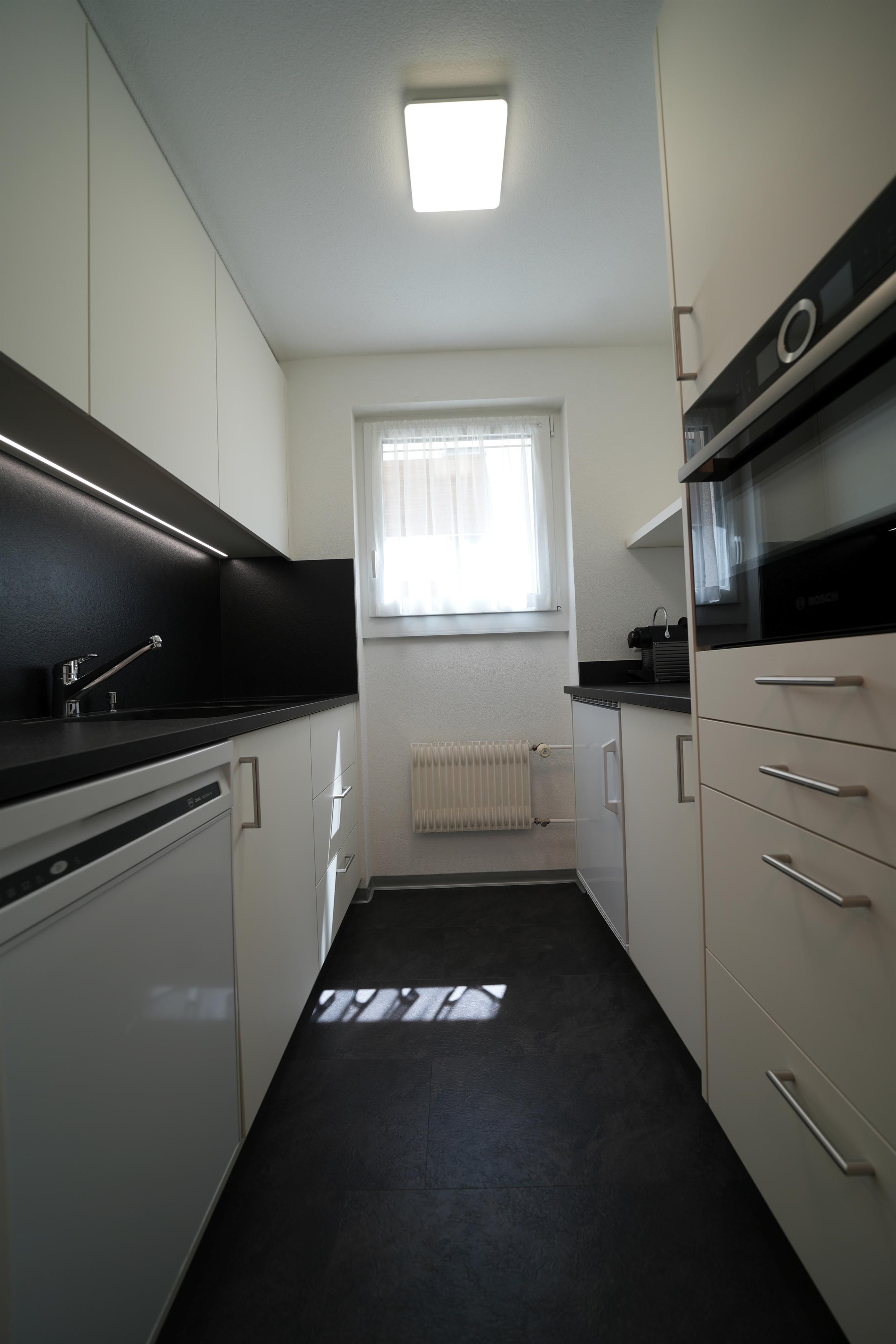 Separate Küche mit Geschirrspüler (Tabs inkl.), Induktions-Kochherd, Backofen-Mikrowelle, Kühlschrank mit Gefrierfach, Toaster, Nespresso Kapsel-Kaffeemaschine, Wasserkocher, Salz und Pfeffer Mühle, 1 Doppelschlafzimmer mit Lavabo, Wohn-Schlafraum, Sitzgruppe, Esstisch, 50 Multimedia Flat-TV, Google Chromecast, Kabel-TV über 100 Sender, Blu-Ray/DVD Player, USB Ladegerät, Kabel-Radio, Dusch/WC mit Haartrockner, Bett - Bad - und Küchenwäsche vorhanden, Süd-Balkon, Telefon-Europa Flatrate. Gratis Highspeed Internet (WiFi und Ethernet). Grosse Blu-Ray Videothekauswahl.