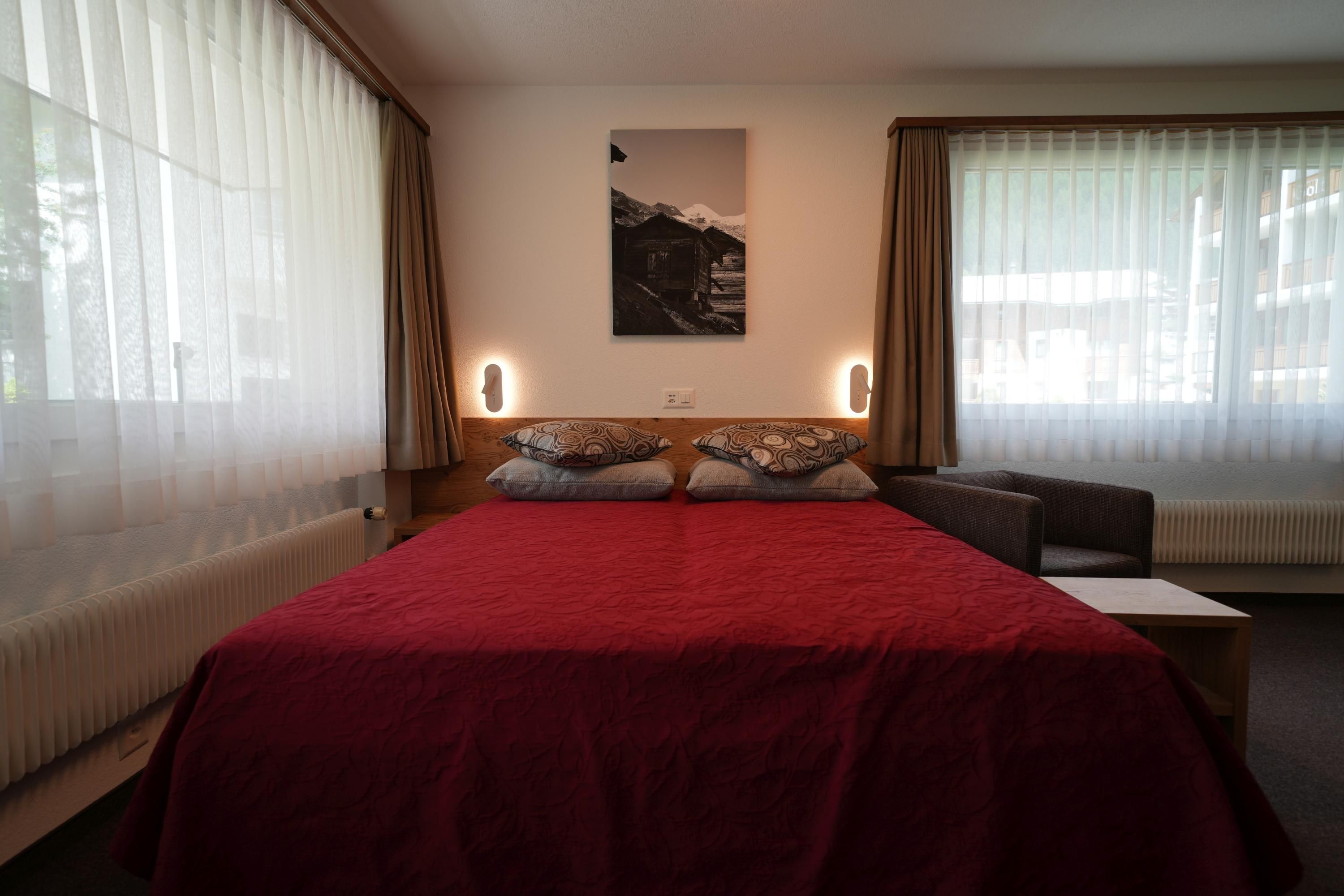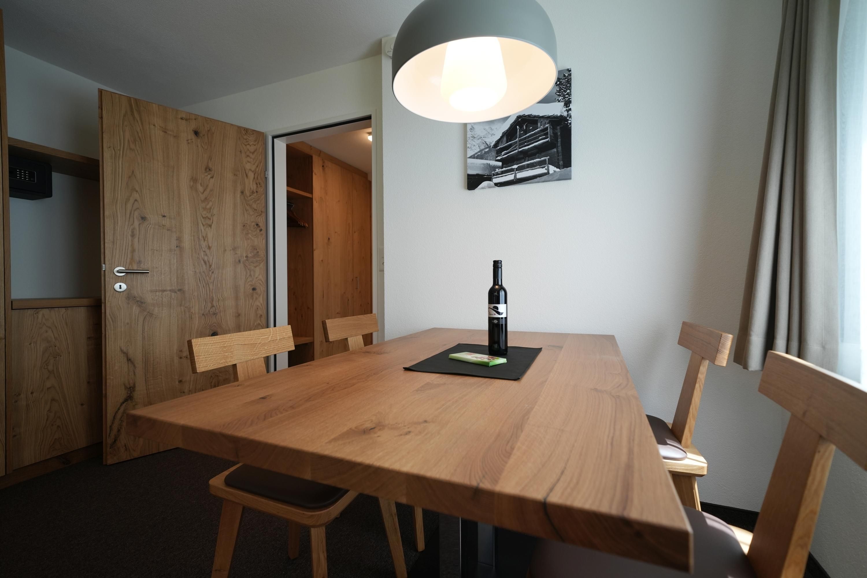 Separate Küche mit Geschirrspüler (Tabs inkl.), Induktions-Kochherd, Backofen-Mikrowelle, Kühlschrank mit Gefrierfach, Toaster, Nespresso Kapsel-Kaffeemaschine, Wasserkocher, Salz und Pfeffer Mühle, 1 Doppelschlafzimmer mit Lavabo, Wohn-Schlafraum, Sitzgruppe, Esstisch, 50 Multimedia Flat-TV, Google Chromecast - Apple AirPlay - Samsung Smart View, Kabel-TV über 100 Sender, Blu-Ray/DVD Player, USB Ladegerät, Kabel-Radio, Safe, Bad/WC mit Haartrockner, Bett - Bad - und Küchenwäsche vorhanden, Süd-Balkon, Telefon-Europa Flatrate. Gratis Highspeed Internet (WiFi und Ethernet). Grosse Blu-Ray Videothekauswahl.