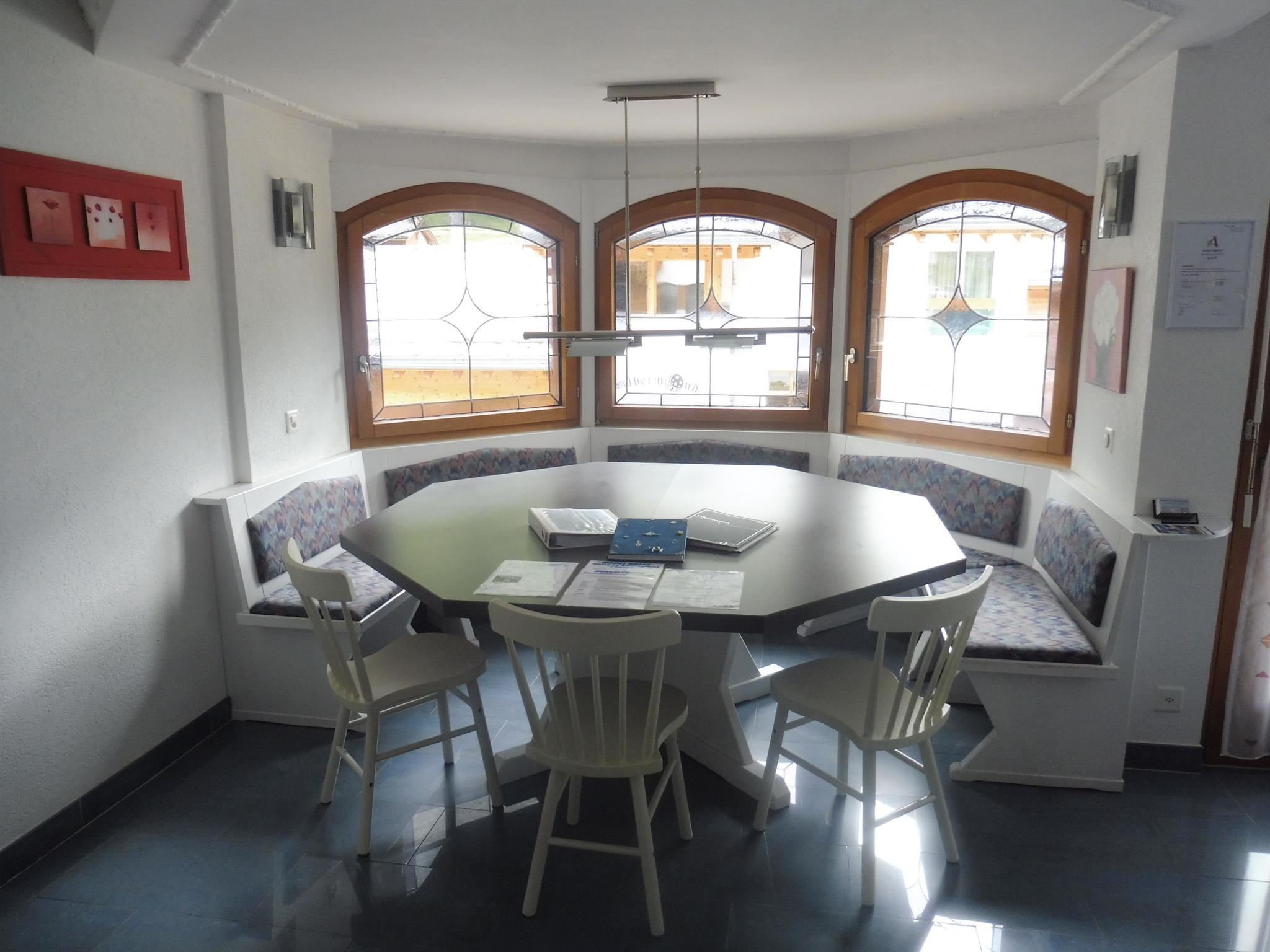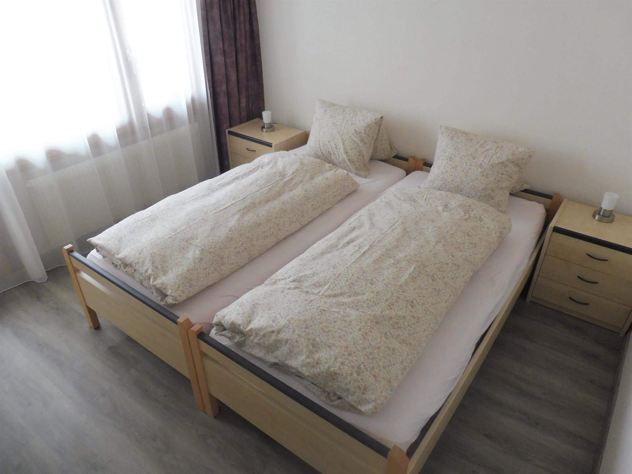 Die gesamte Fläche der Wohnung beträgt ca. 100m2. Das heimelige Raumprogram besteht aus 2 Doppelzimmer und 1 Ehezimmer. Alle Zimmer haben ein Lavabo. Dusche/WC mit Ecksprudelbad. Modern eingerichtete Küche. Wohnzimmer mit gemütlichem Kachelofen. Grosszügiger Essplatz im Erker. TV, Radio und Internet ist vorhanden, sowie Balkon bei jedem Zimmer und ein Wintergarten.