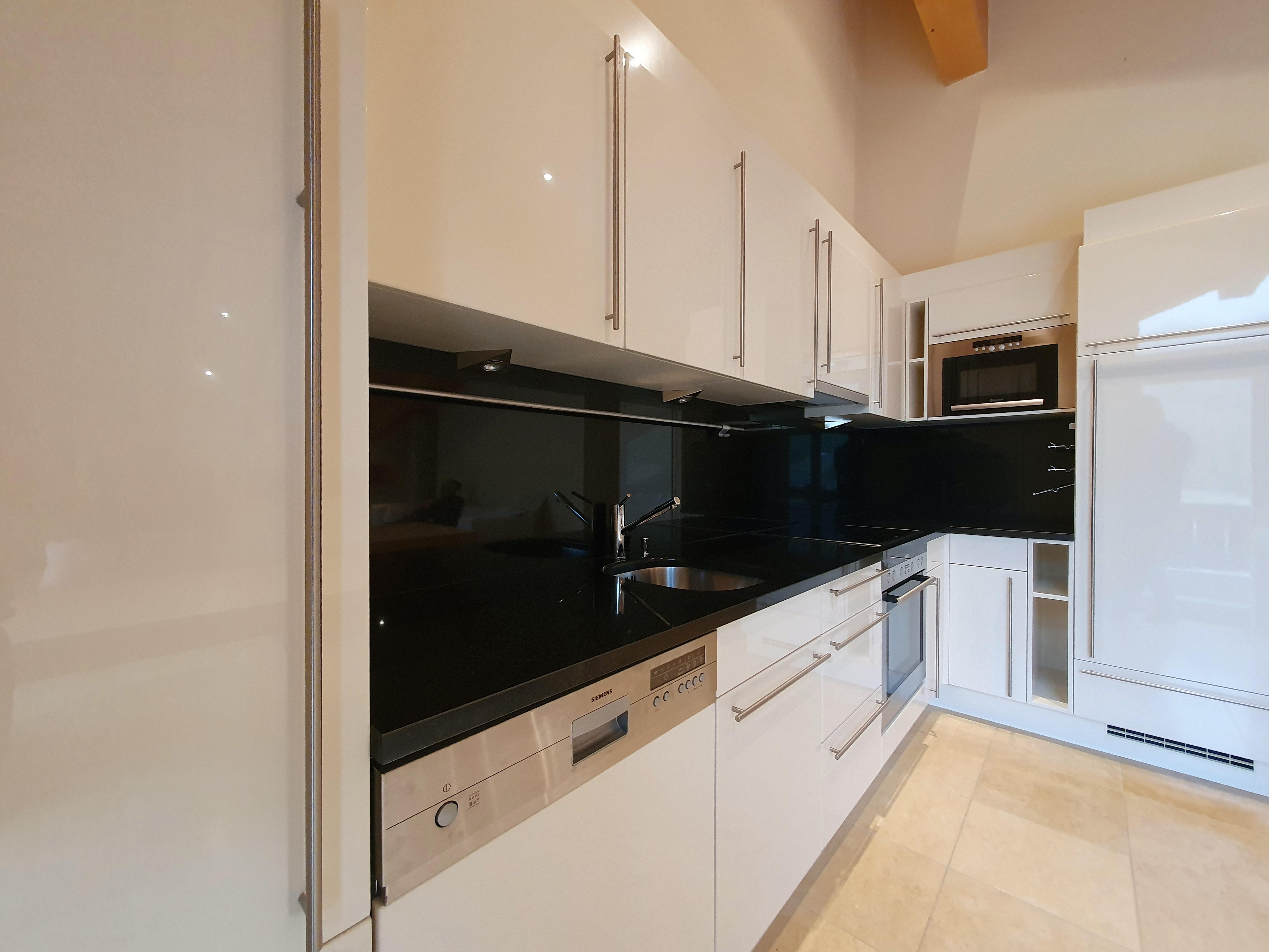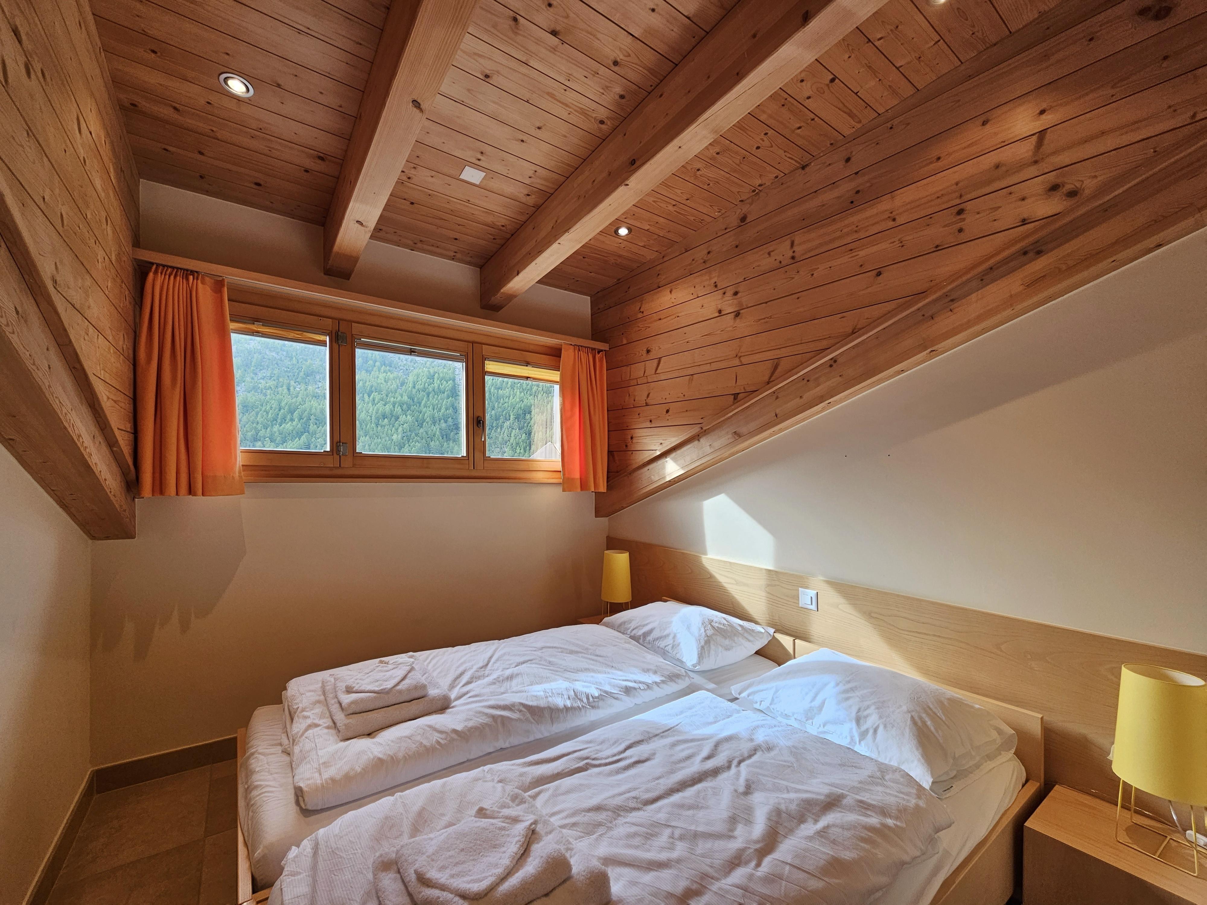 Moderne Dachwohnung direkt an der Piste mit 3 Schlafzimmer. 1 Schlafzimmer hat ein Doppelbett, 2 Schlafzimmer haben 2 Einzelbetten. Jedes Schlafzimmer hat ein en-suite Badezimmer. Im Wohnbereich befindet dich die moderne, offene Küche, welche keine Wünsche offen lässt. Auch befindet sich im Apartment eine eigene Waschmaschine. Vom grossen Balkon aus geniessen Sie eine traumhafte Aussicht auf die Berge.