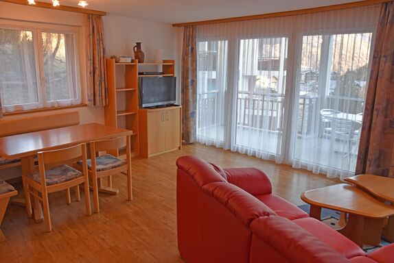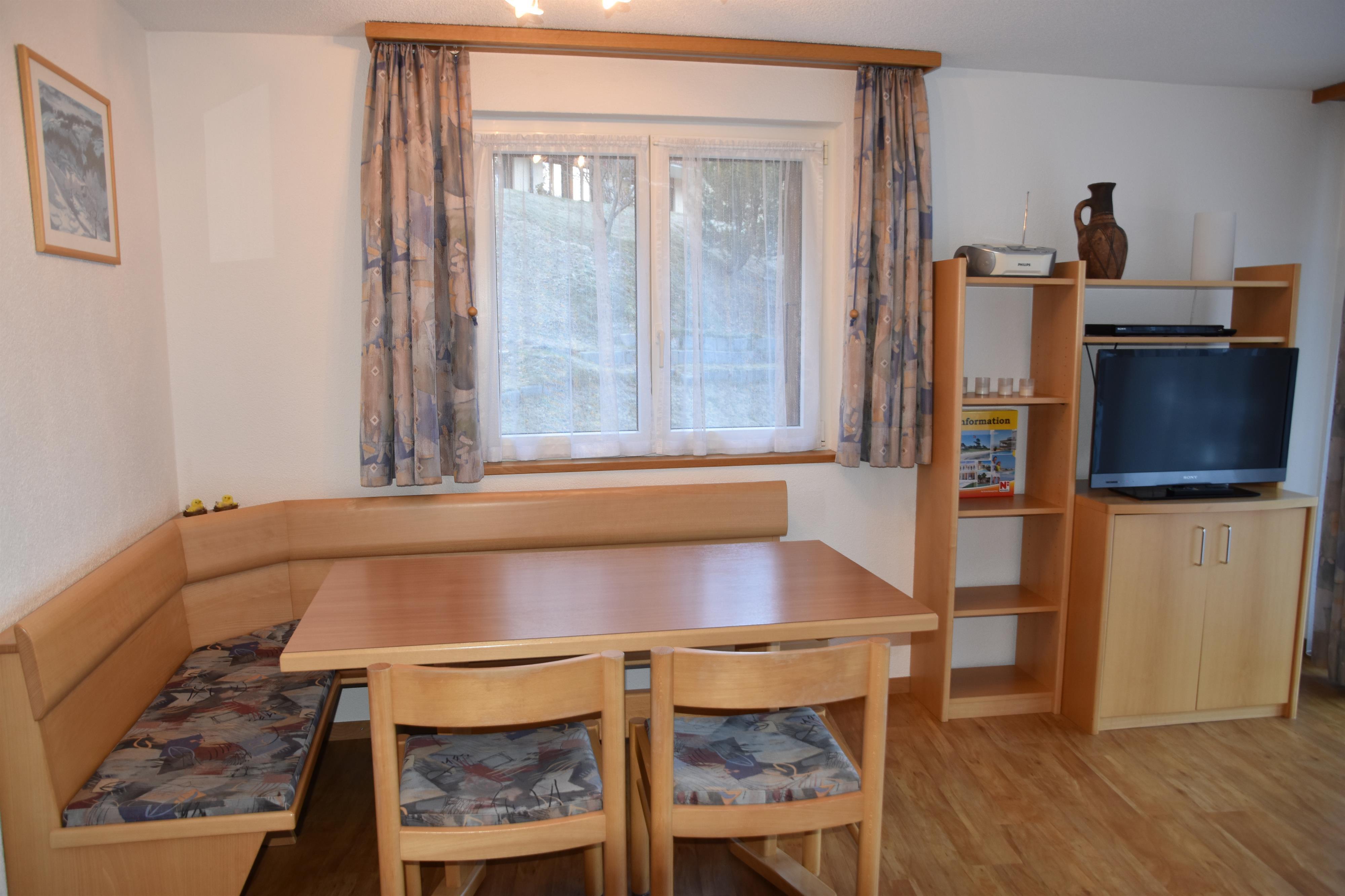 Offener, gemütliches Wohn-/Essbereich mit Flat TV und WLAN kostenlos – grosse Ostterrasse.