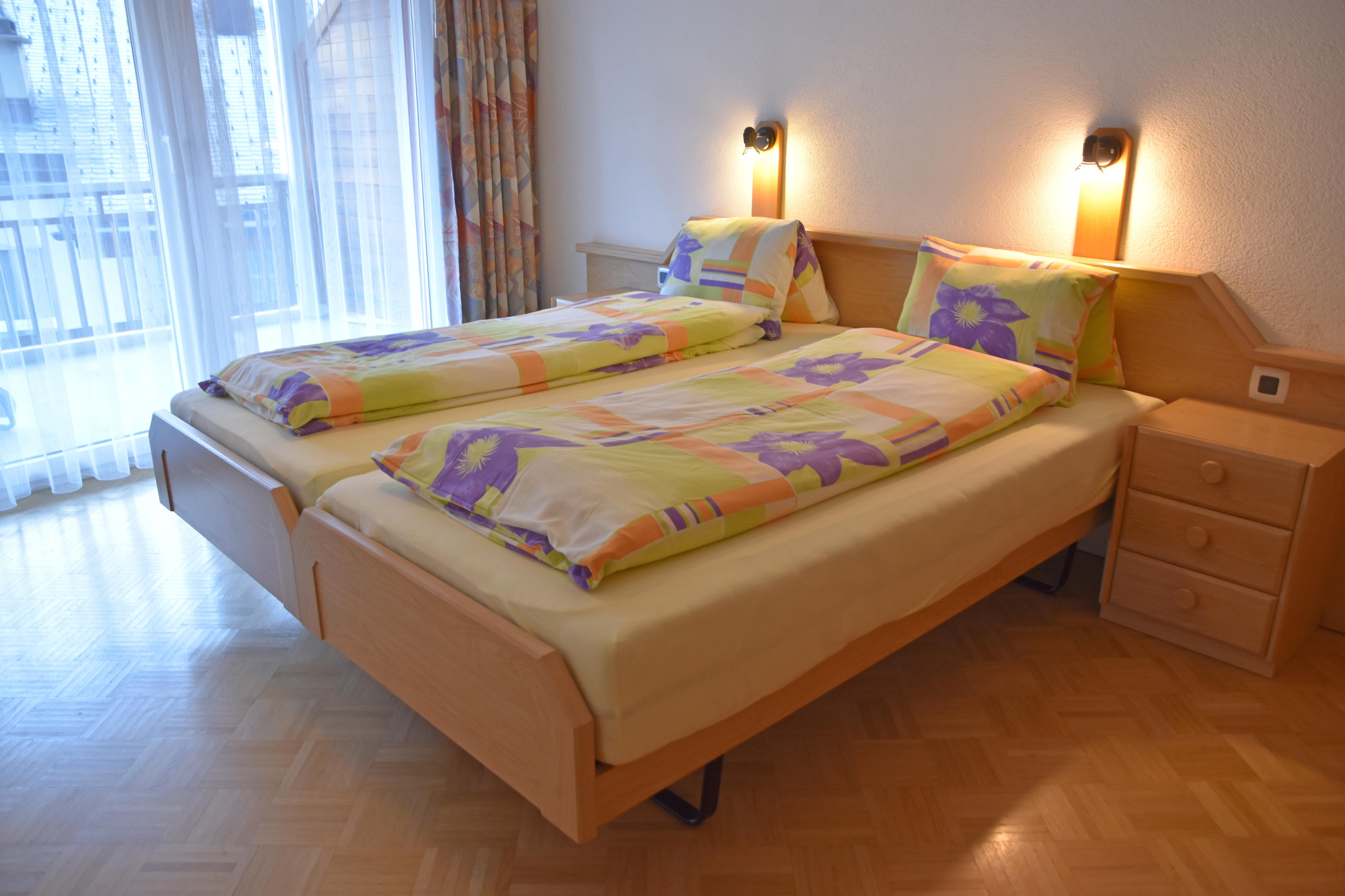 Es verfügt über ein Doppelzimmer mit Südbalkon und ein 2 Bettzimmer; Bad/WC und ein separates WC. Bett- und Frotteewäsche sind vorhanden und im Preis inbegriffen.