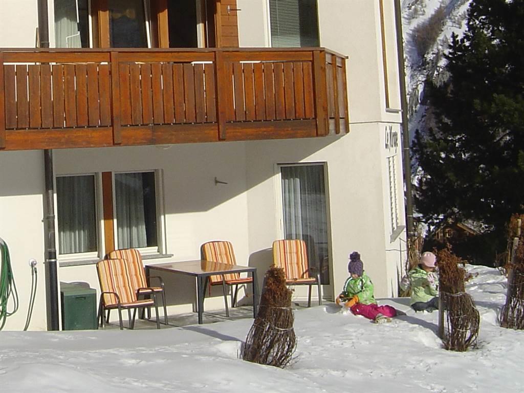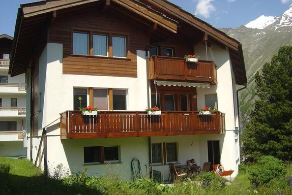Haus in in ruhiger Lage mit wunderschöner Aussicht auf die Viertausender mit ihren Gletschern. 10 Gehminuten vom Zentrum entfernt und 15 von der Alpin Express entfernt. Lebensmittelgeschäft und Bäckerei in unmittelbarer Nähe. Die Haltestelle für den Gratis-Skibus ist ca.50 m entfernt. Wir schenken Ihnen eine Taxigutschein für die Fahrt vom Parkhaus zu unserem Haus. Wir haben für Sie ein geheiztes Skidepot beim Skischulsammelplatz reserviert. Bei uns sind die Bergbahnen und Postautos im Sommer inklusive!