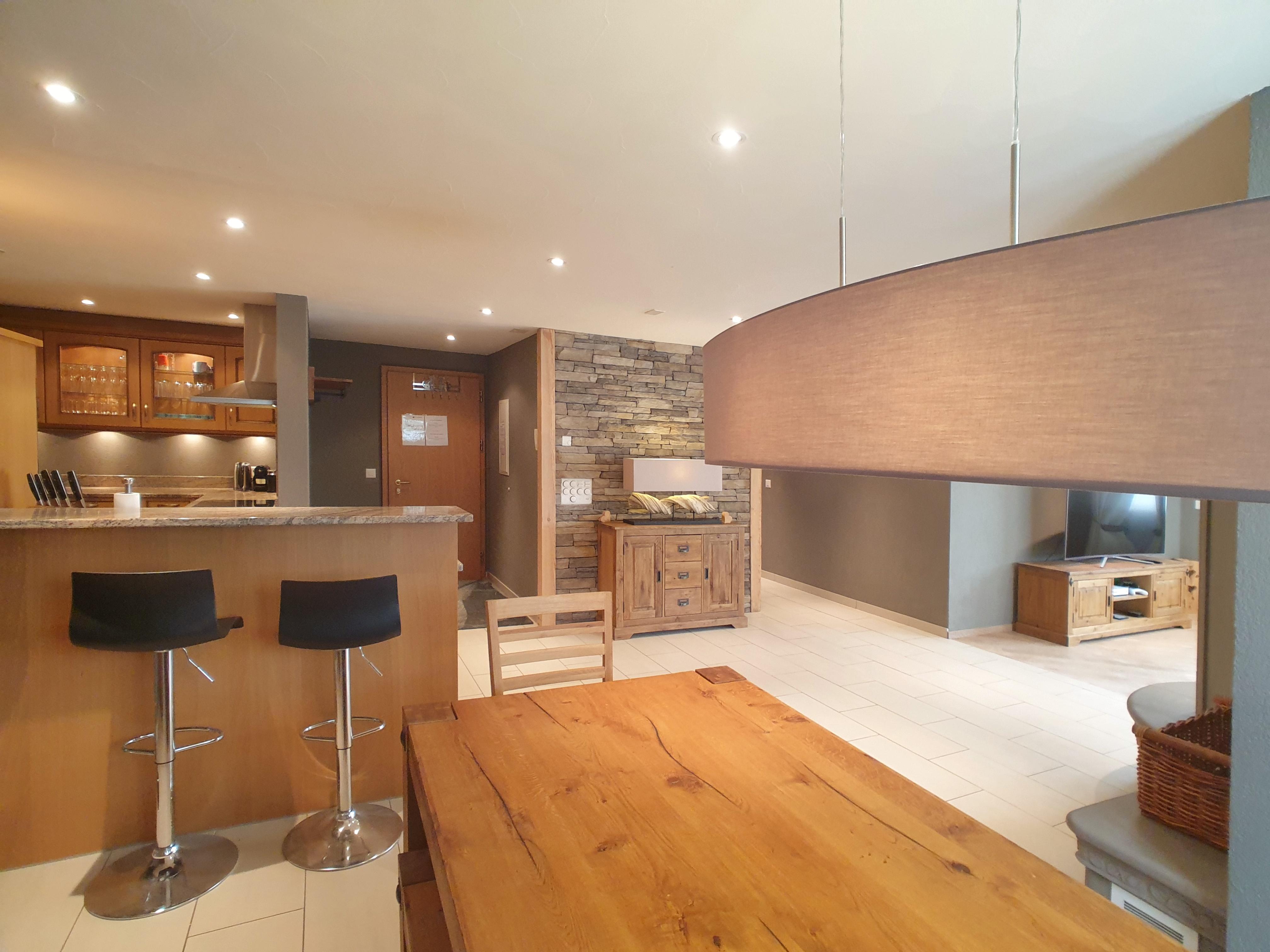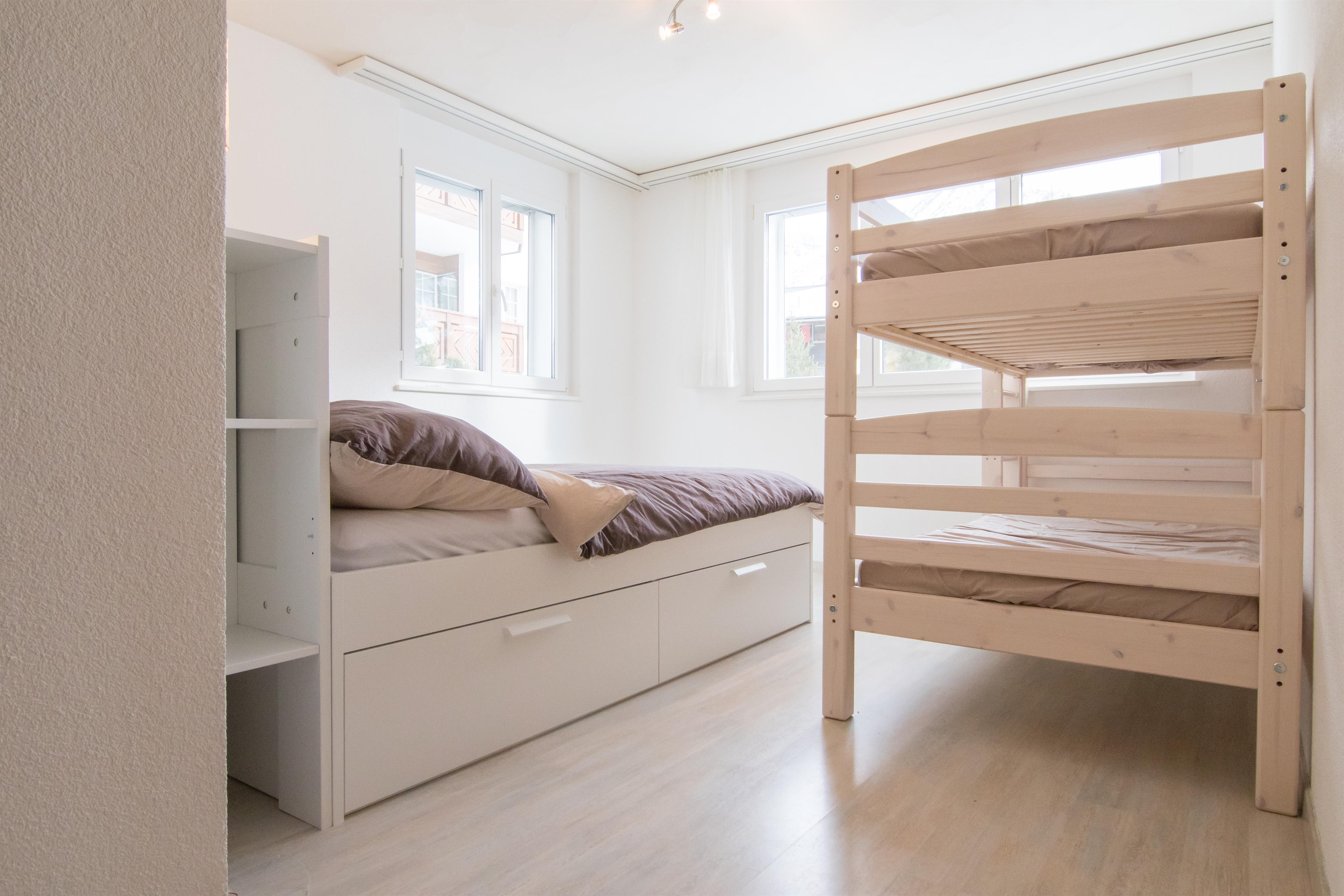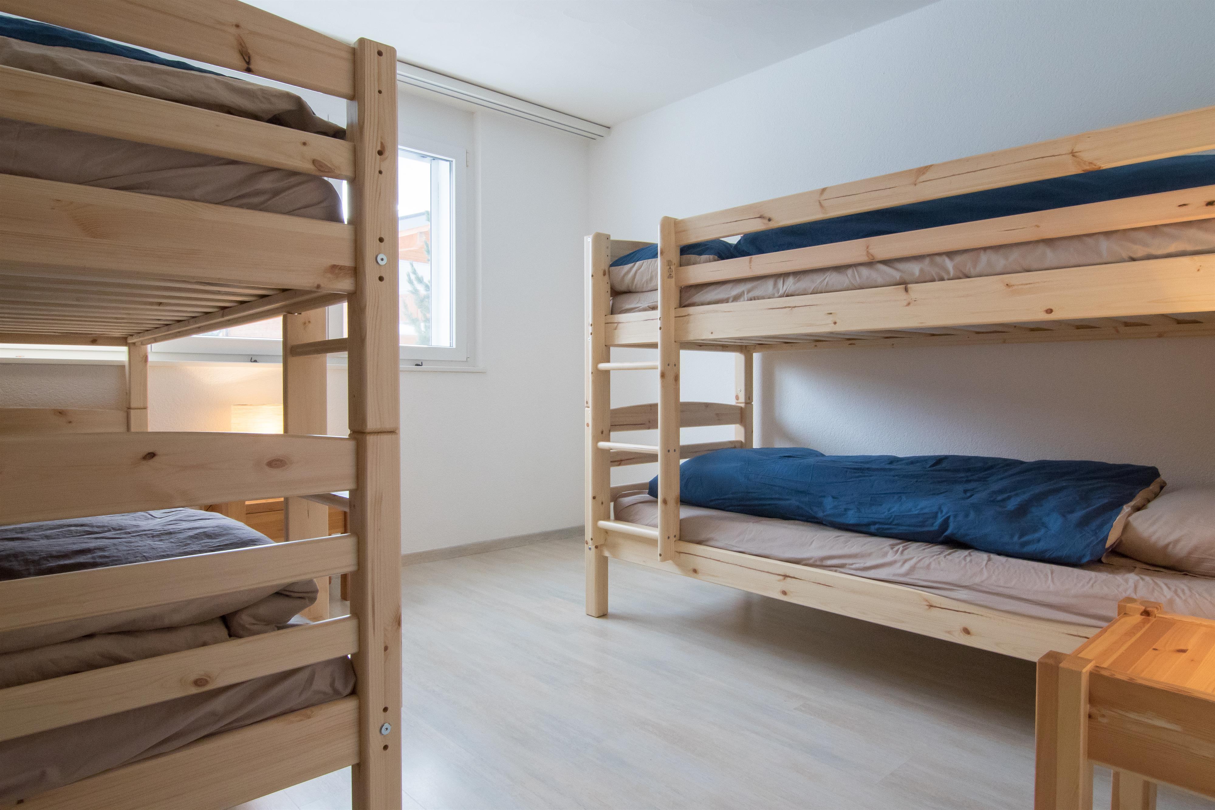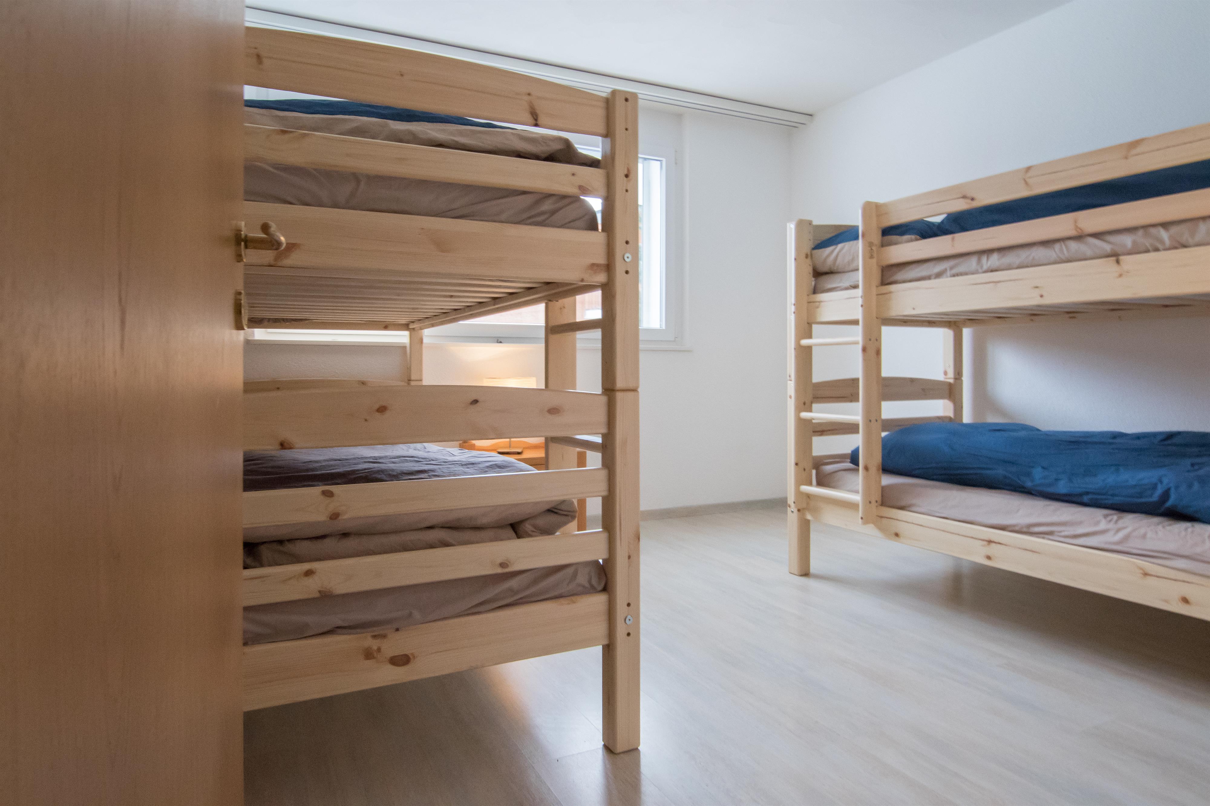 Das Apartment hat 3 geräumige Schlafzimmer (eines mit einem Doppelbett, eines mit Doppelbett und Etagenbett und eines mit 2 Etagenbetten) und 2 Badezimmer (mit Dusche/WC und Badewanne/Dusche/WC). Im grossen Wohn- und Essbereich mit offener Küche befindet sich zudem ein Kamin, welcher das Herzstück der Wohnung bildet. Des Weiteren hat das Apartment eine Terrasse. Skiraum und kostenloses Internet sind vorhanden.