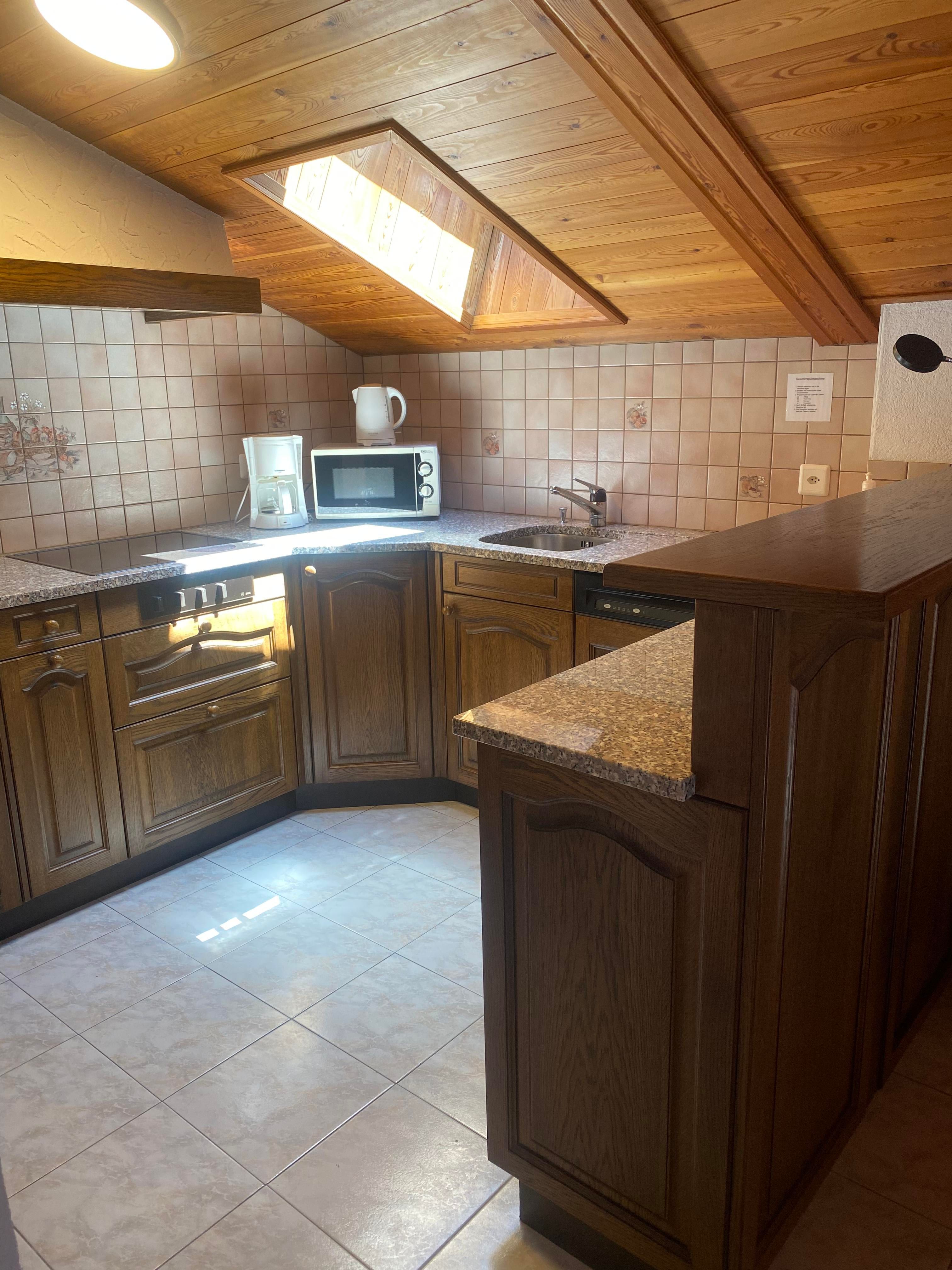 Die Ferienwohnung ist umfassend ausgestattet, um Ihren Aufenthalt so angenehm wie möglich zu gestalten. Die moderne Küche verfügt über eine Geschirrspülmaschine, Kaffeemaschine, Wasserkocher, Mikrowelle sowie einen Raclette- und Fondueset. Im Wohnbereich stehen Ihnen ein Flachbildfernseher, ein Radio sowie kostenloses WLAN zur Verfügung.