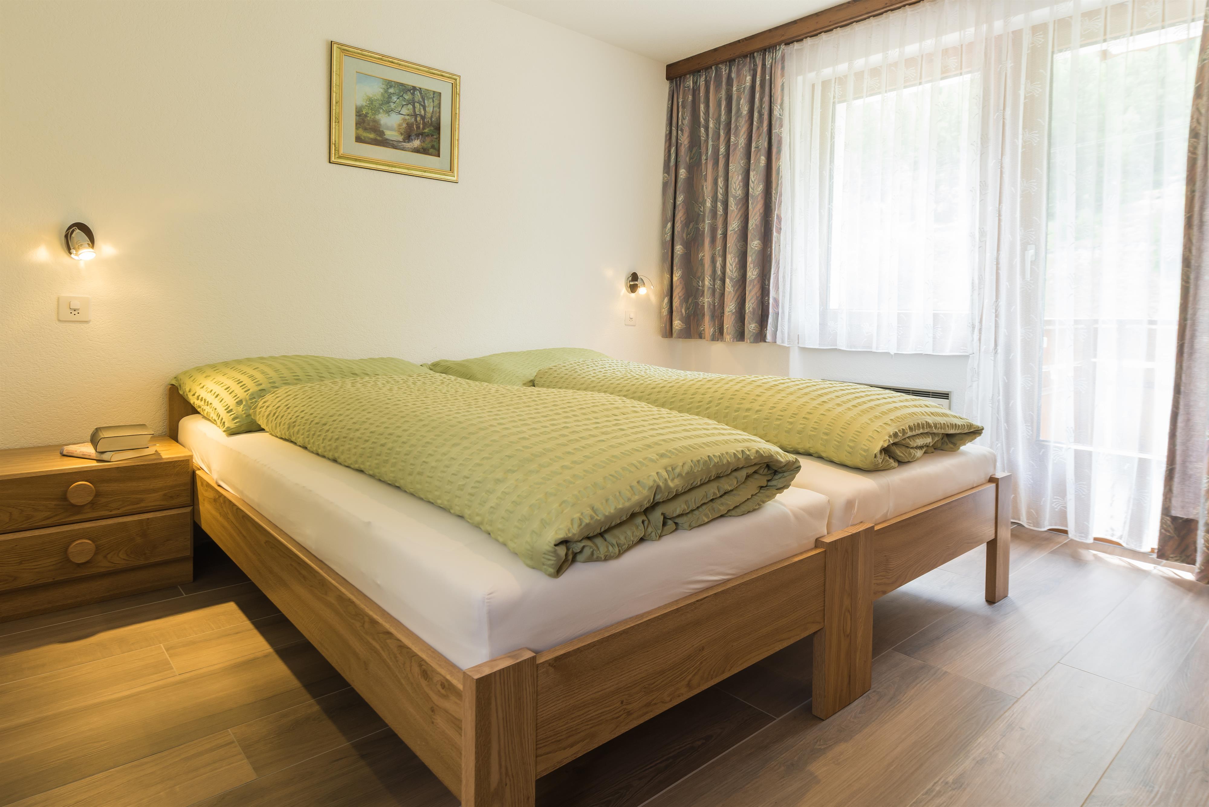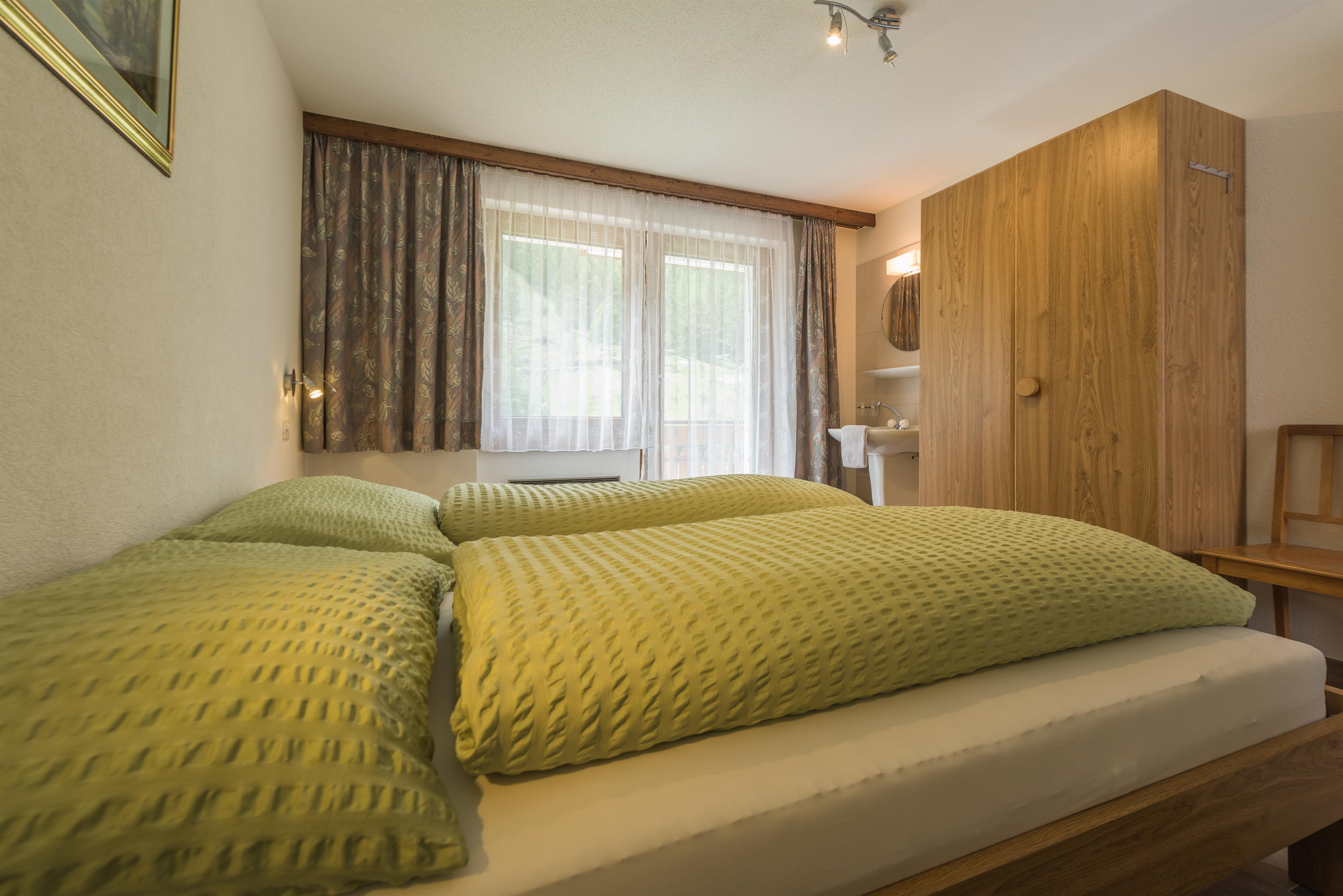Die Wohnung befindet sich im 1. Stock und besteht aus einer separaten komfortablen Küche mit Geschirrspüler und Kaffeemaschine, einem geräumigen Wohnzimmer mit TV und Radio, 2 Doppelzimmer mit Waschgelegenheit. Dazu kommen ein Einzelzimmer, ein WC mit Bad und zwei Balkone im Süden und Westen. Weiter stehen Lift, Skiraum mit Skischuhwärmer und Hausbar zu Ihrer Verfügung. Die Ferienwohnungen im Adora sind „Q for You“ zertifiziert. Die Balkone zur Südseite mit Blick zu unserem idyllischen Garten mit dem Brunnen aus Granit und den Fichten und Föhren und den vielen Blumen laden Sie zum Verweilen ein. Ausstattung: Geschirrspüler, Kaffeefiltermaschine, Wasserkocher, Toaster, Backofen, Kühlschrank mit Eisfach, Fondue-Set, SAT-TV, Blu-ray-Player, Videothek, Wireless-LAN, Haartrockner, Handtuchwärmer, Kinderbett, Kinderhochstuhl, Waschmaschine auf Anfrage. Skischuhtrockner, Lift, Grillplatz, Liegewiese, Hausbar - Sie werden nichts vermissen. Weiter stehen Lift, Skiraum mit Skischuhwärmer und Hausbar zu Ihrer Verfügung.