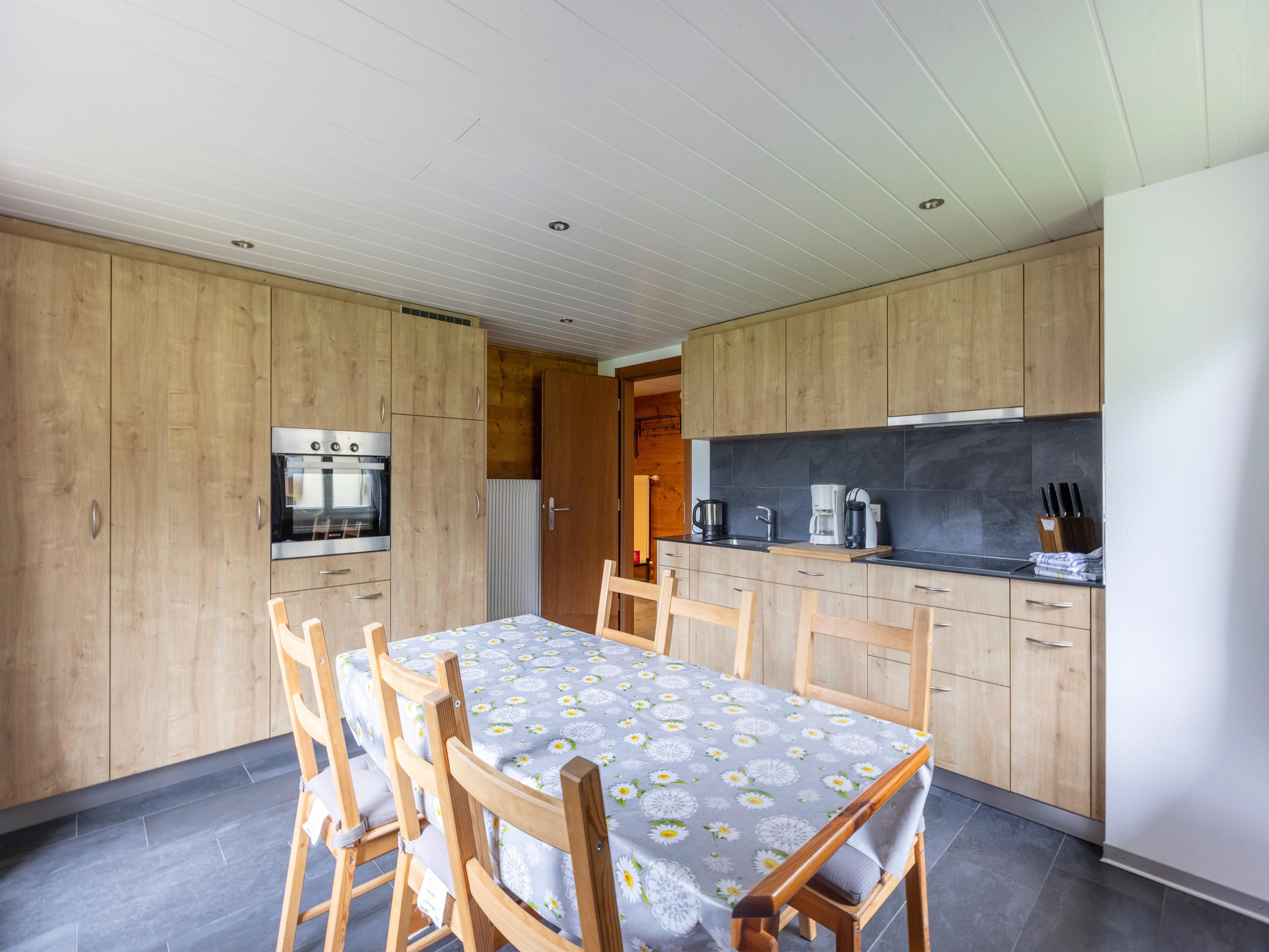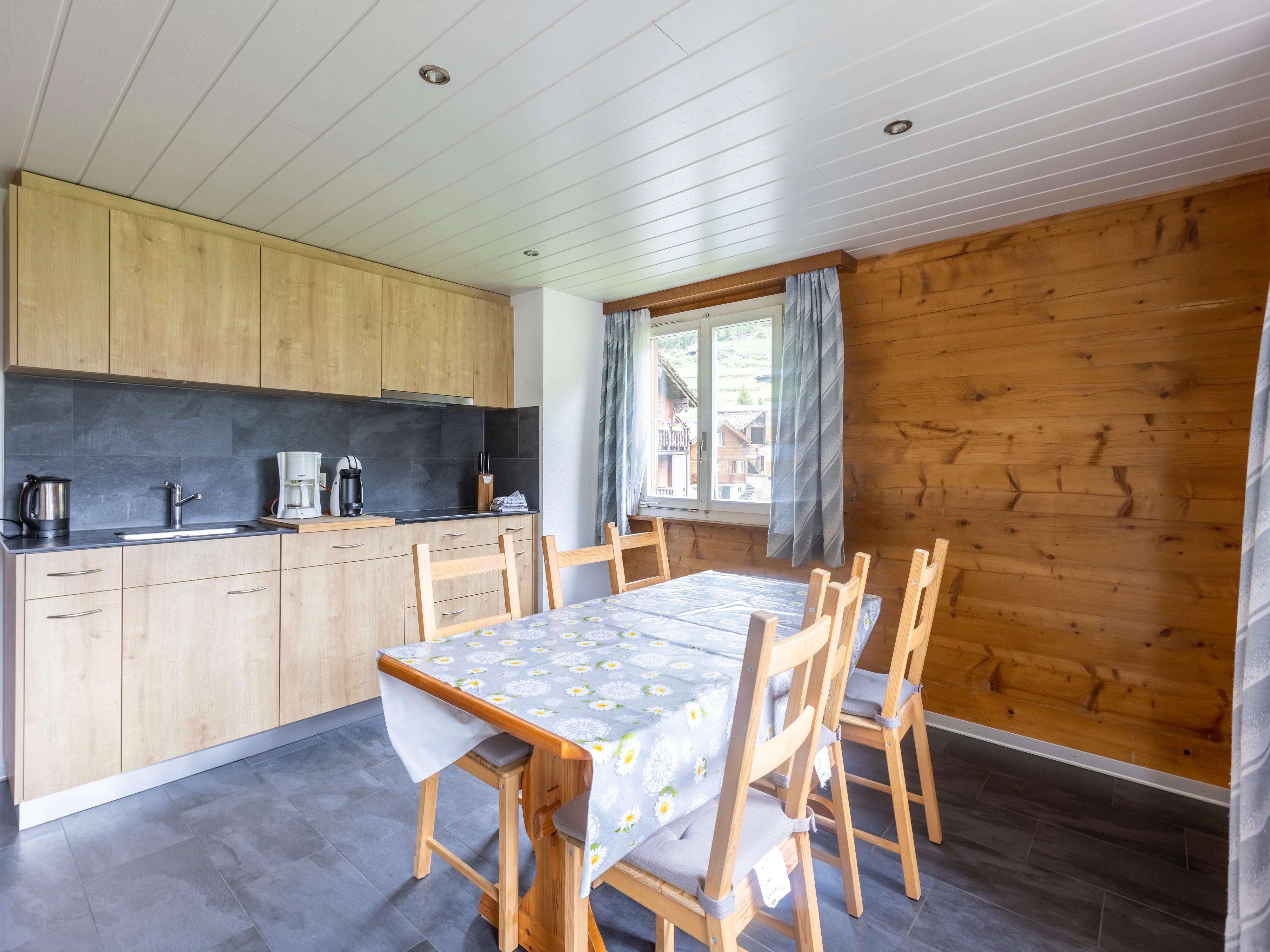 3.5 Zimmerwohnung für max. 7 Personen. Die Wohnung hat 3 Schlafzimmer, eine Küche, Badezimmer und WC sind getrennt. Auf der Südseite hat es einen Balkon. Man kann aber auch beide Wohnungen gemeinsam mieten als Gruppe. Unten hat es eine neue Industrieküche und einen Speisesaal für bis zu 25 Personen. Der Speisesaal, die grosse Küche und der Skiraum wurden erstmals Winter 2014/2015 erstmals vermietet.