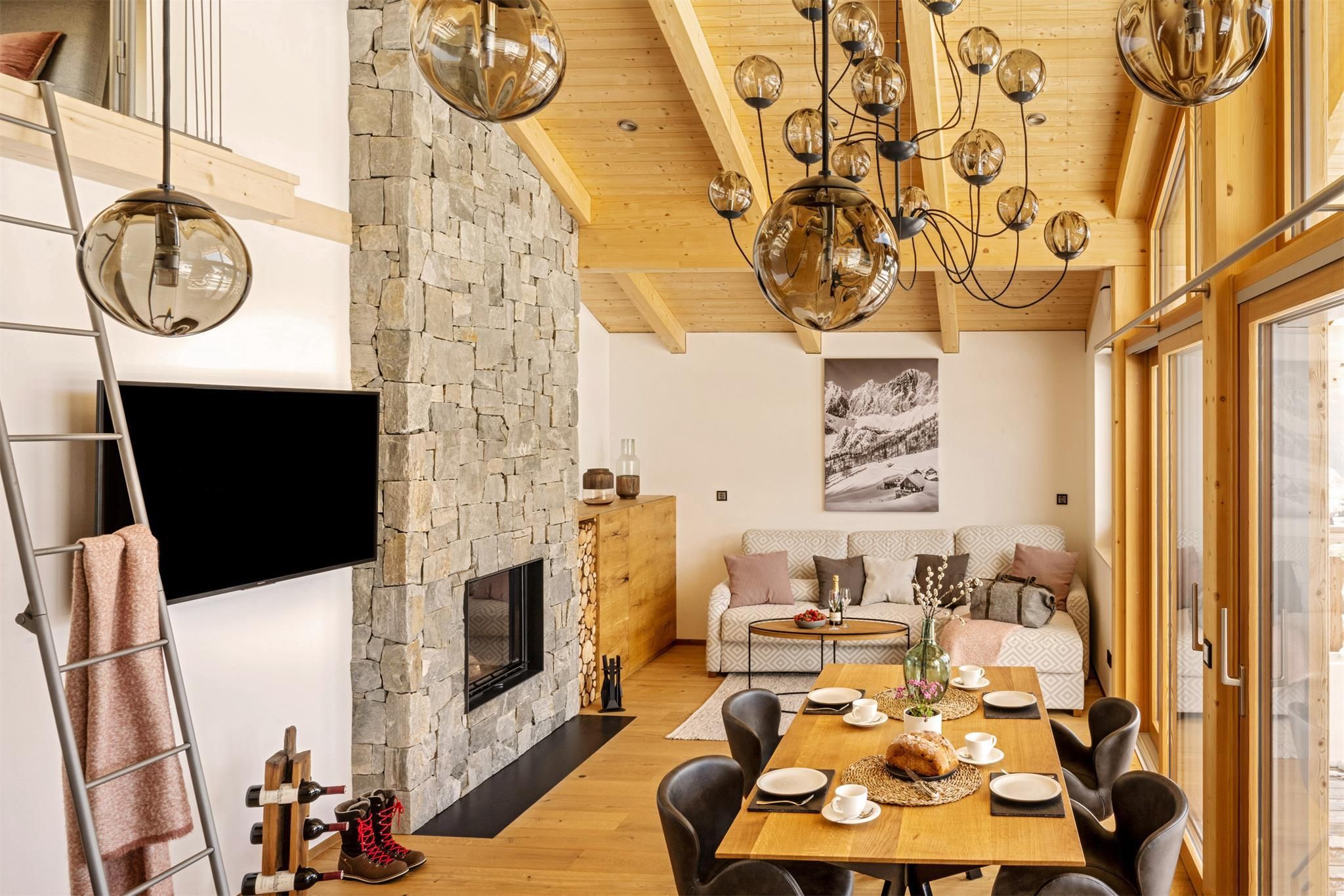 Hochwertigste Materialien treffen im Alpine-Cosmopolitan Design auf eine atemberaubende Aussicht auf das Dachsteinmassiv. Die Nord-Ost-Ausrichtung des Studios bietet Sonne zu den Morgenstunden bis mittags, im Sommer auch zu den späten Nachmittagsstunden.