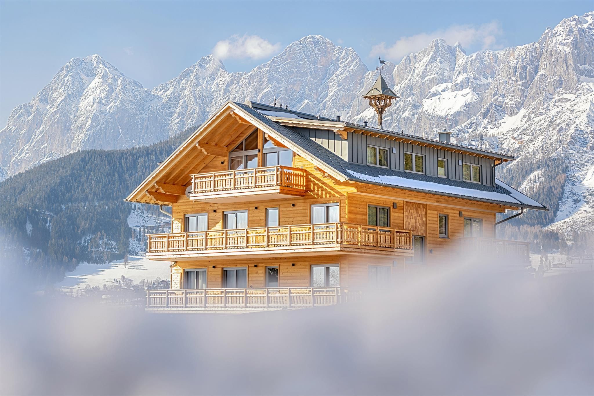 NEUERÖFFNUNG Mai 2021 - Design trifft Tradition in der im Mai 2021 neu eröffneten Alpine Residence Dachsteinperle - familiäre Atmosphäre seit 1975. Umgeben von der atemberaubenden Bergwelt auf dem Ramsauer Hochplateau bietet Ihnen die Alpine Residence Dachsteinperle einen einzigartigen Panoramablick über das Dachsteinmassiv und die Niederen Tauern.