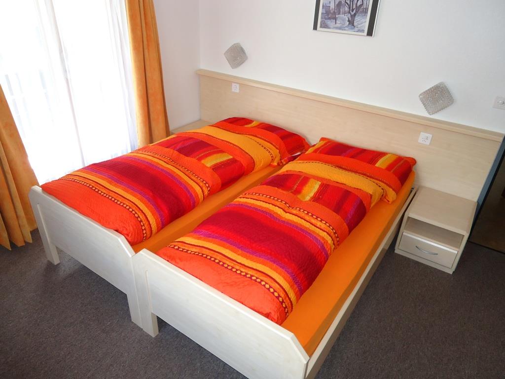 3-Zimmerwohnung, 62 m2, 2. Stock, komfortabel eingerichtet, 1 Wohnschlafzimmer, 1 Doppelschlafzimmer, 1 Einzelzimmer mit Waschbecken, Küche, Geschirrspühlmaschine, Bad/WC, TV, Süd-Balkon.