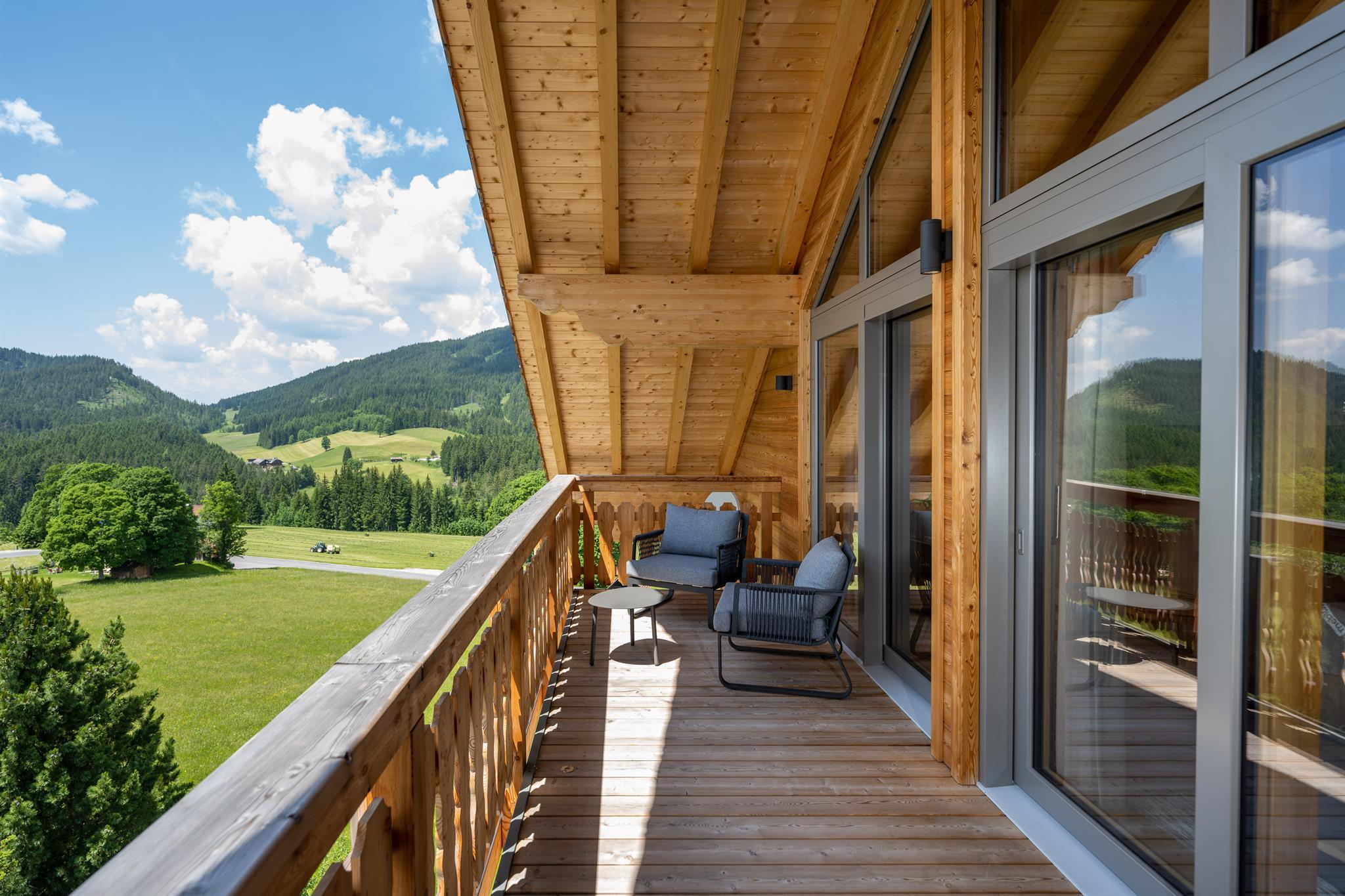 Hochwertigste Materialien treffen im Alpine-Cosmopolitan Design auf eine atemberaubende Aussicht über die Niederen Tauern. Die Süd-Ost-Ausrichtung des Apartments bietet Sonne von früh morgens bis in die Nachmittagsstunden.