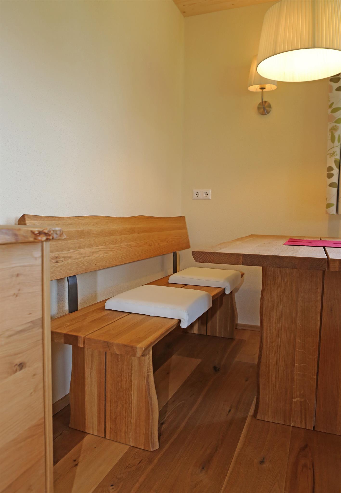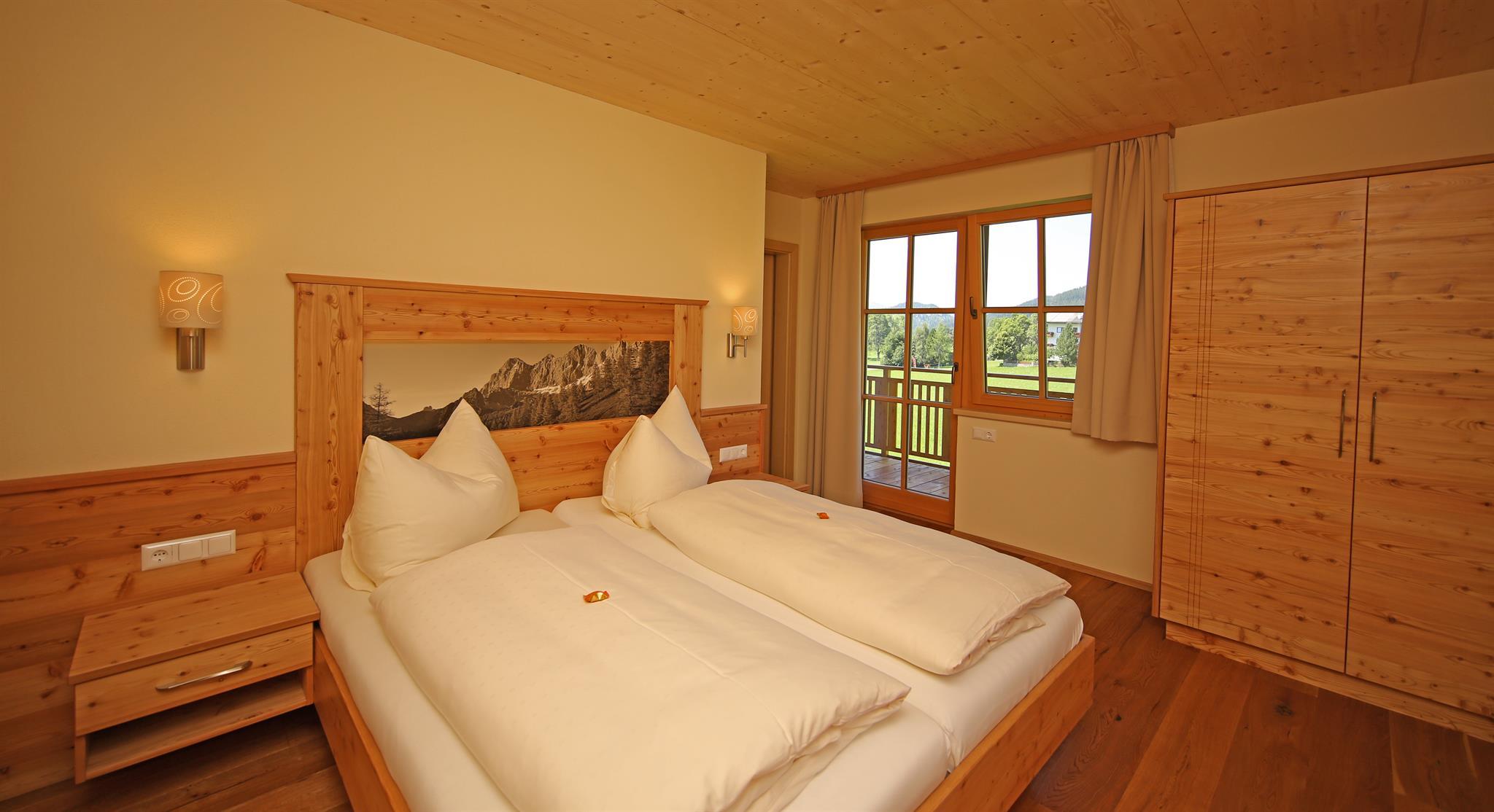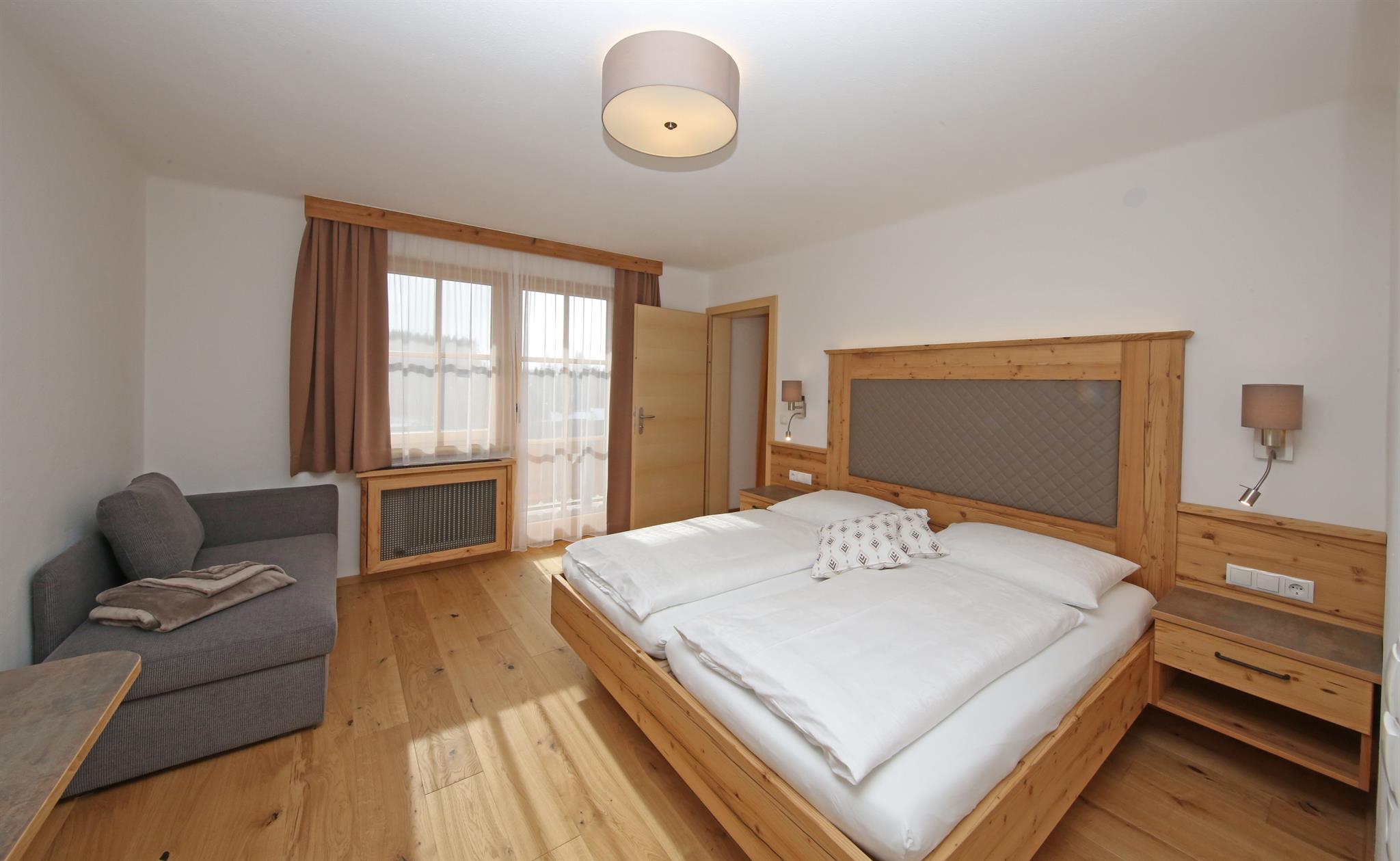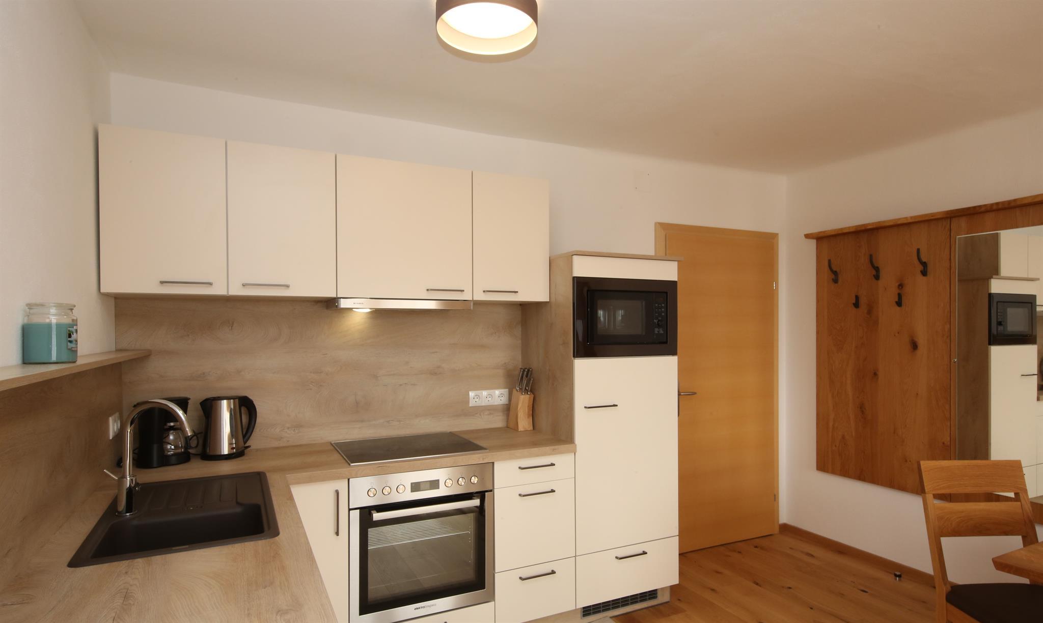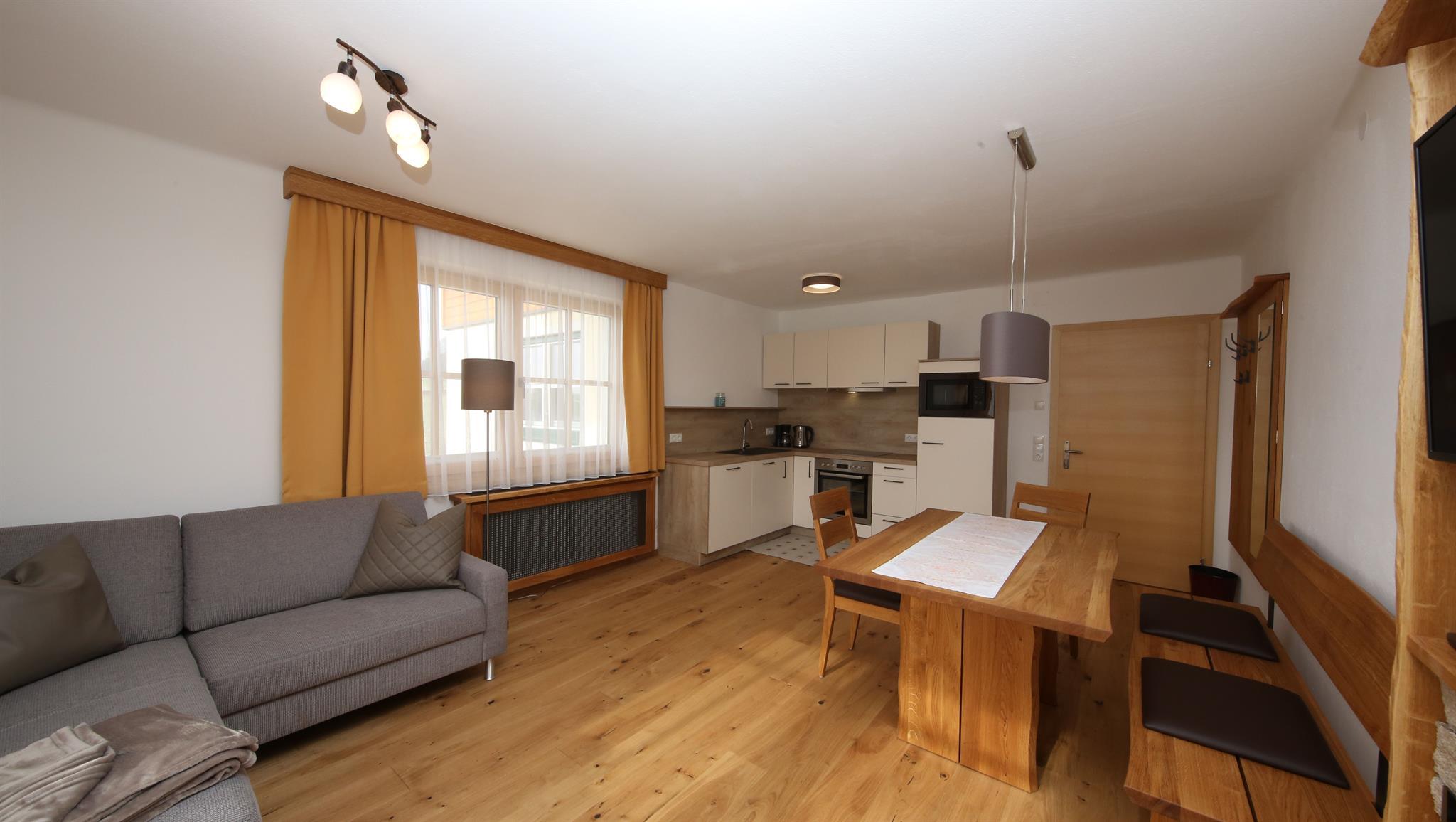 Wir bieten in unserem Haus Alpenperle auch die Möglichkeit, 2 großzügige Ferienwohnungen für 2-4 Personen und eine kleinere für 2-3 Personen zu mieten. Gut durchdacht, von heimischen Handwerksbetrieben mit viel Holz und natürlichen Materiallien ausgestattet, verfügen die beiden großen Wohnungen über je 2 Schlafzimmer, - die kleinere über 1 Schlafzimmer -, ein Bad, ein geräumiges Wohnzimmer mit einer voll ausgestatteten Küche (Geschirrspüler, Induktionsherd, Backrohr), eine Ess- und Couchecke, sowie einen schönen, bei den großen nach Westen und bei der kleinen nach Süden ausgerichteten Balkon, der neben einem herrlichen Ausblick in die Natur auch Sonne bis in die Abendstunden garantiert.