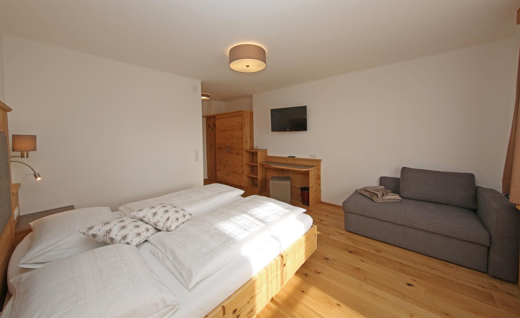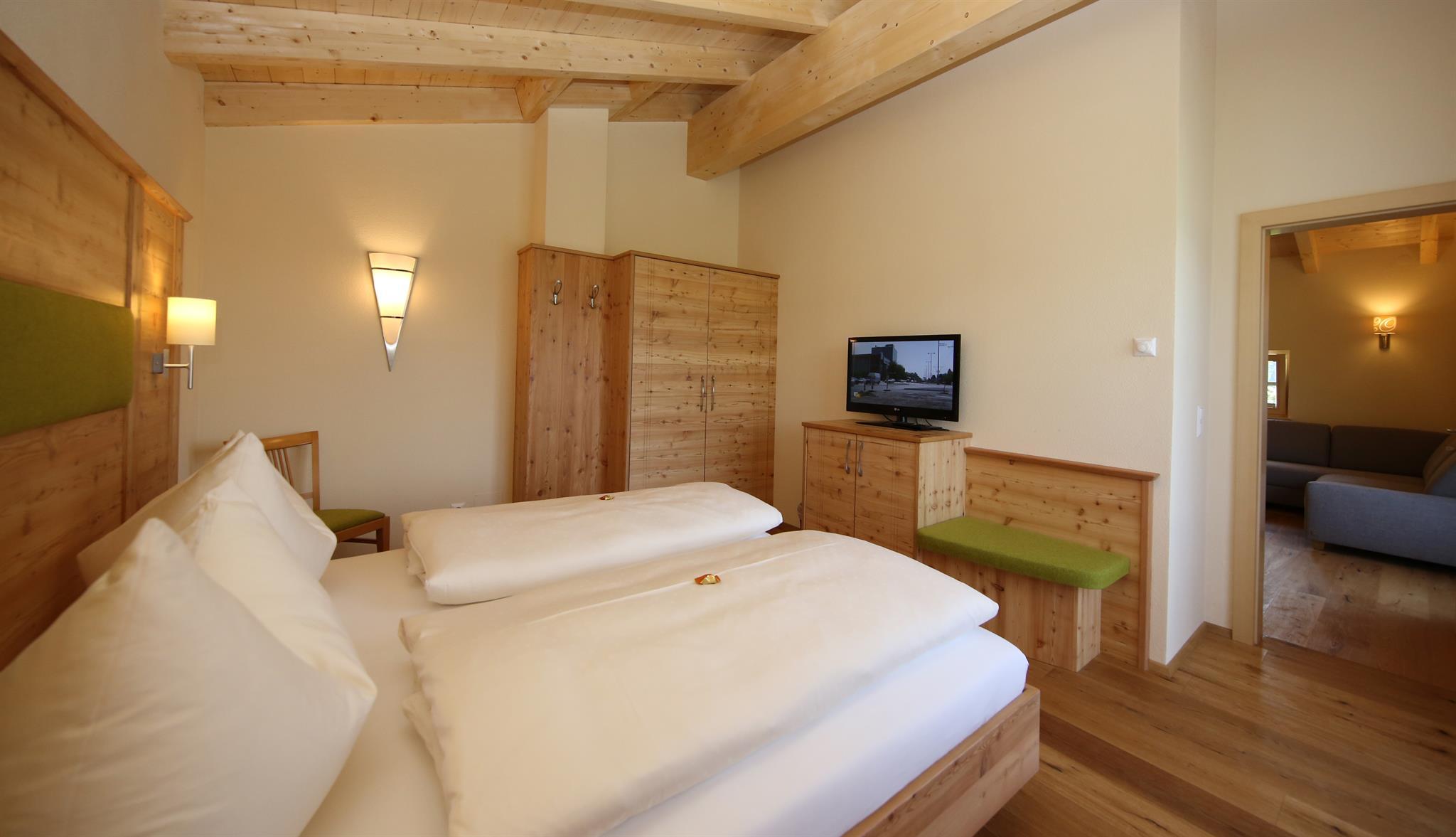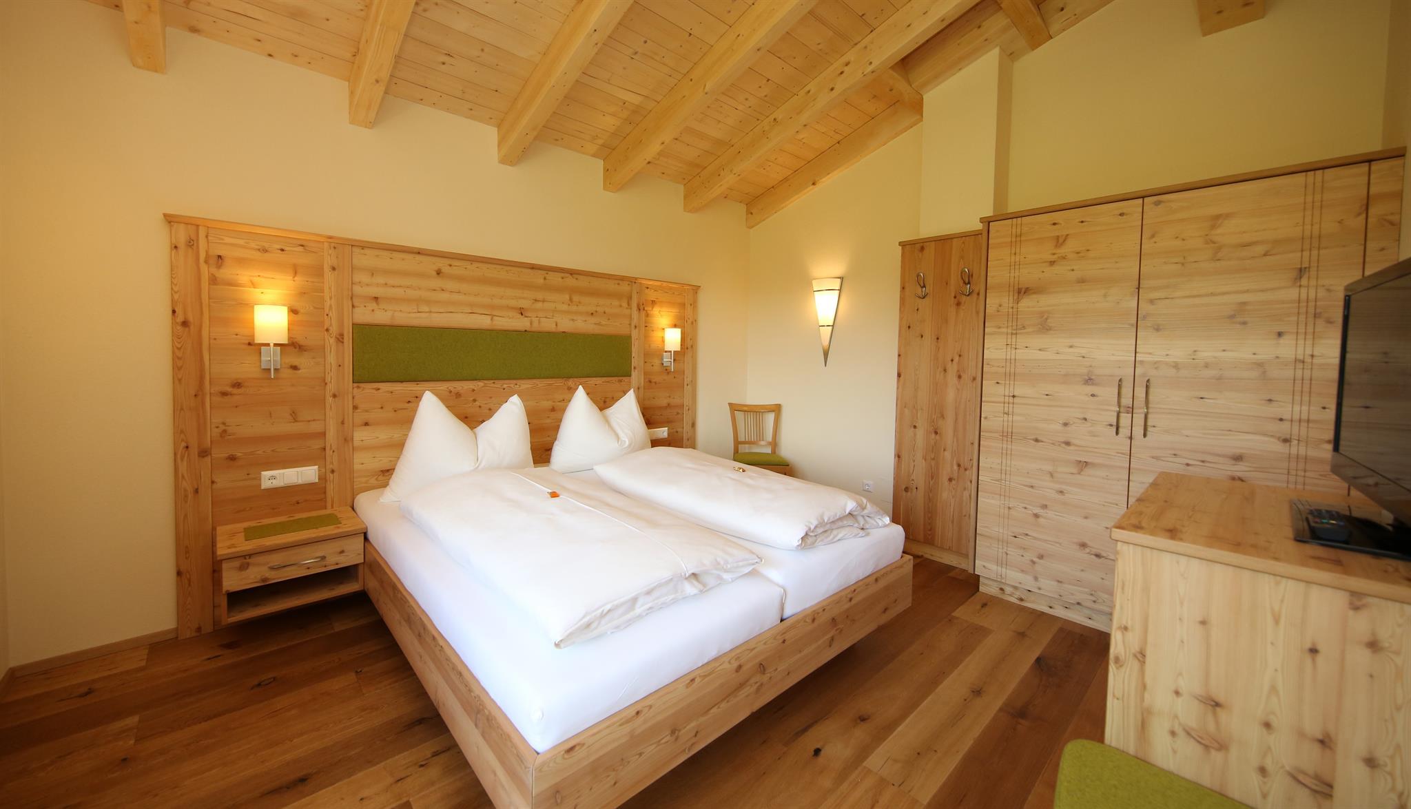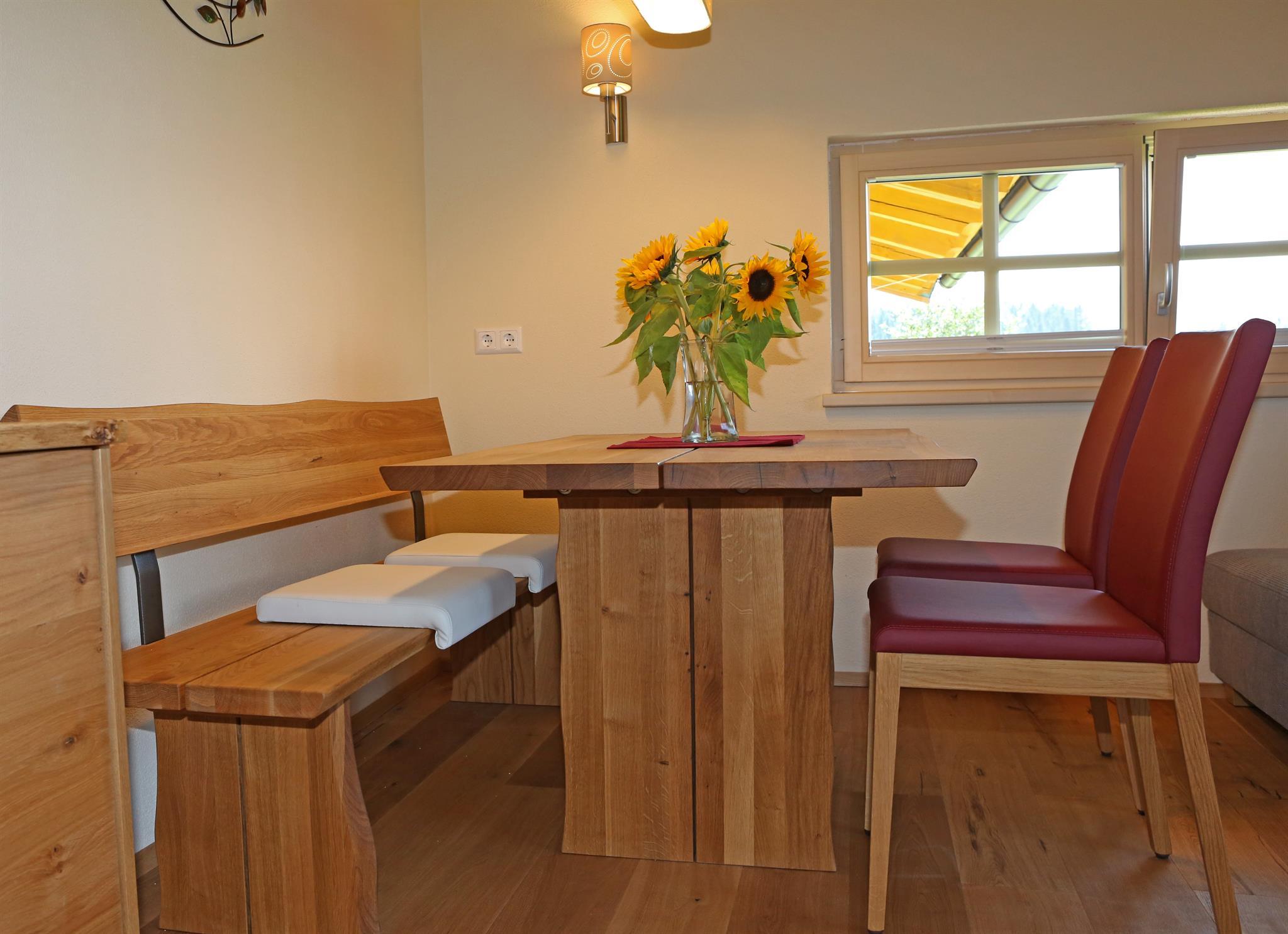 Wir bieten in unserem Haus Alpenperle auch die Möglichkeit, 2 großzügige Ferienwohnungen für 2-4 Personen und eine kleinere für 2-3 Personen zu mieten. Gut durchdacht, von heimischen Handwerksbetrieben mit viel Holz und natürlichen Materiallien ausgestattet, verfügen die beiden großen Wohnungen über je 2 Schlafzimmer, - die kleinere über 1 Schlafzimmer -, ein Bad, ein geräumiges Wohnzimmer mit einer voll ausgestatteten Küche (Geschirrspüler, Induktionsherd, Backrohr), eine Ess- und Couchecke, sowie einen schönen, bei den großen nach Westen und bei der kleinen nach Süden ausgerichteten Balkon, der neben einem herrlichen Ausblick in die Natur auch Sonne bis in die Abendstunden garantiert.