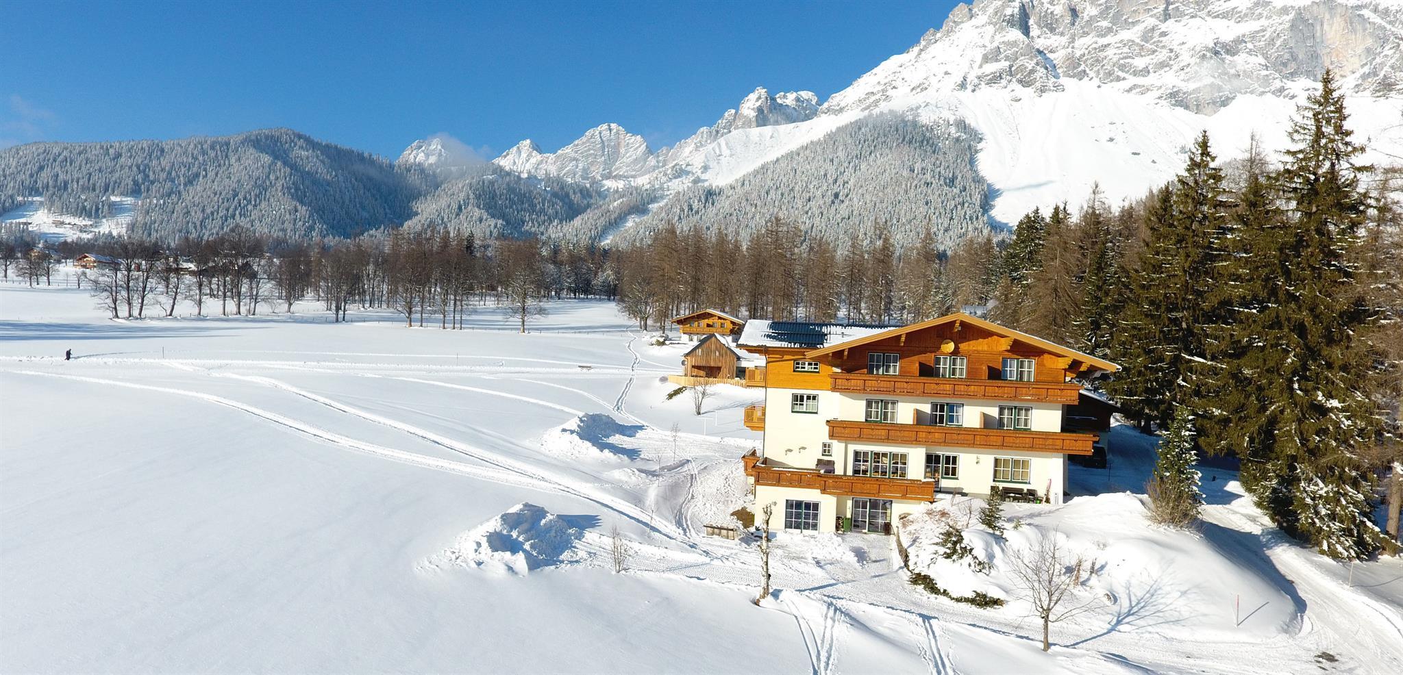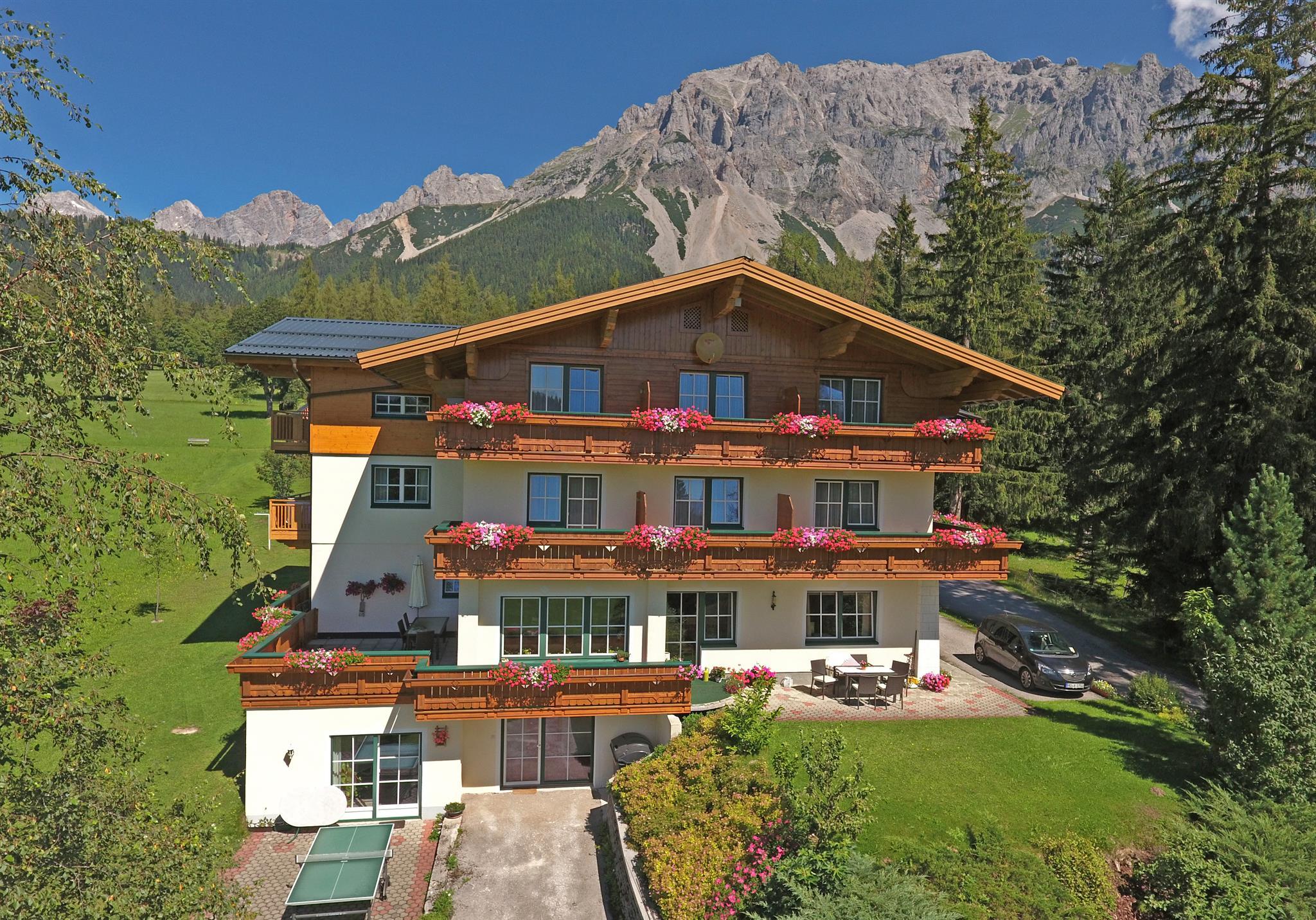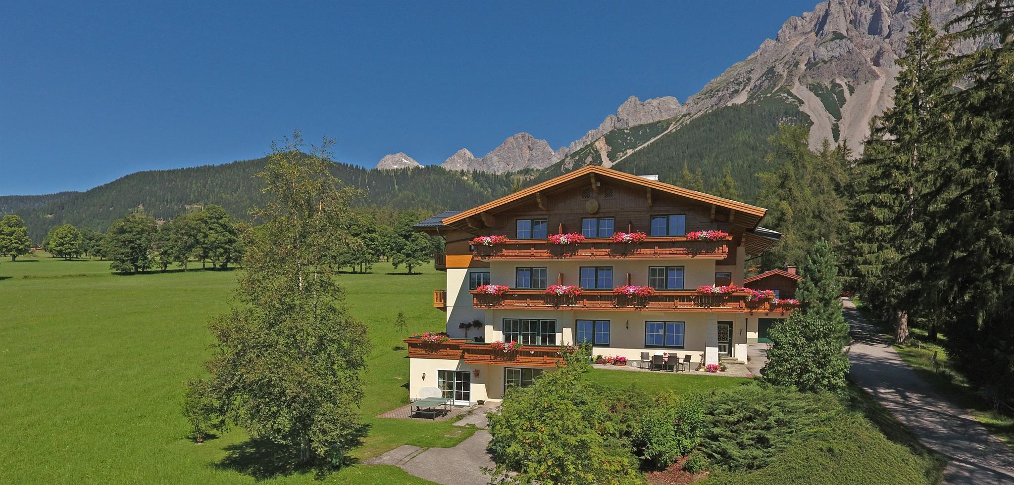 Unsere Pension Alpenperle liegt auf 1150m an einem der sonnigsten Plätze am Hochplateau von Ramsau am Dachstein. Von hier aus haben Sie einen herrlichen Blick auf die umliegende Bergwelt. Genießen Sie unsere ruhige aber doch zentrale Lage.