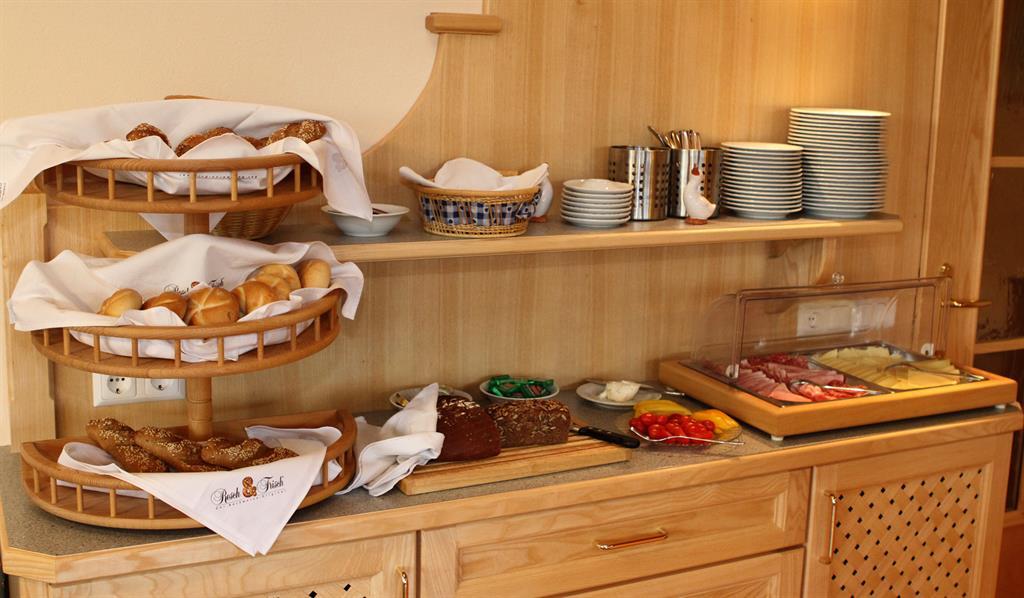 Als Service bieten wir Ihnen täglich frisches Gebäck für Ihr Frühstück an oder gegen Aufpreis können Sie sich gerne an unserem Frühstücksbuffet bedienen.