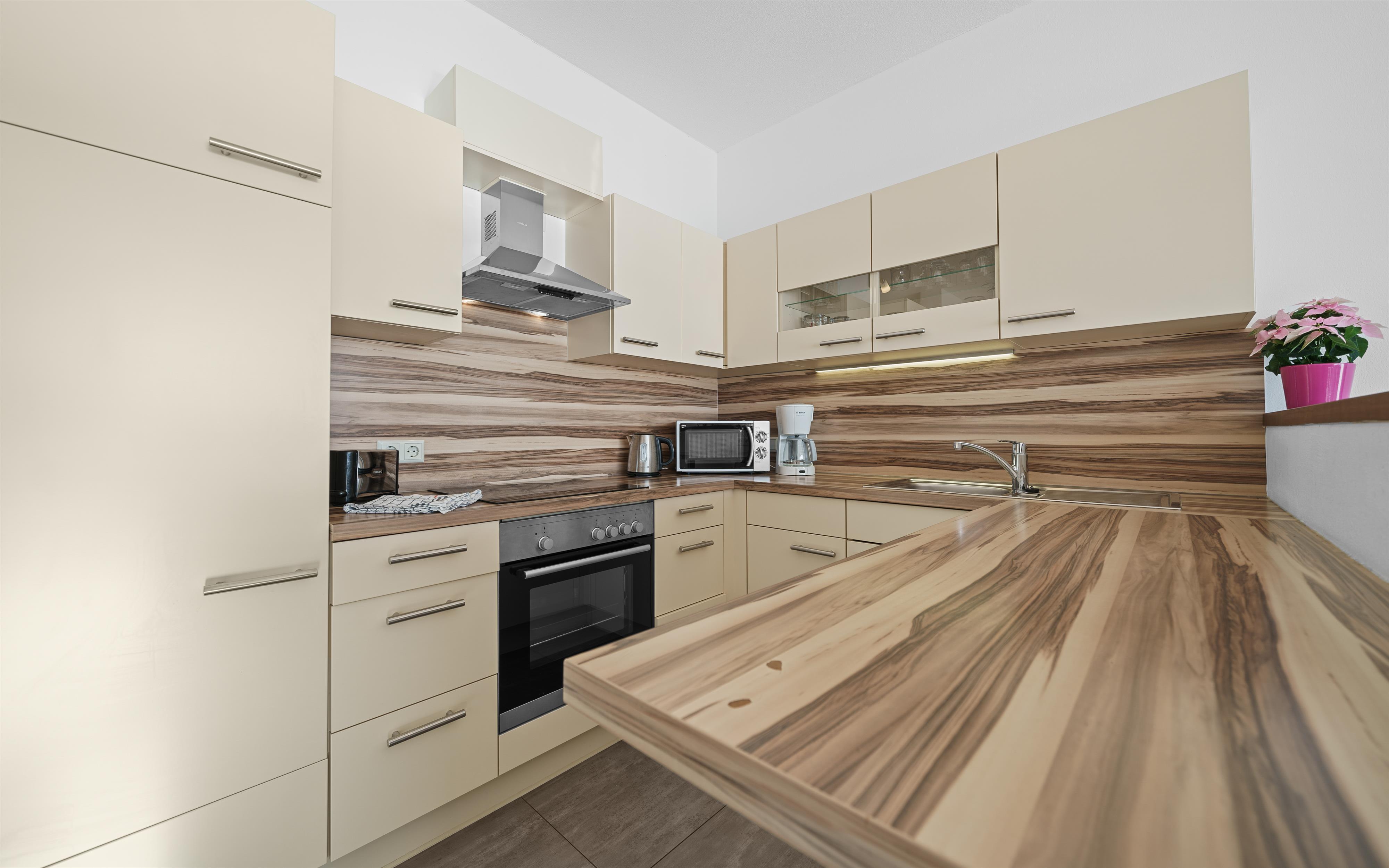 3 Doppel-Schlafzimmer mit dazugehörigem Bad, eine vollausgestattete Wohnküche mit Terrasse und Blick nach Süden sowie ein eigener Wellnessbereich mit Sauna und Infrarotkabine stehen für Sie bereit.